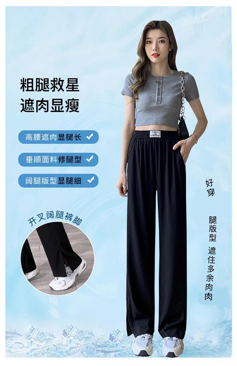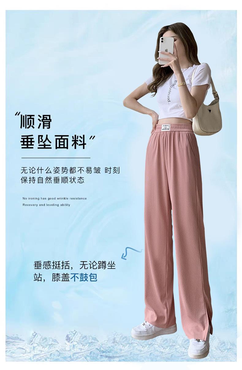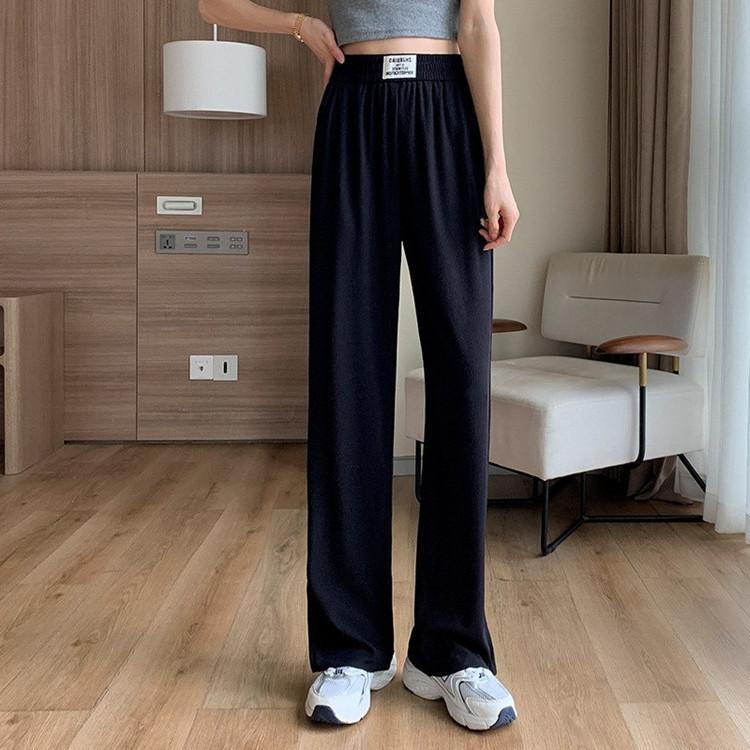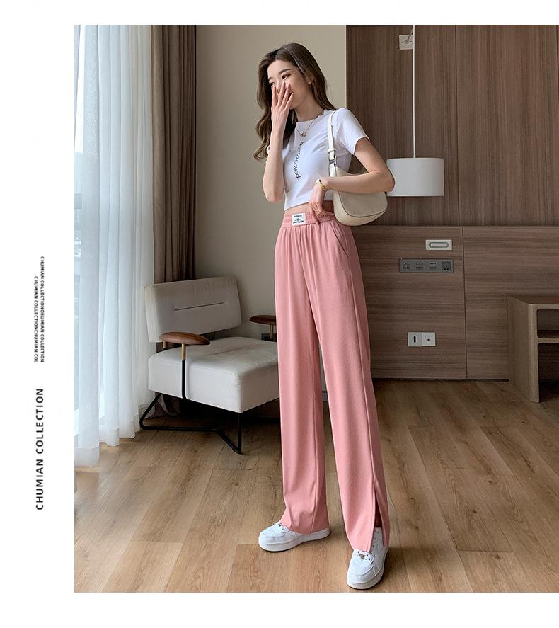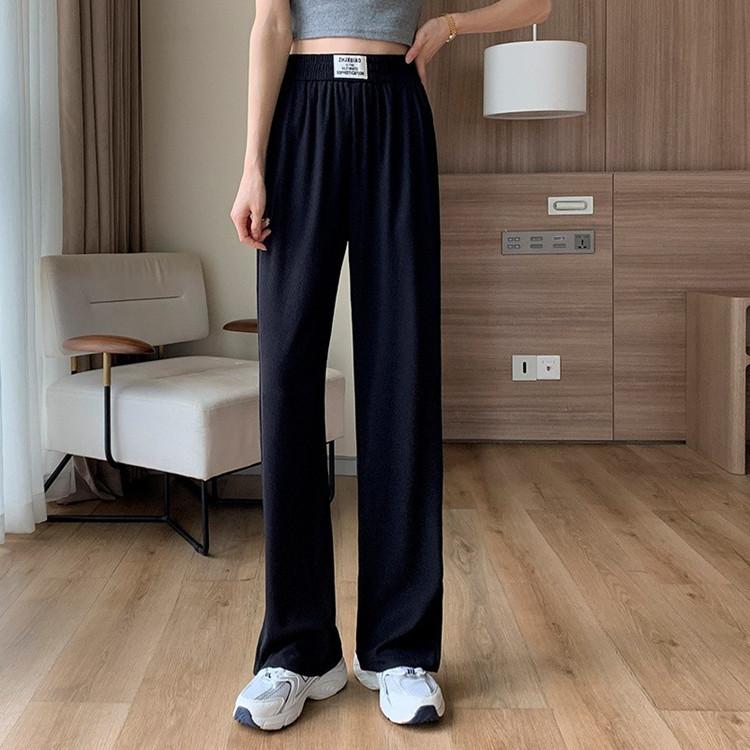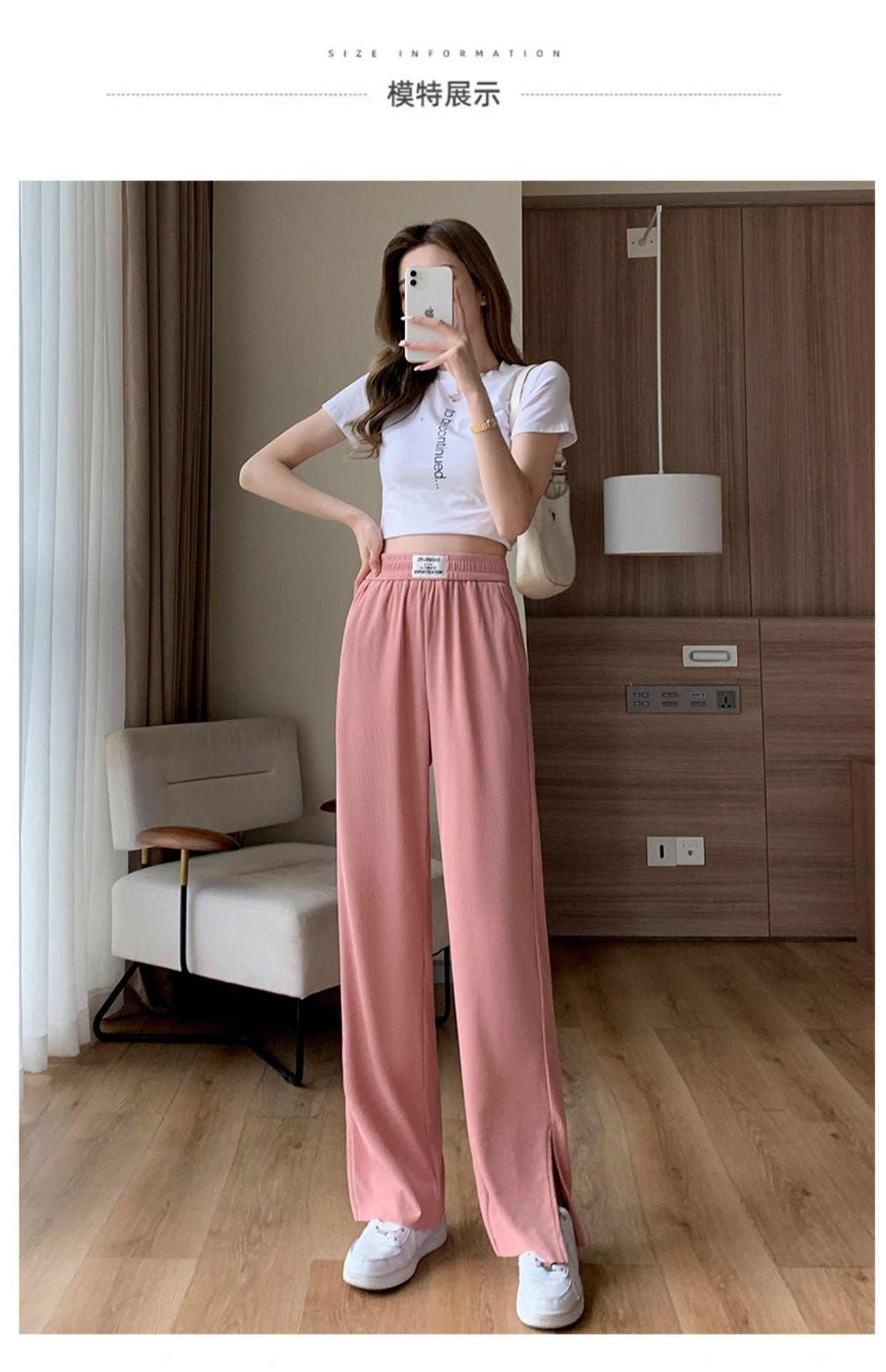 Pantalones Anchos de Seda de Hielo para Mujer Verano 2025 Nuevos Pequeños Delgados Chifón Rectos Cintura Alta Casuales