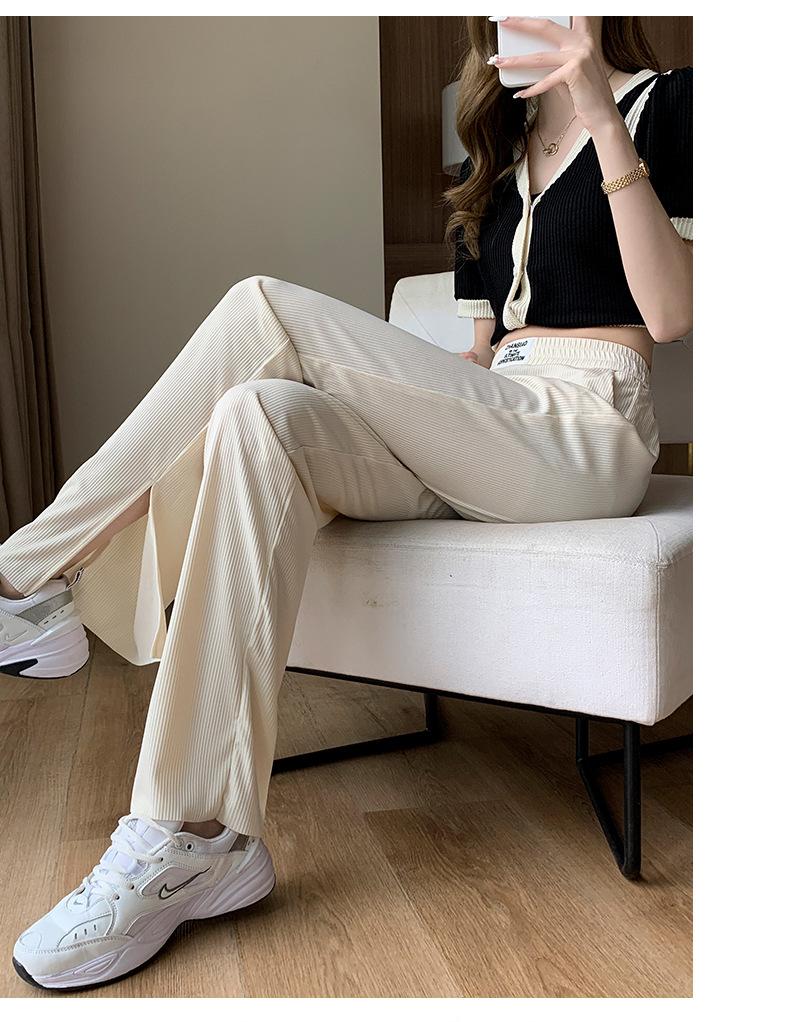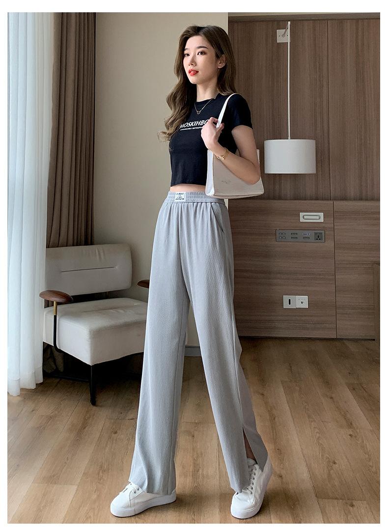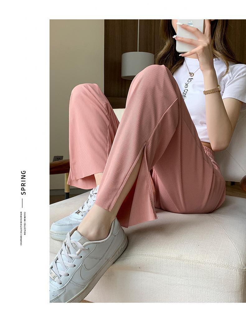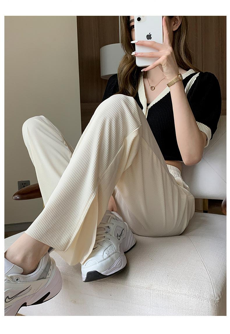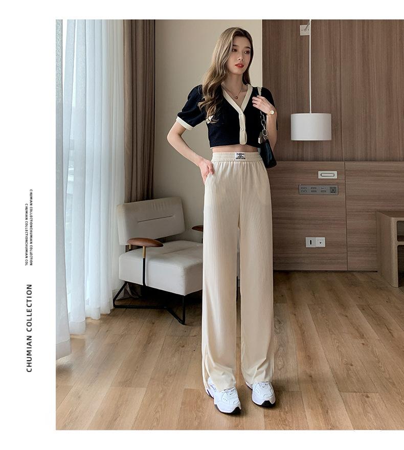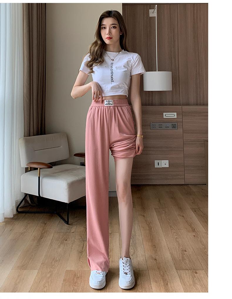 Pantalones Anchos de Seda de Hielo para Mujer Verano 2025 Nuevos Pequeños Delgados Chifón Rectos Cintura Alta Casuales