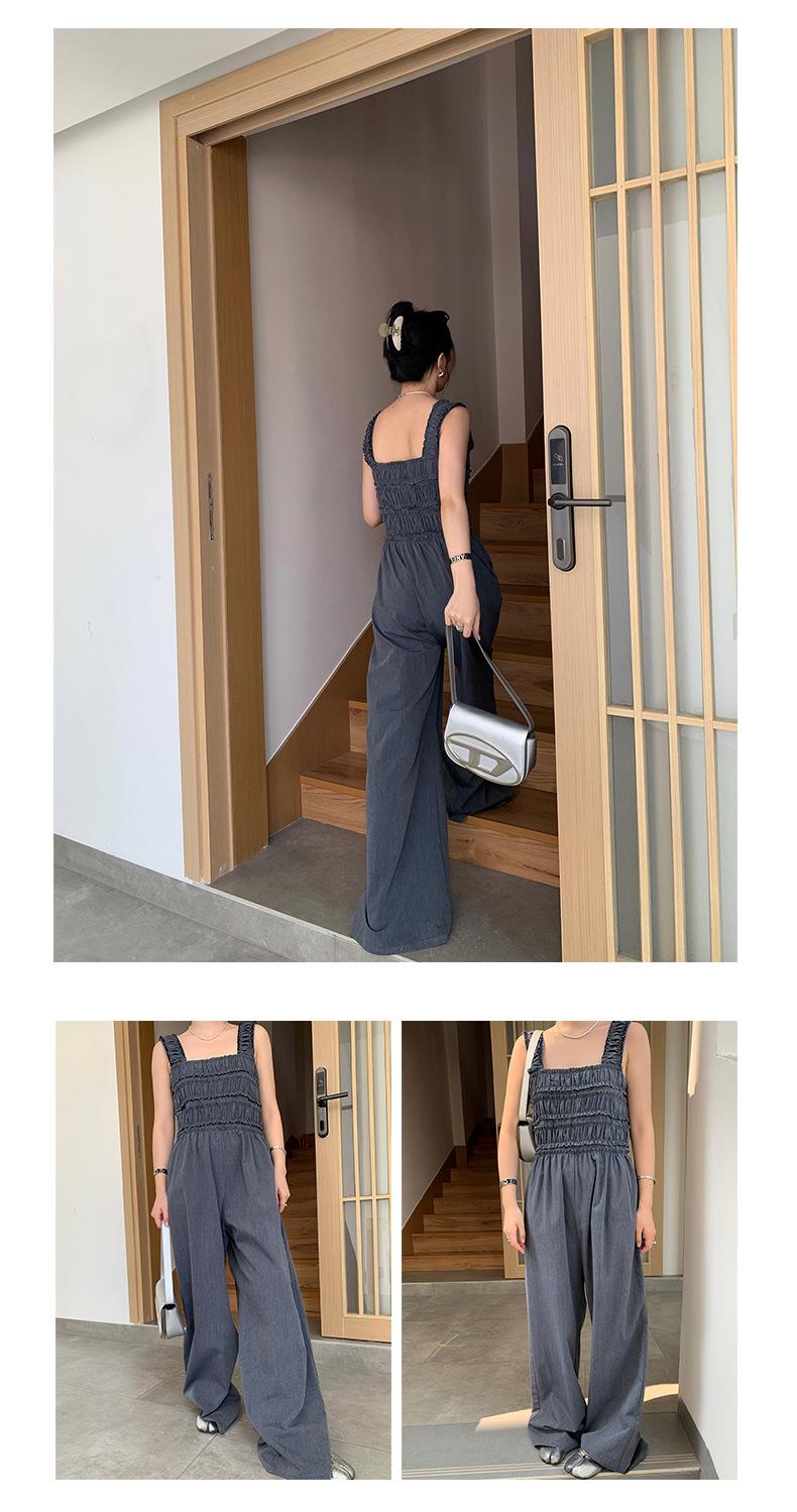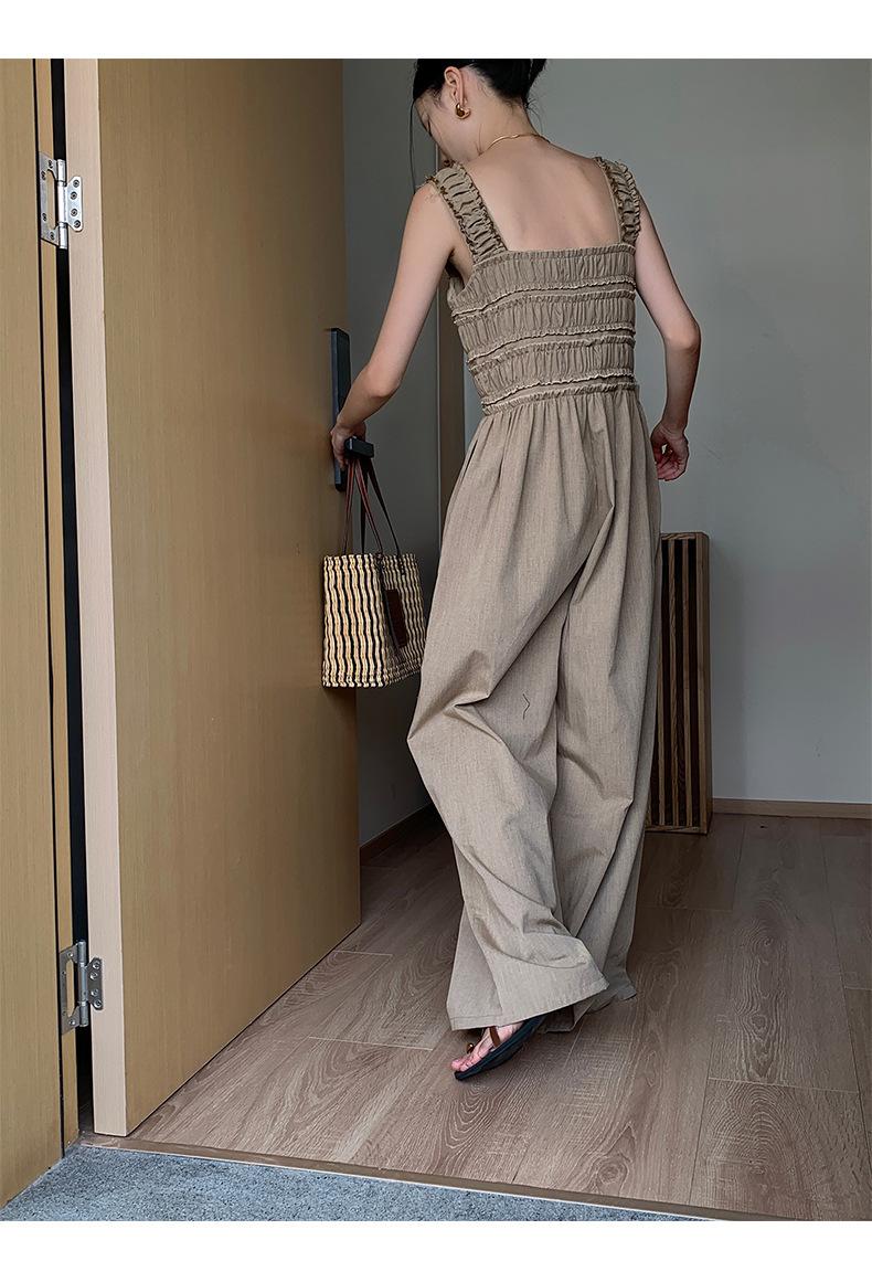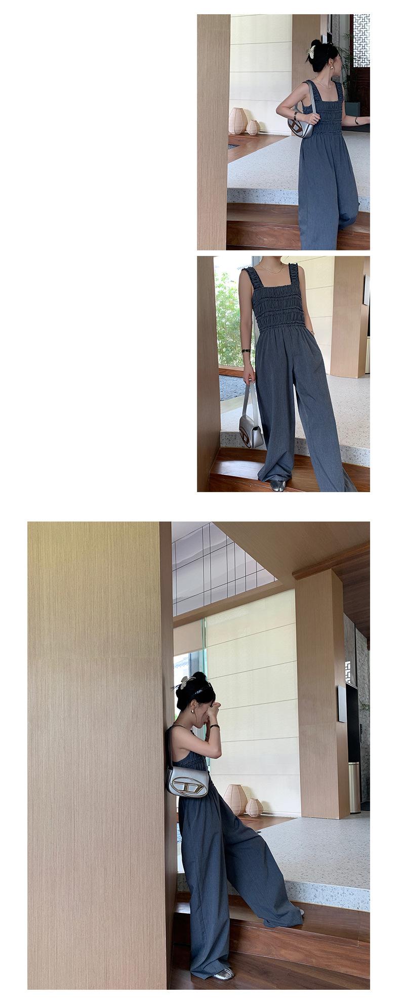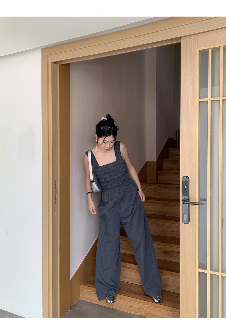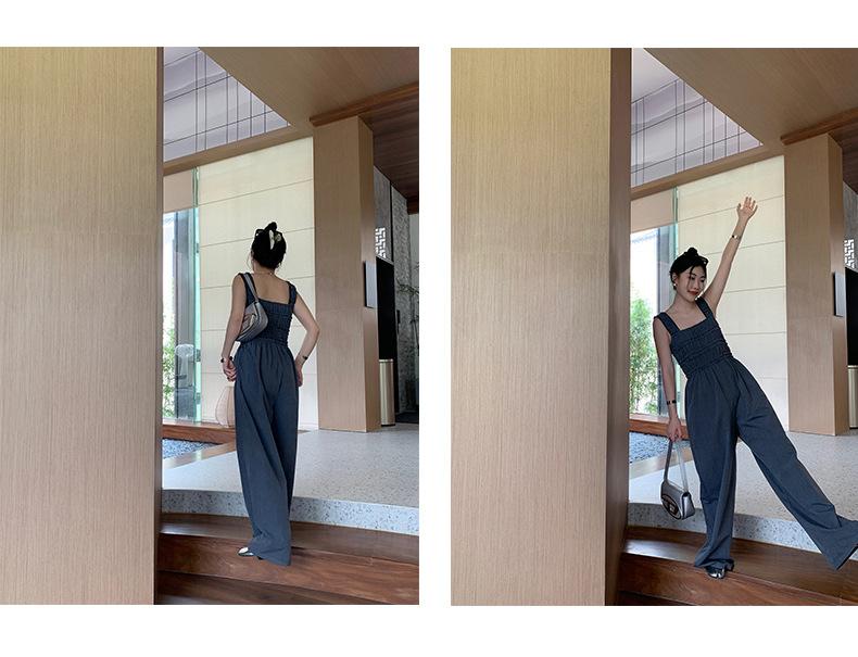 Mono Dreaming DT CLASSIC de corte entallado para mujer, pantalones de verano de cintura alta y pierna ancha con cuello cuadrado y pechera.