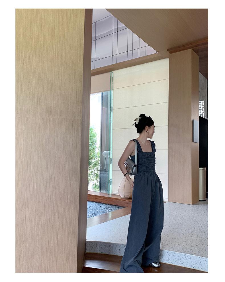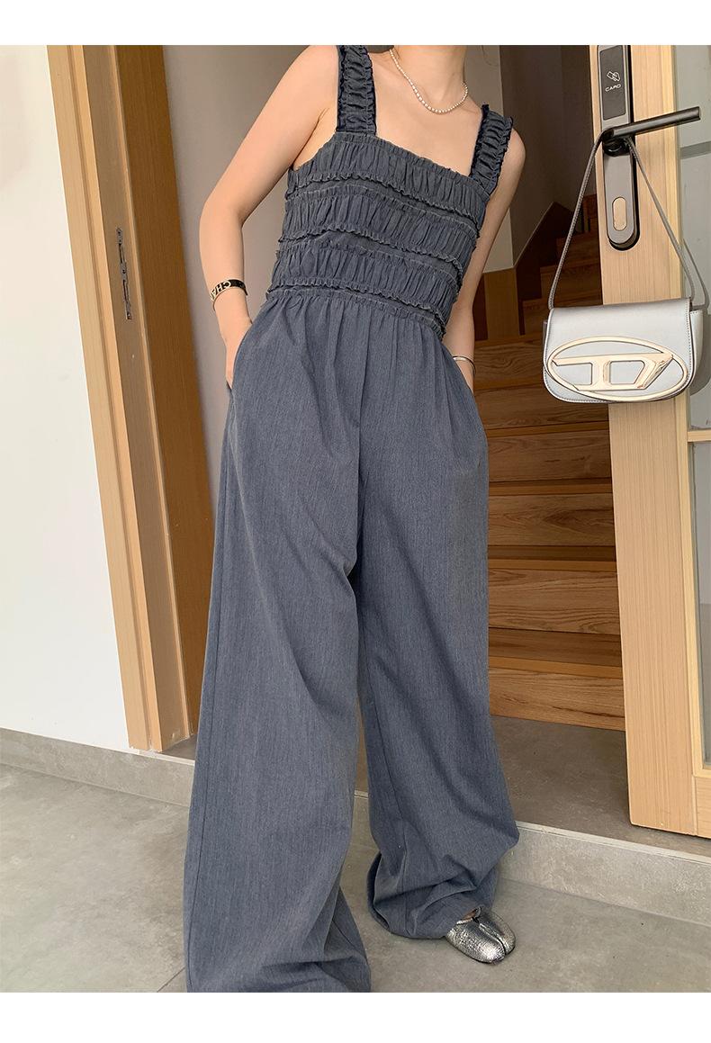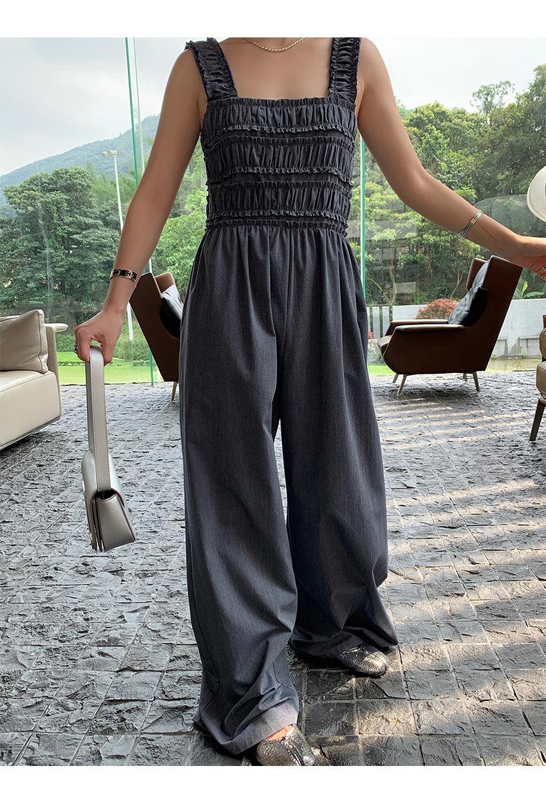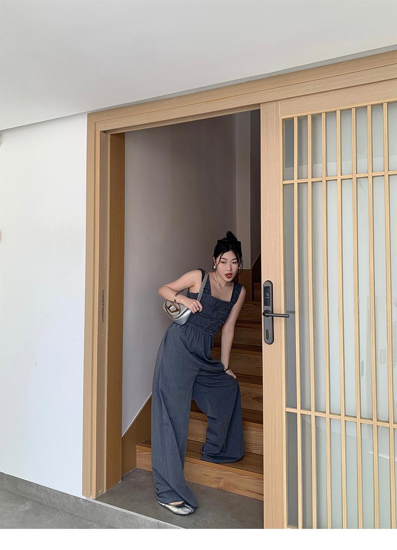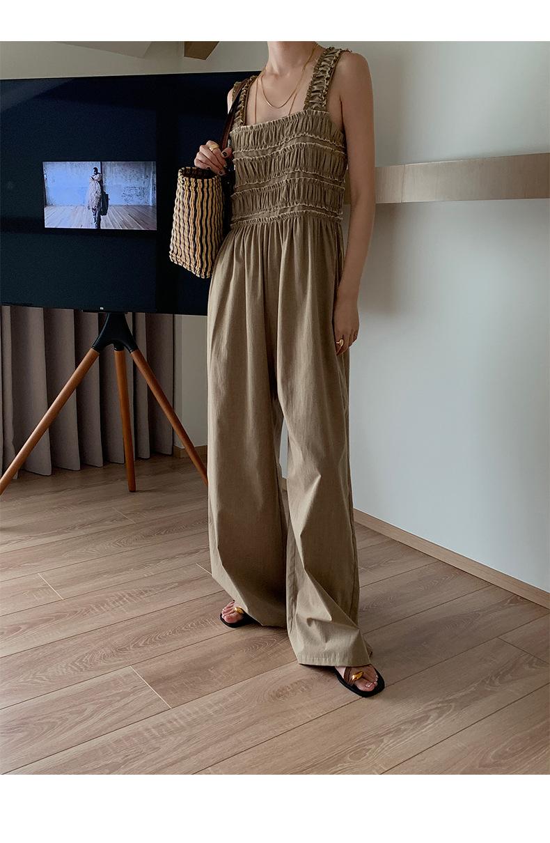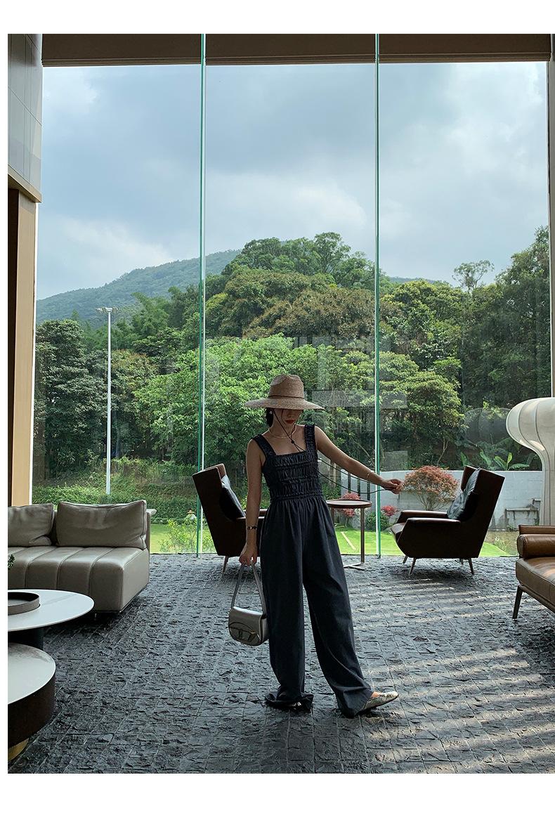 Mono Dreaming DT CLASSIC de corte entallado para mujer, pantalones de verano de cintura alta y pierna ancha con cuello cuadrado y pechera.