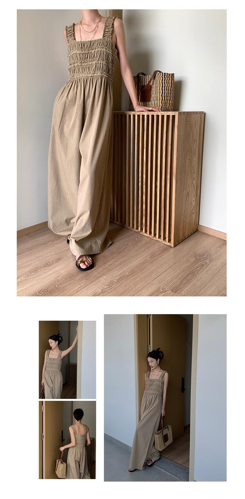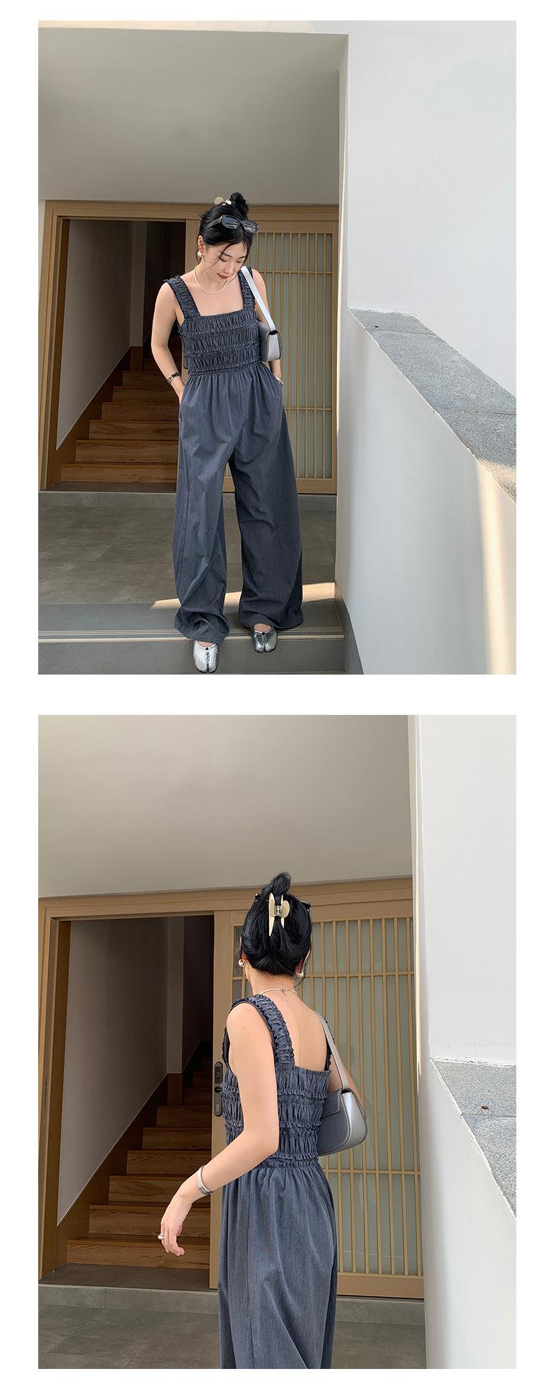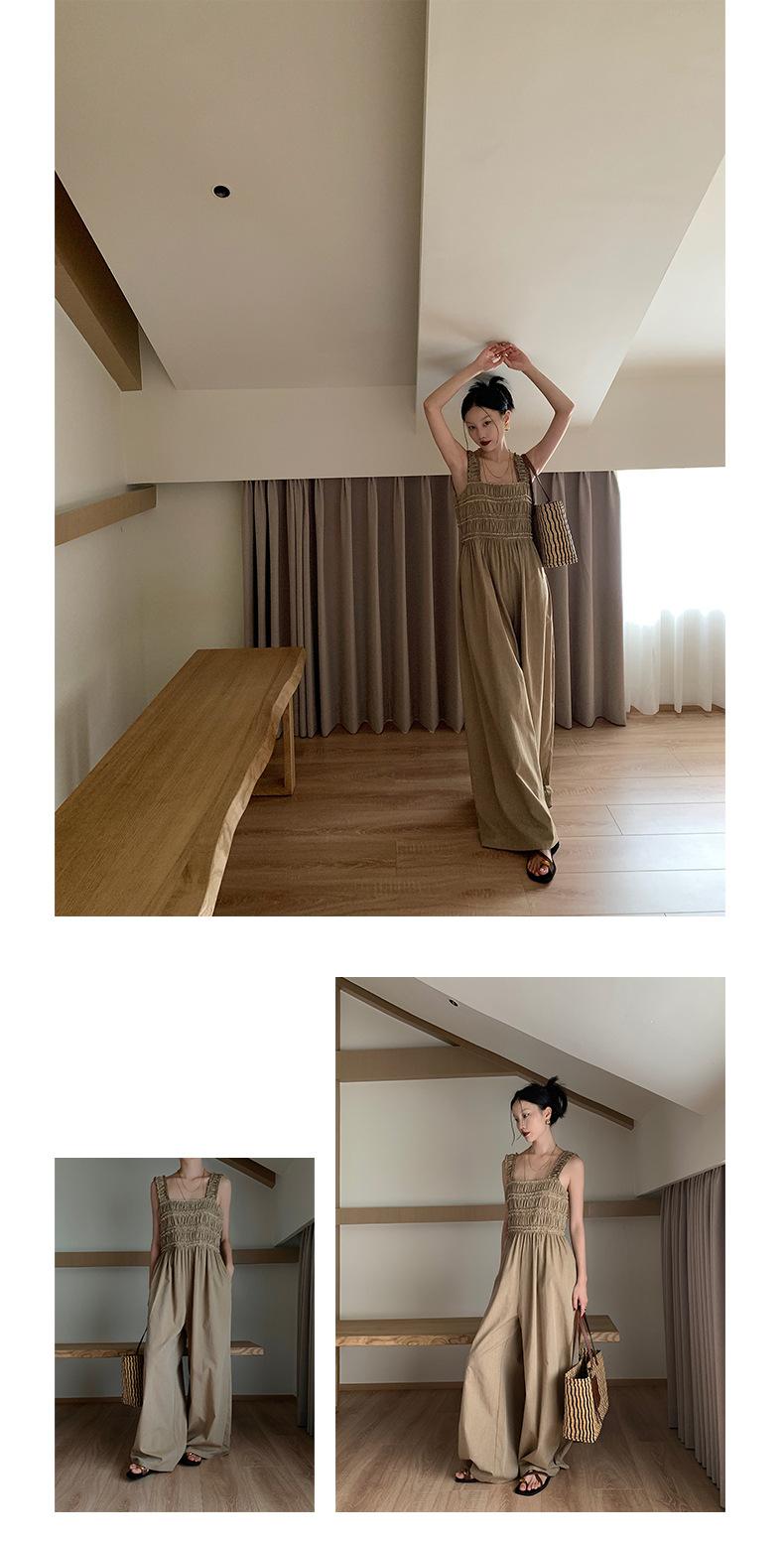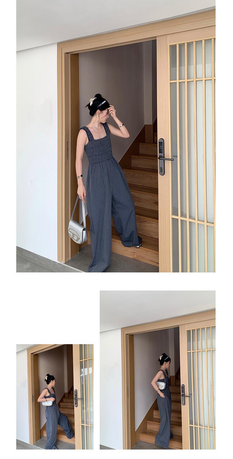 Mono Dreaming DT CLASSIC de corte entallado para mujer, pantalones de verano de cintura alta y pierna ancha con cuello cuadrado y pechera.