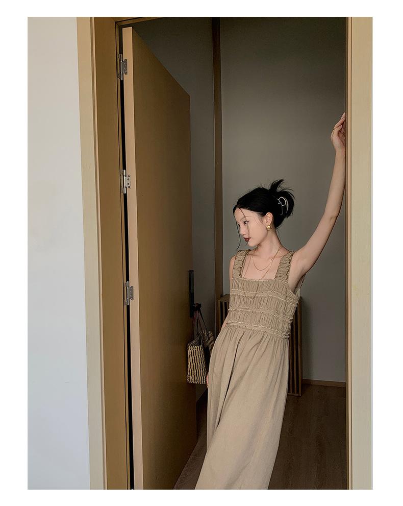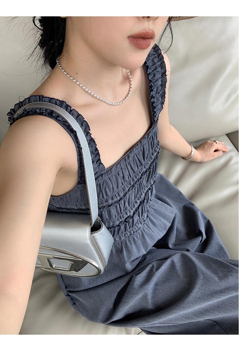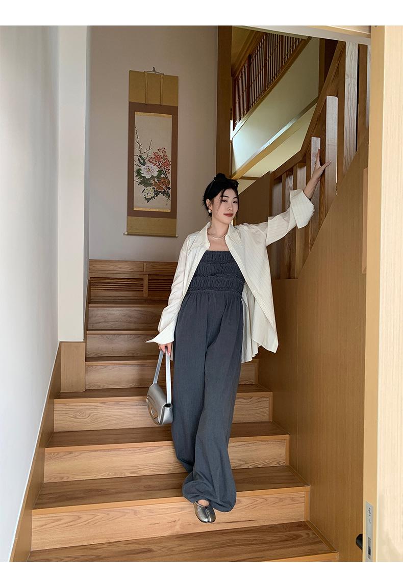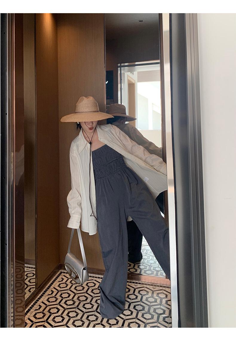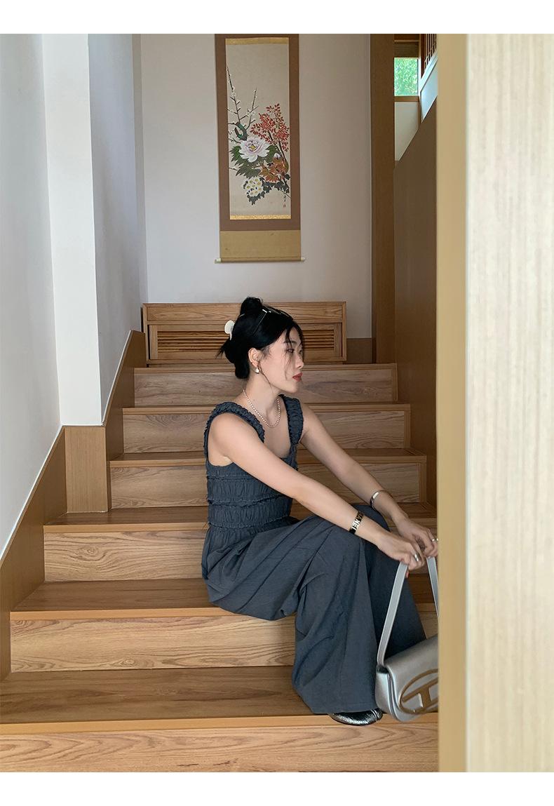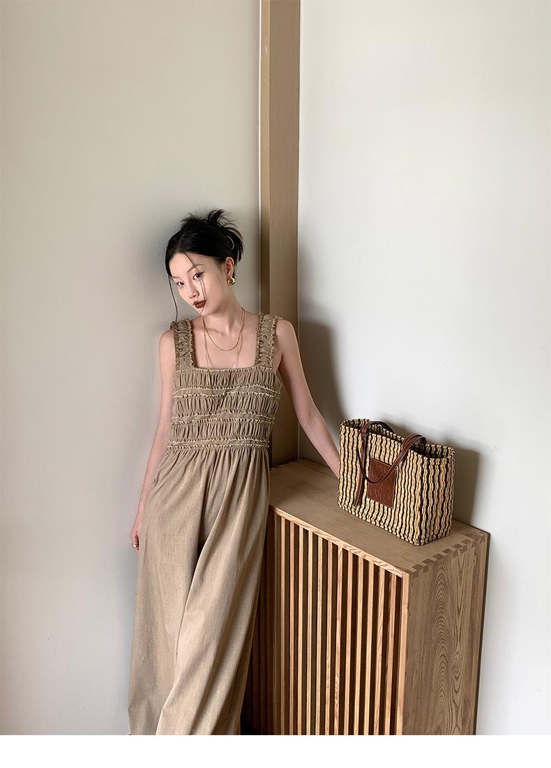 Mono Dreaming DT CLASSIC de corte entallado para mujer, pantalones de verano de cintura alta y pierna ancha con cuello cuadrado y pechera.