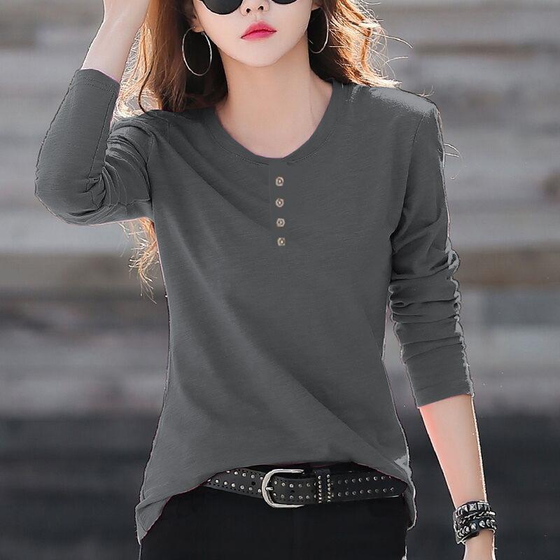Playera de Otoño de Color Puro para Mamá 2025 Nueva Ropa de Mujer Moda Simple Diseño Elegante Top de Manga Larga con Cuello Redondo