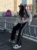 Pantalones de cinta con cordón estilo europeo y americano para mujer 2023 Otoño Nuevo Cintura alta drapeado suelto recto trapeador pierna ancha