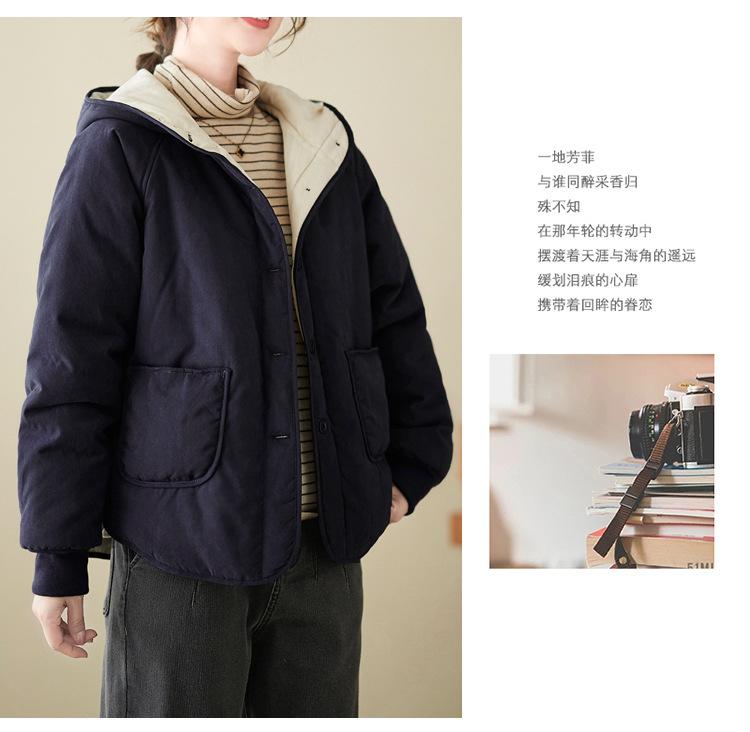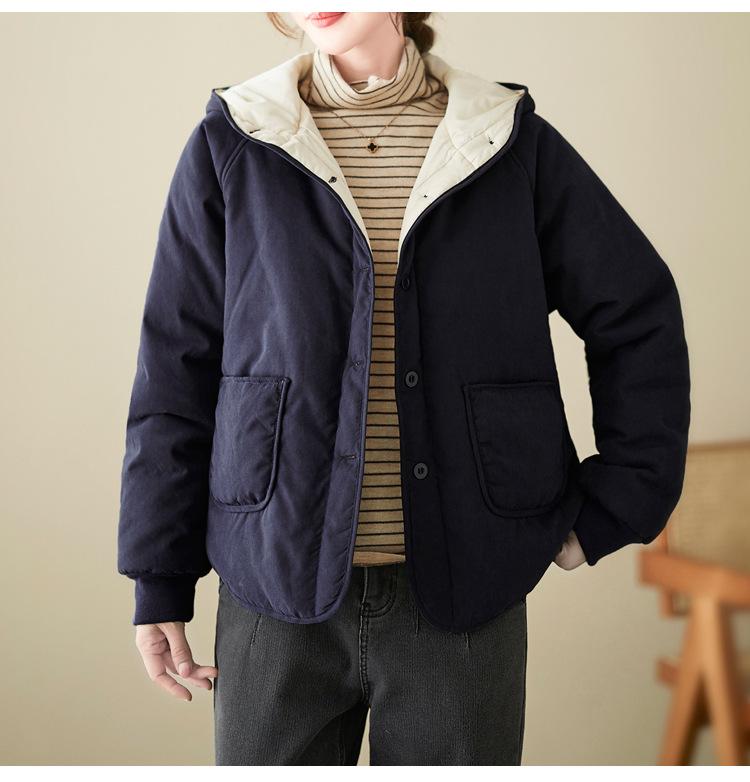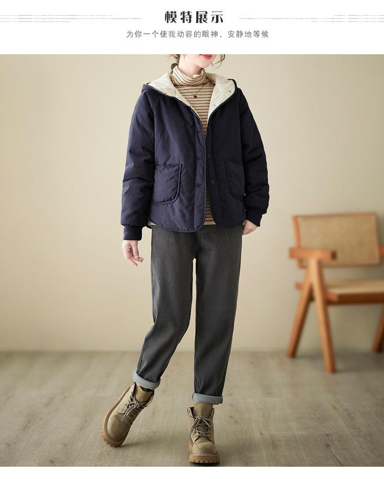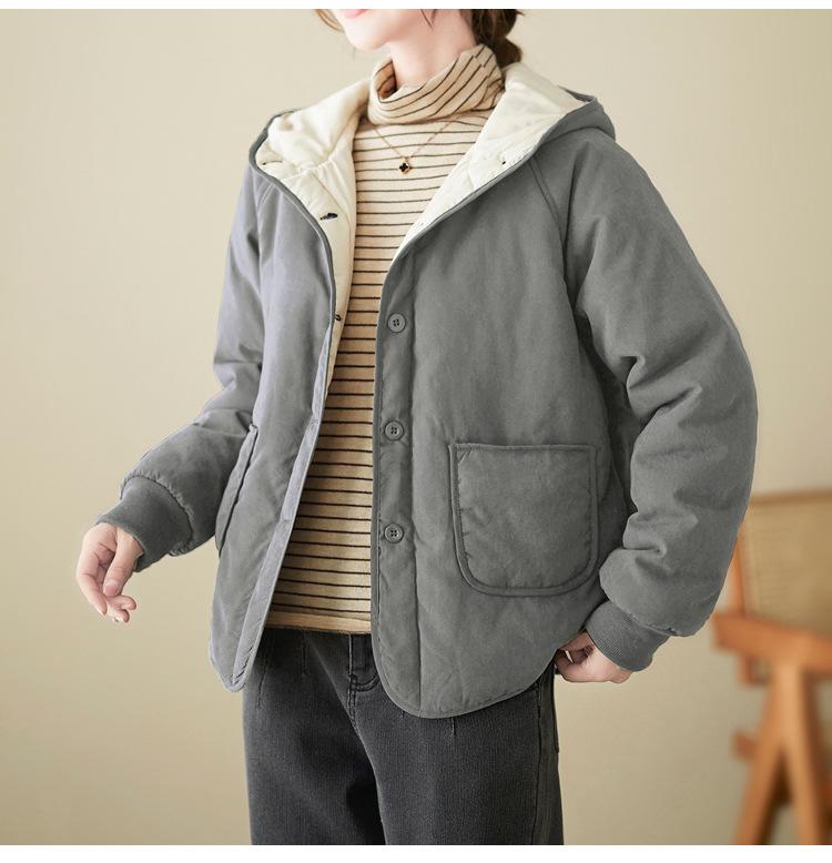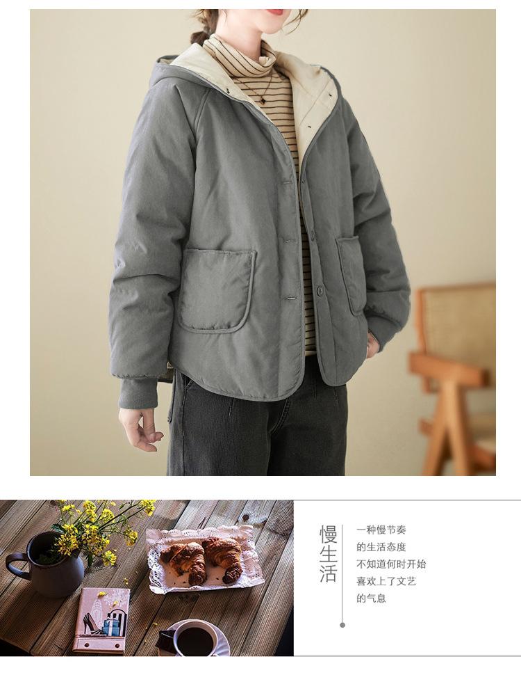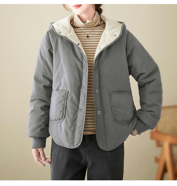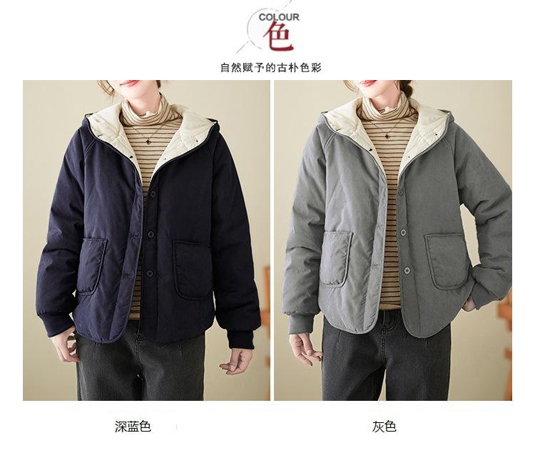 Foto real de la nueva chaqueta con capucha de algodón casual simple para mujer 2025 Estilo de moda popular