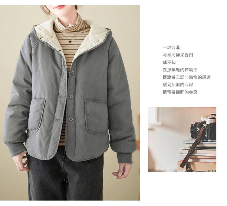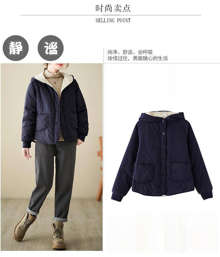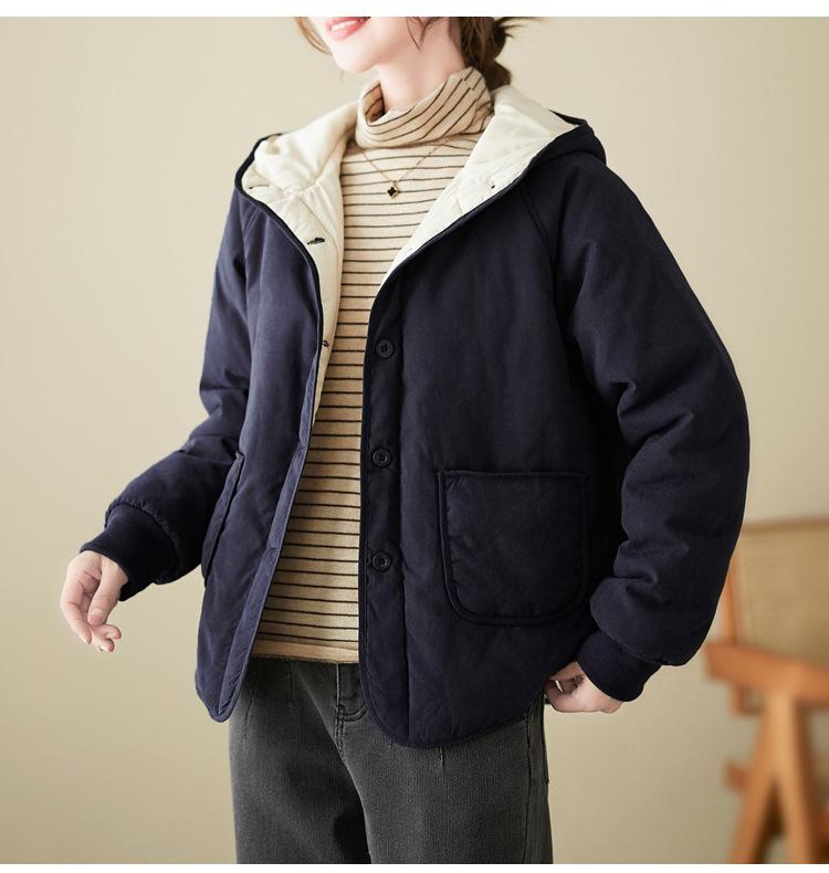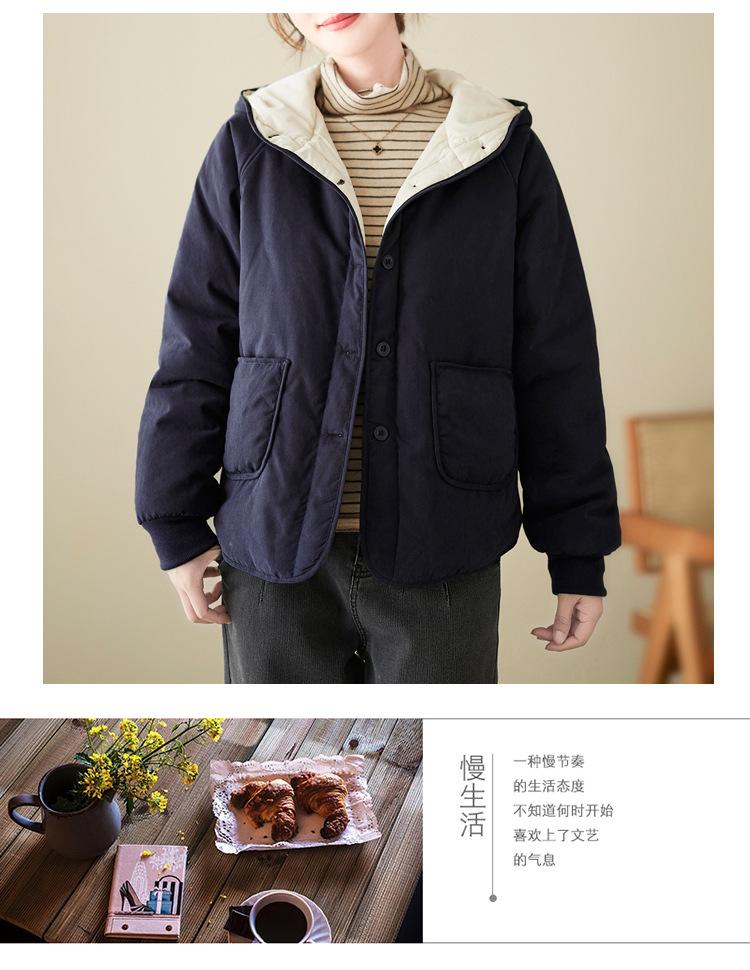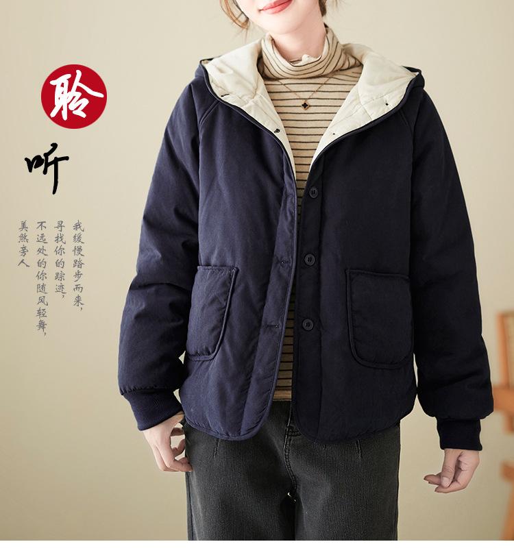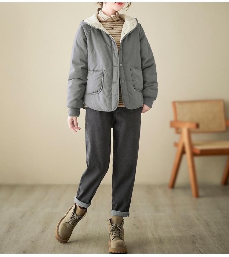Foto real de la nueva chaqueta con capucha de algodón casual simple para mujer 2025 Estilo de moda popular