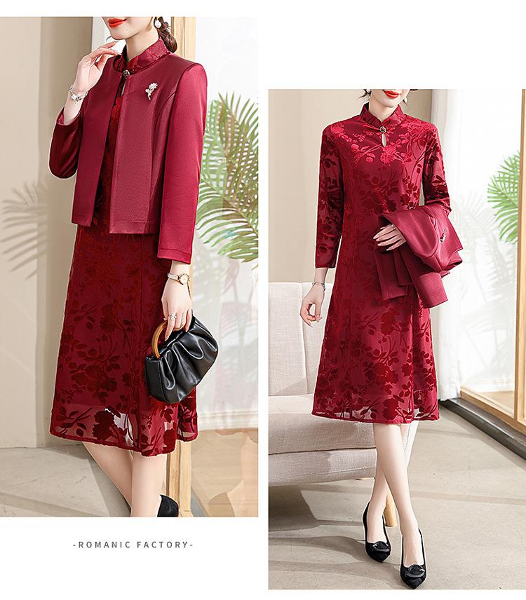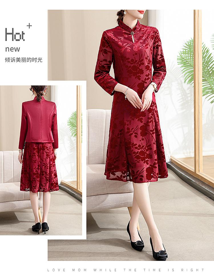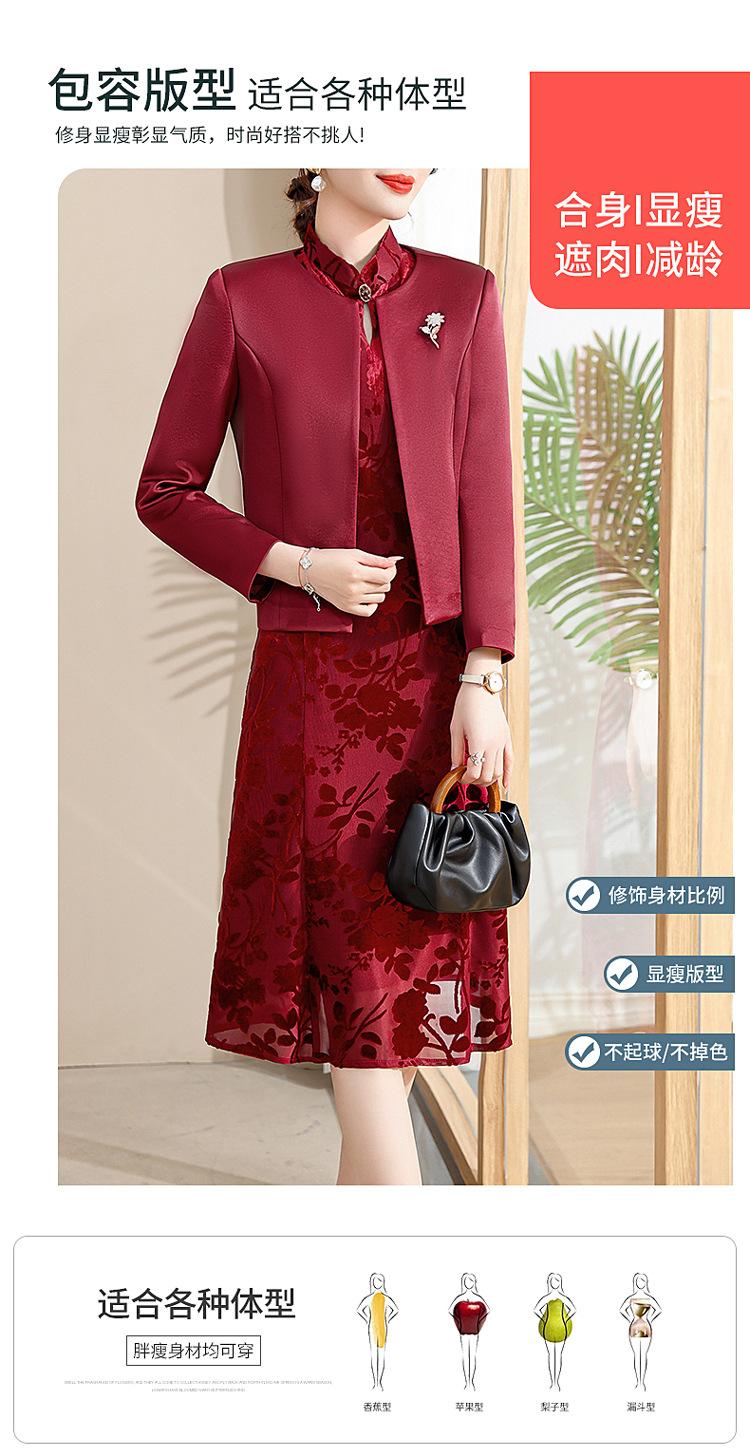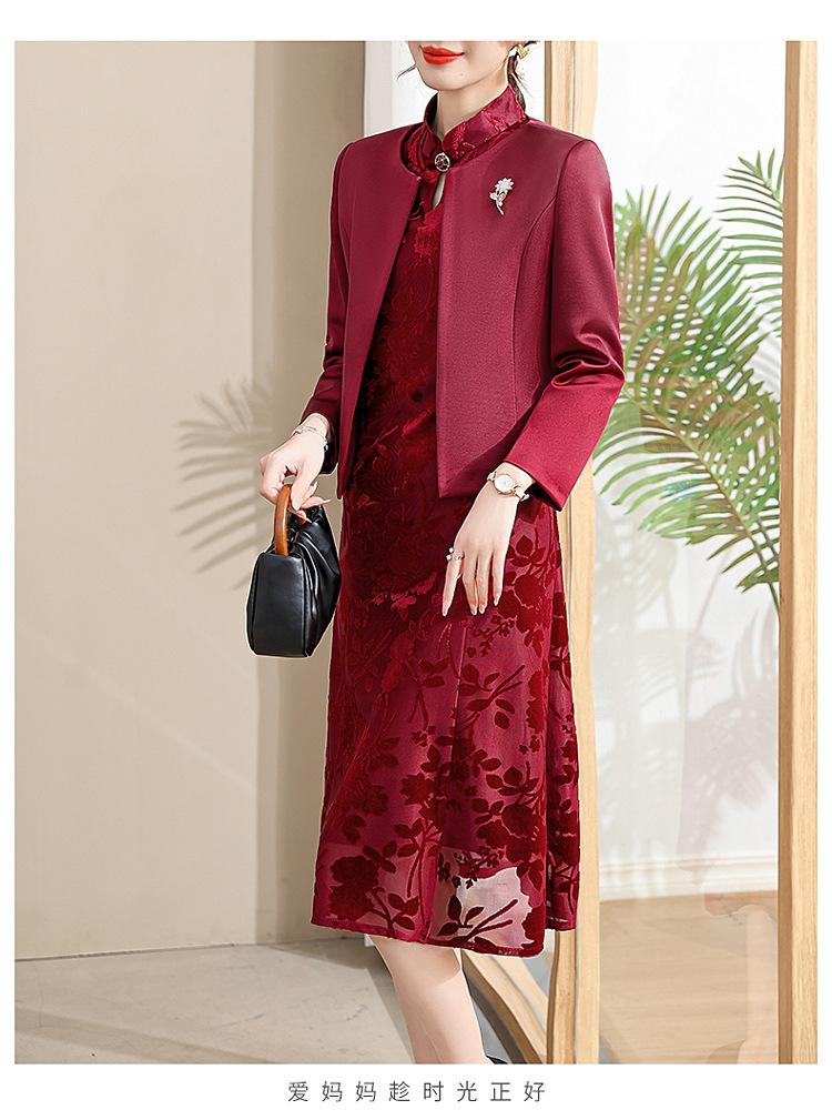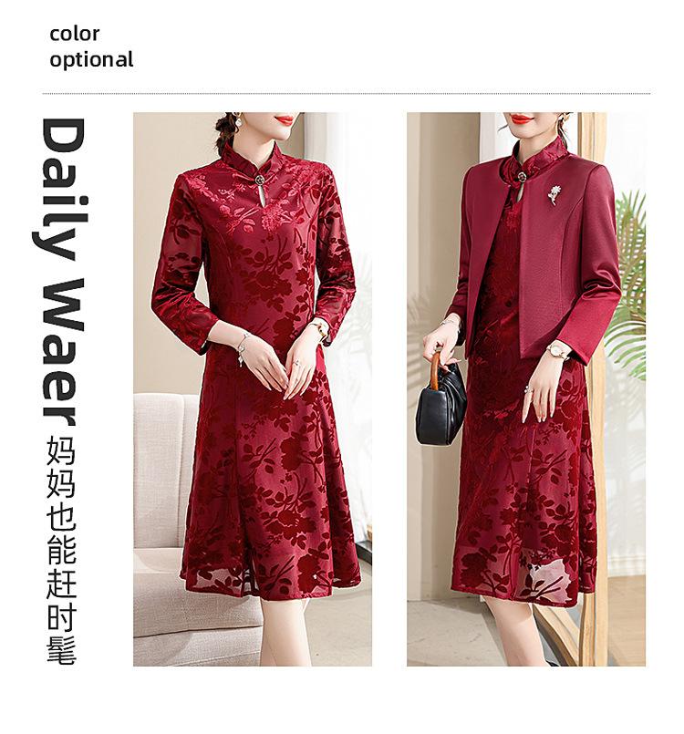 Vestido de Boda de la Madre Vestido Cheongsam Chal Exterior para Mujeres de Mediana Edad y Mayores Xi Suegra Vestido de Alta Gama Conjunto de Dos Piezas