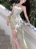 Vestido de tirantes florales estilo Pure Desire para mujer, temperamento ceñido a la cintura, vestido de fiesta con volantes irregulares Pure Desire para primavera y verano