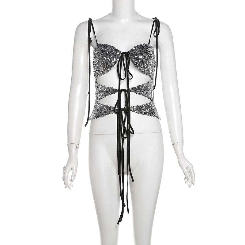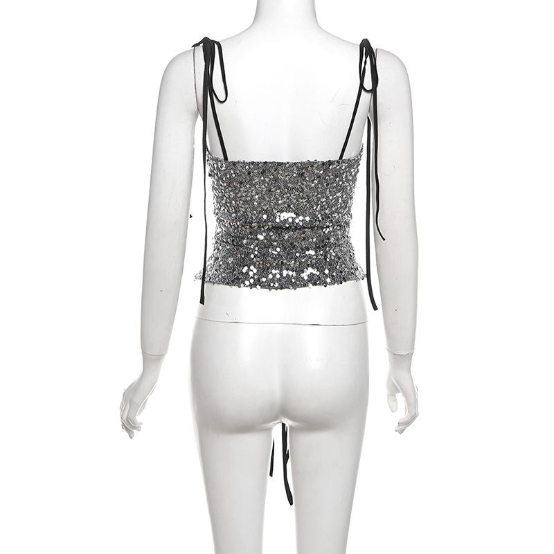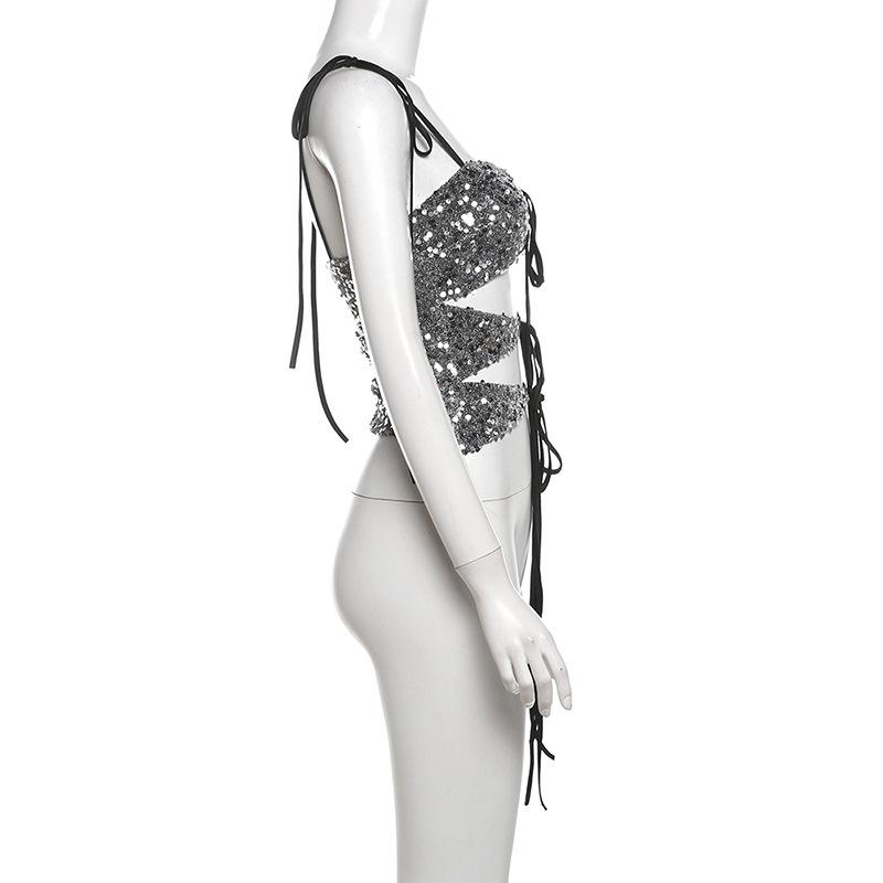 Chaleco sexy sin espalda de estilo europeo y americano para mujer, estilo urbano, ajustado, de color sólido, estilo transfronterizo, para verano de 2024