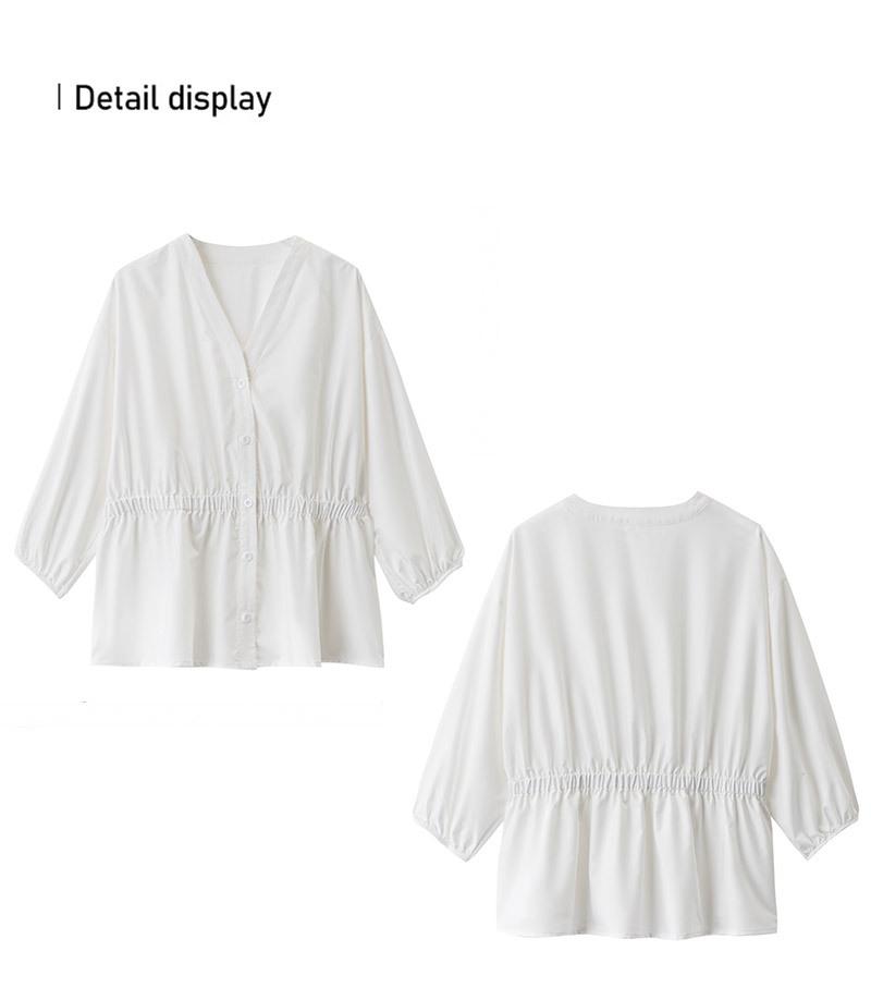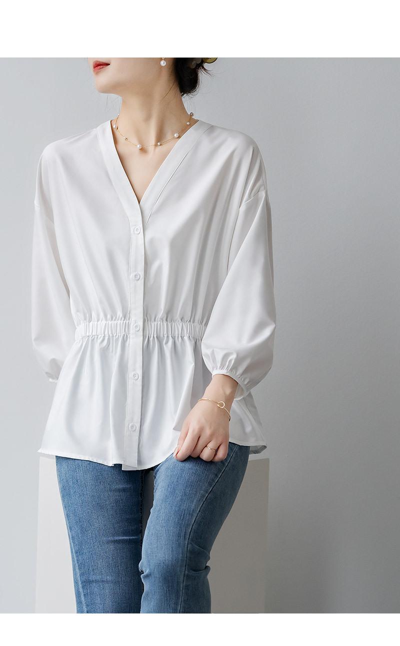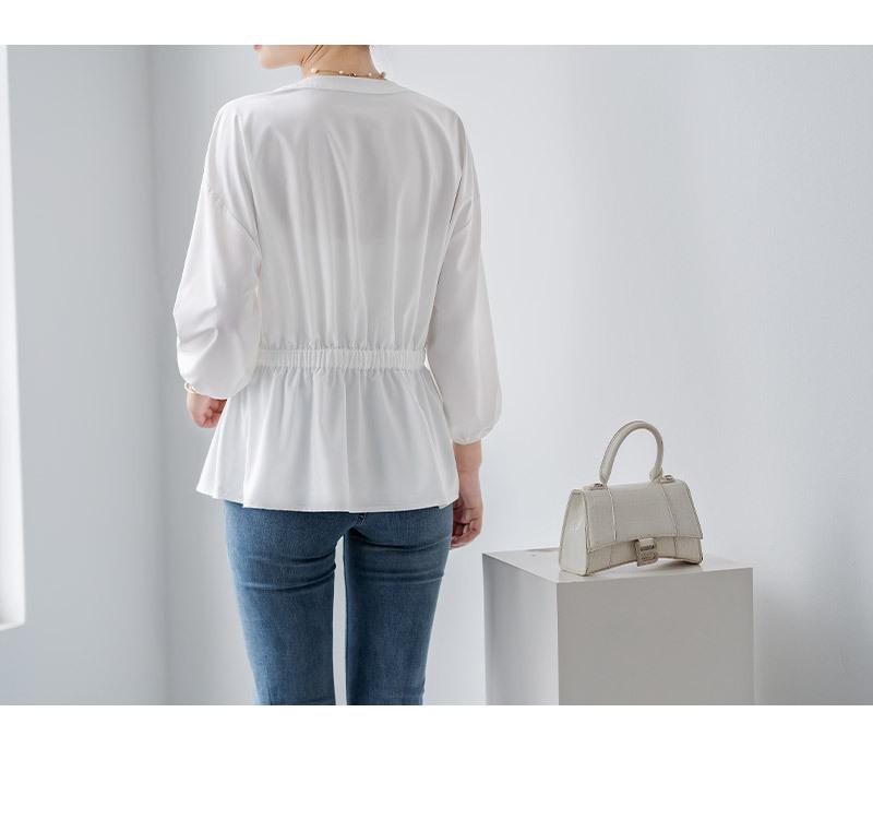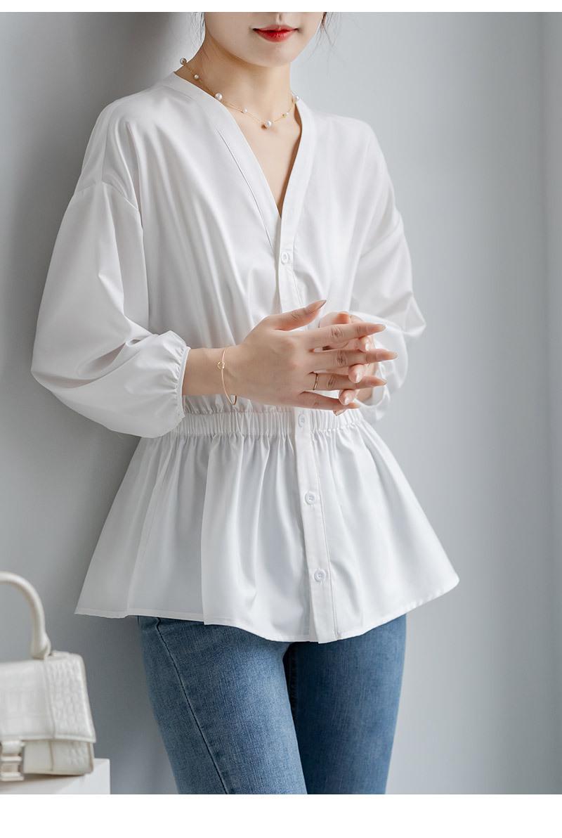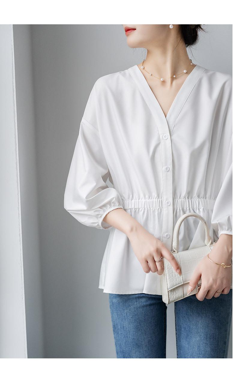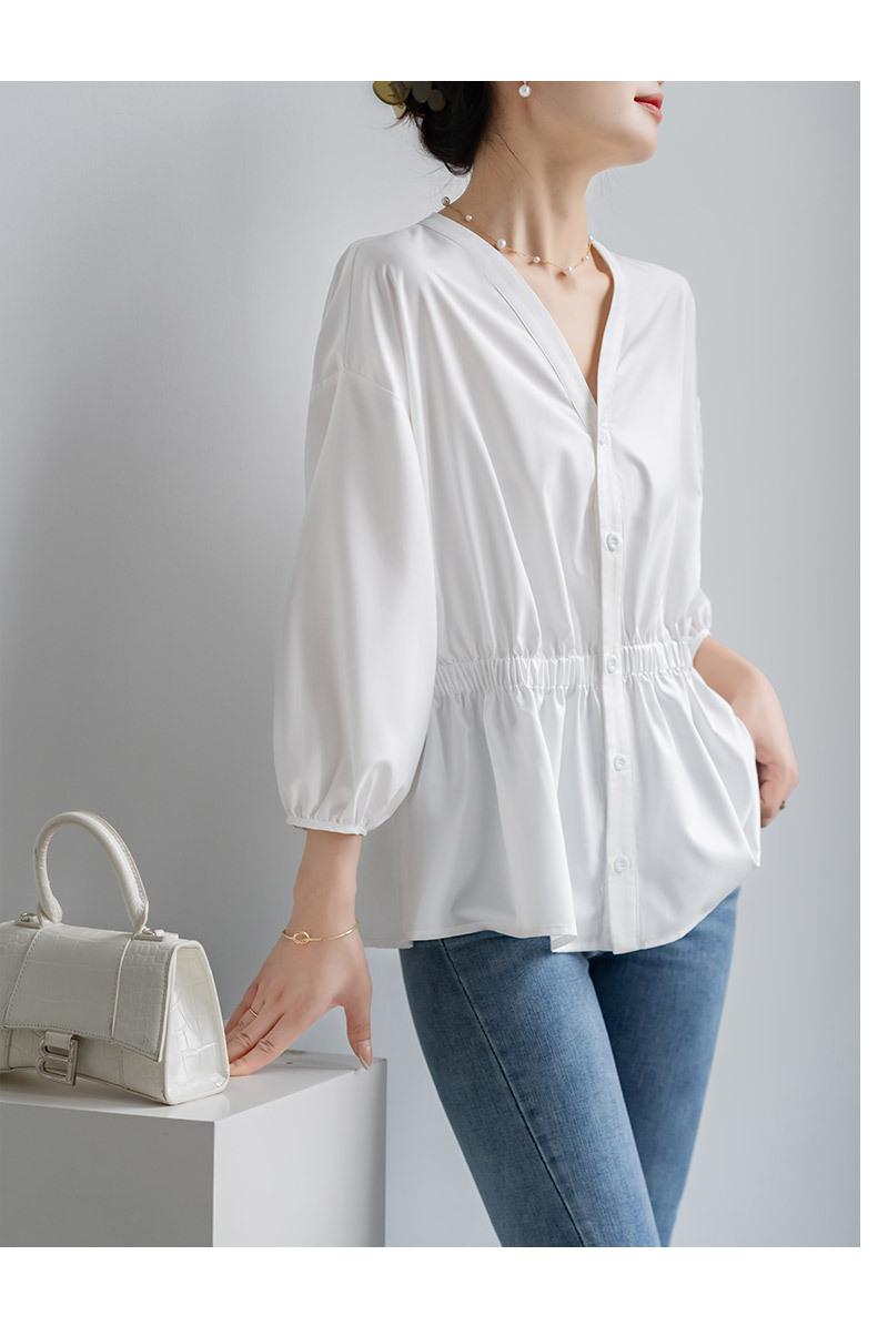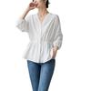2025 Nuevo Estilo de Verano Cuello en V Manga Linterna Camisa Babydoll con Diseño Reductor de Edad Nicho Camisa Holgada de Cintura Francesa Top