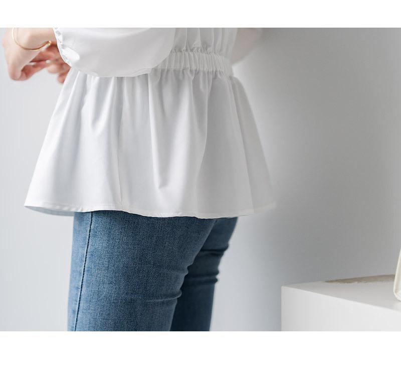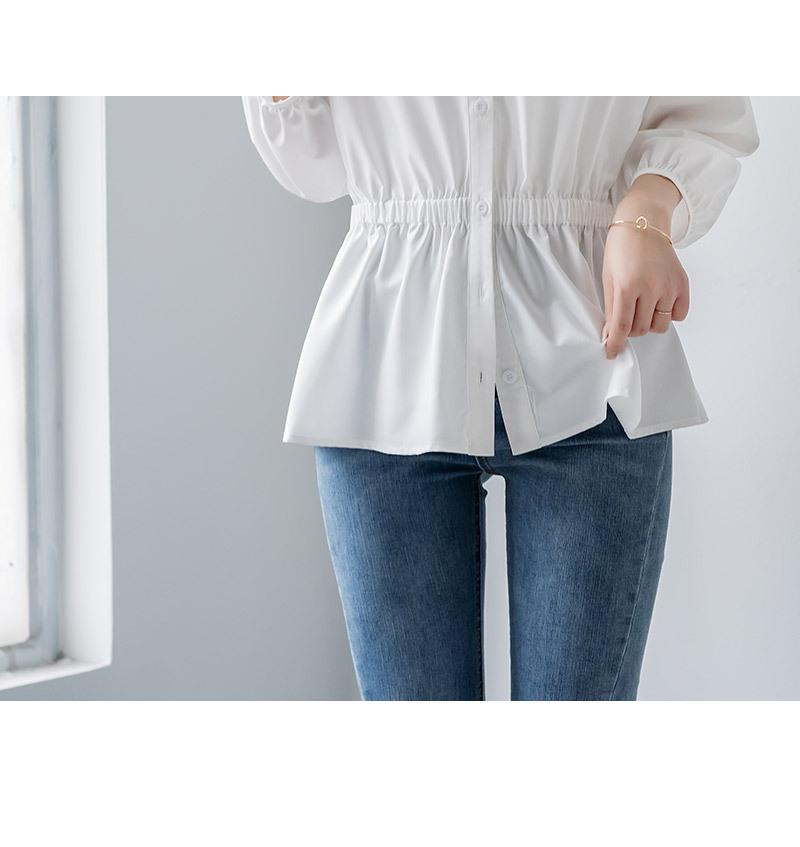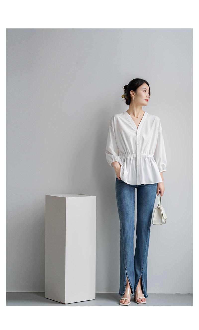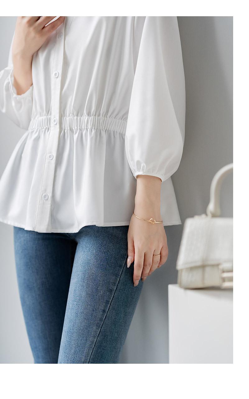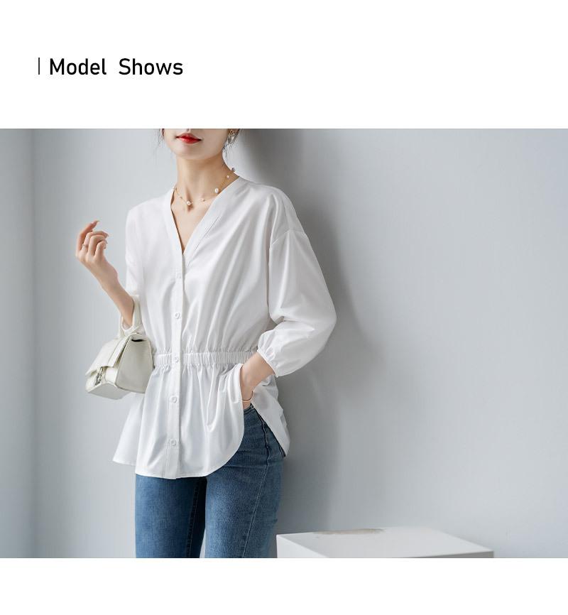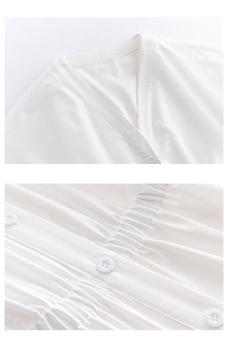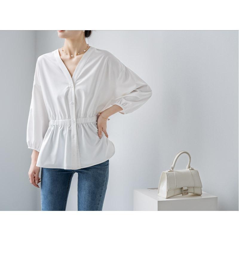 2025 Nuevo Estilo de Verano Cuello en V Manga Linterna Camisa Babydoll con Diseño Reductor de Edad Nicho Camisa Holgada de Cintura Francesa Top