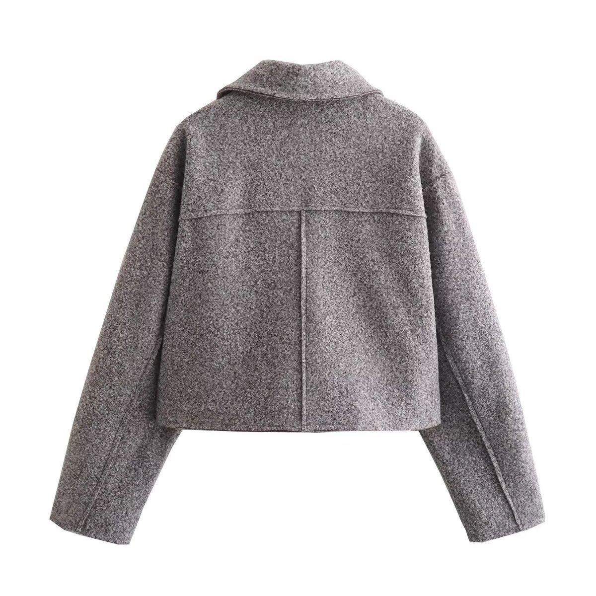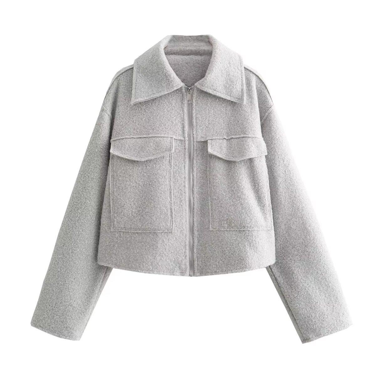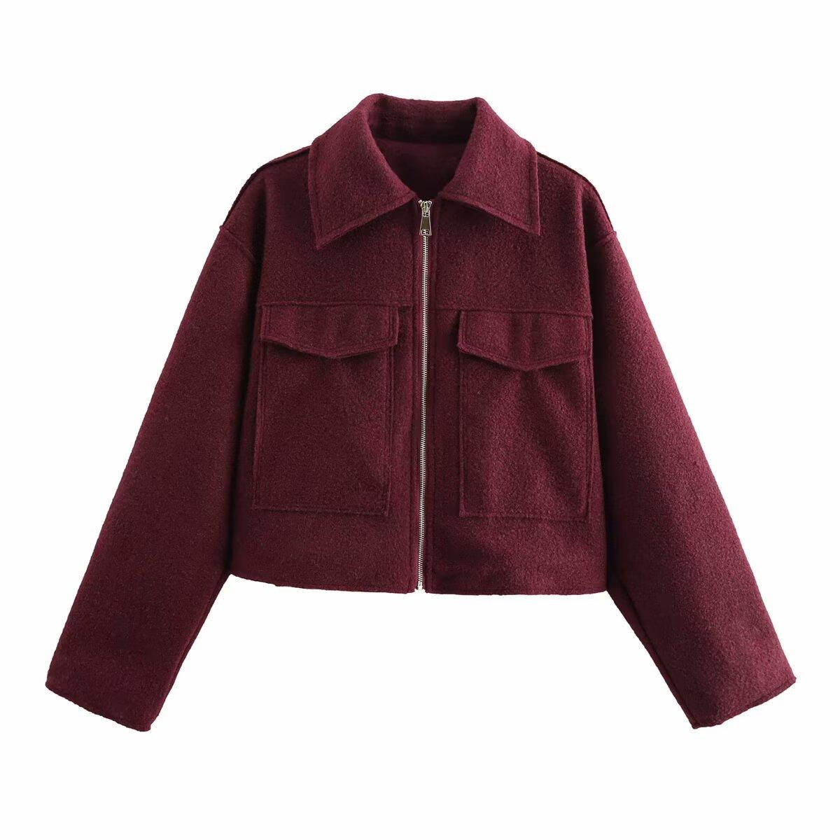 Invierno 2025 Nuevo Ropa de Mujer Transfronteriza Europea y Americana Chaqueta Corta de Lana con Cremallera Multicolor W107 8684