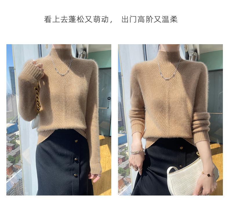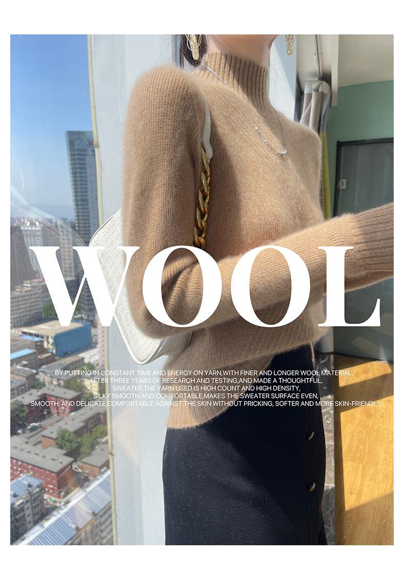 Estación europea otoño e invierno Nuevo suéter de medio cuello alto suéter interior para mujer engrosado suelto adelgazante tejido camisa básica moda