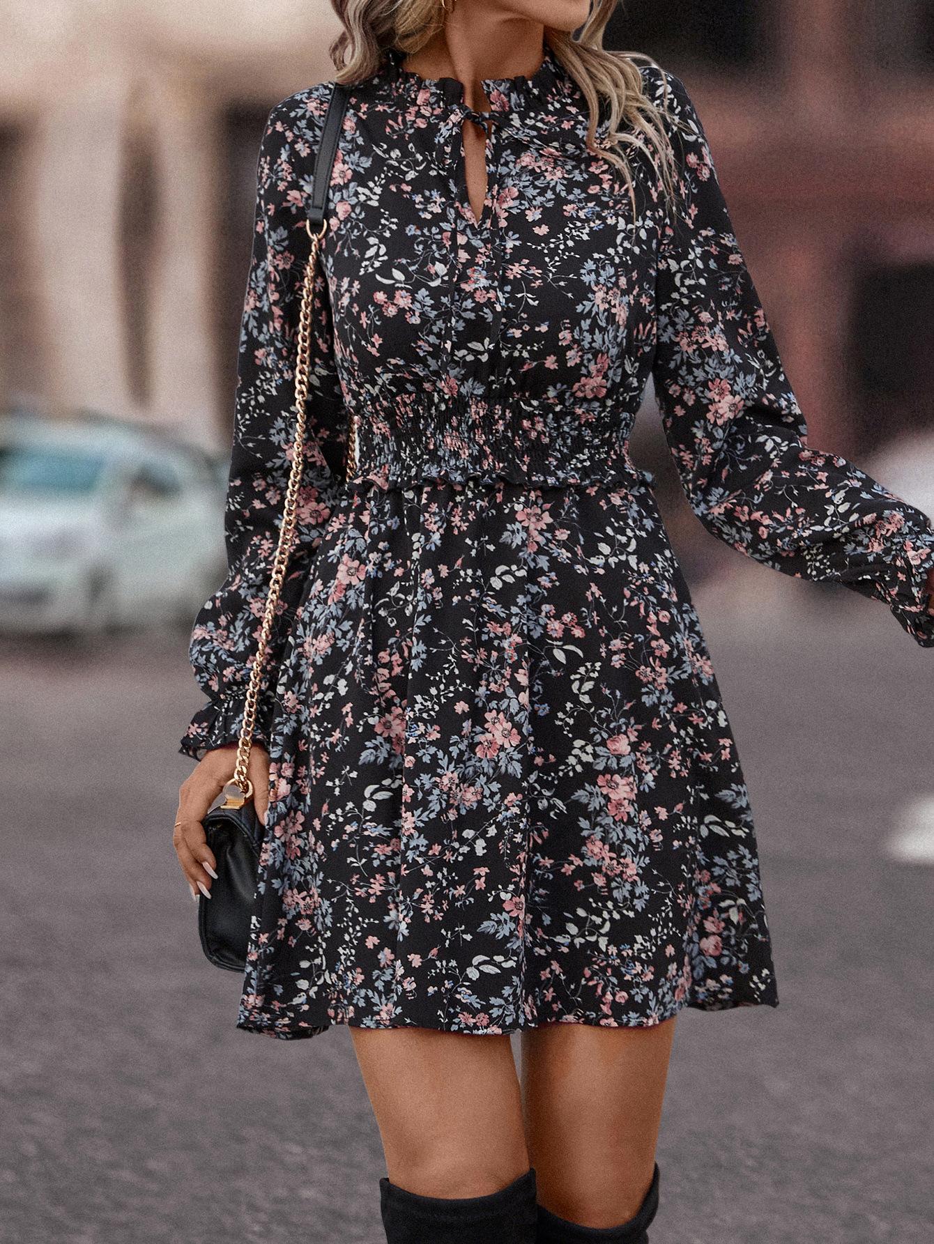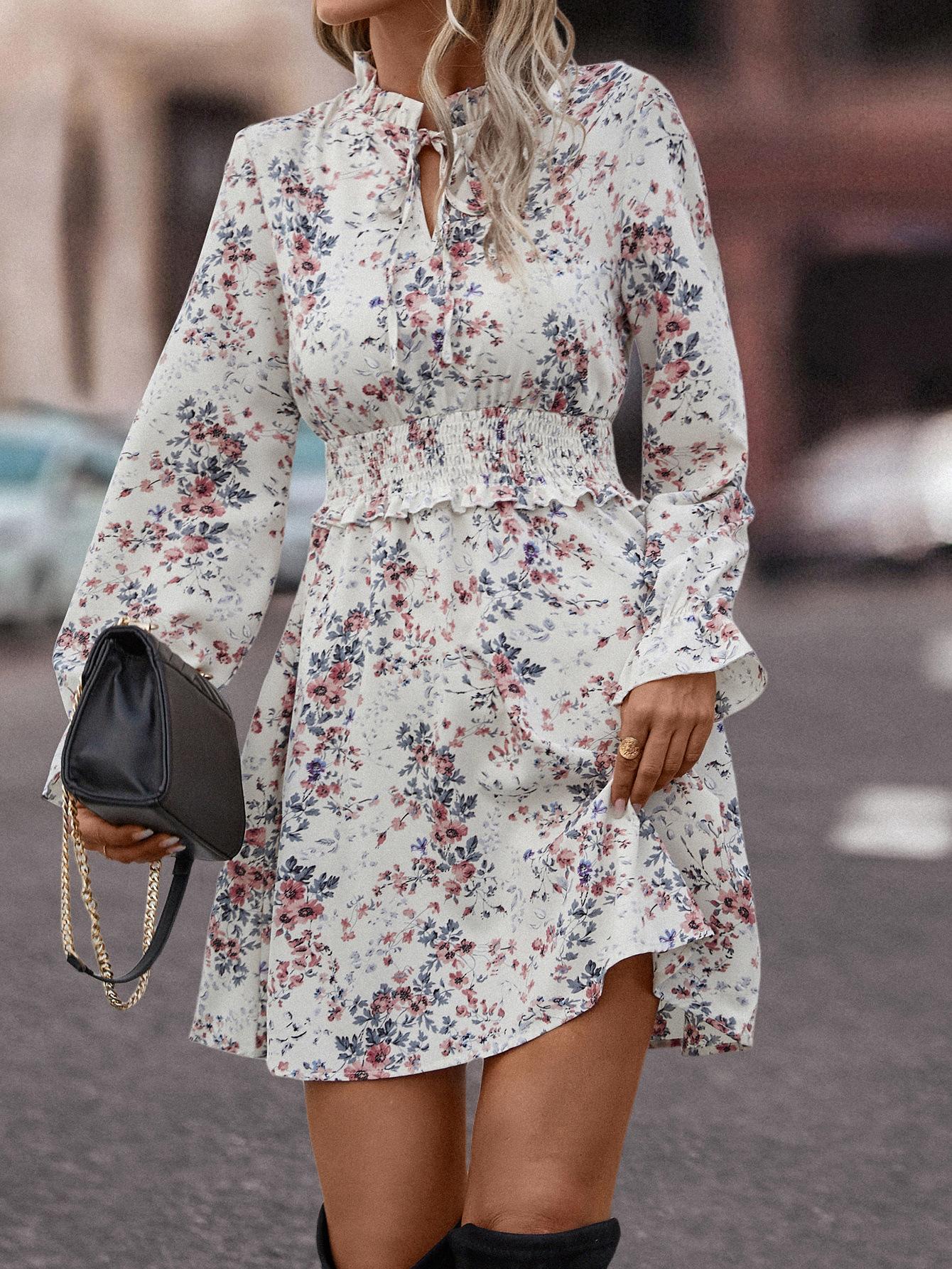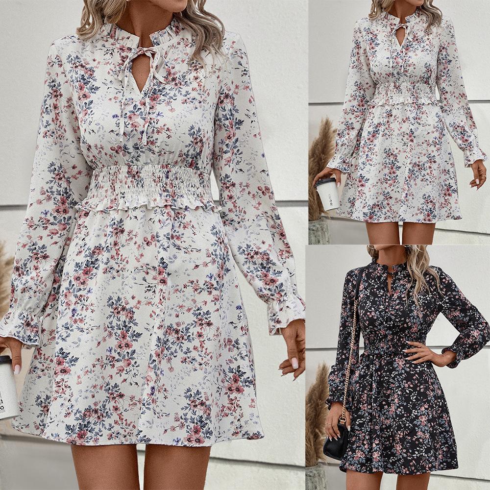 Mono informal con cuello en V y estampado de hojas de loto popular en eBay y Amazon, superventas en estaciones independientes, 2023