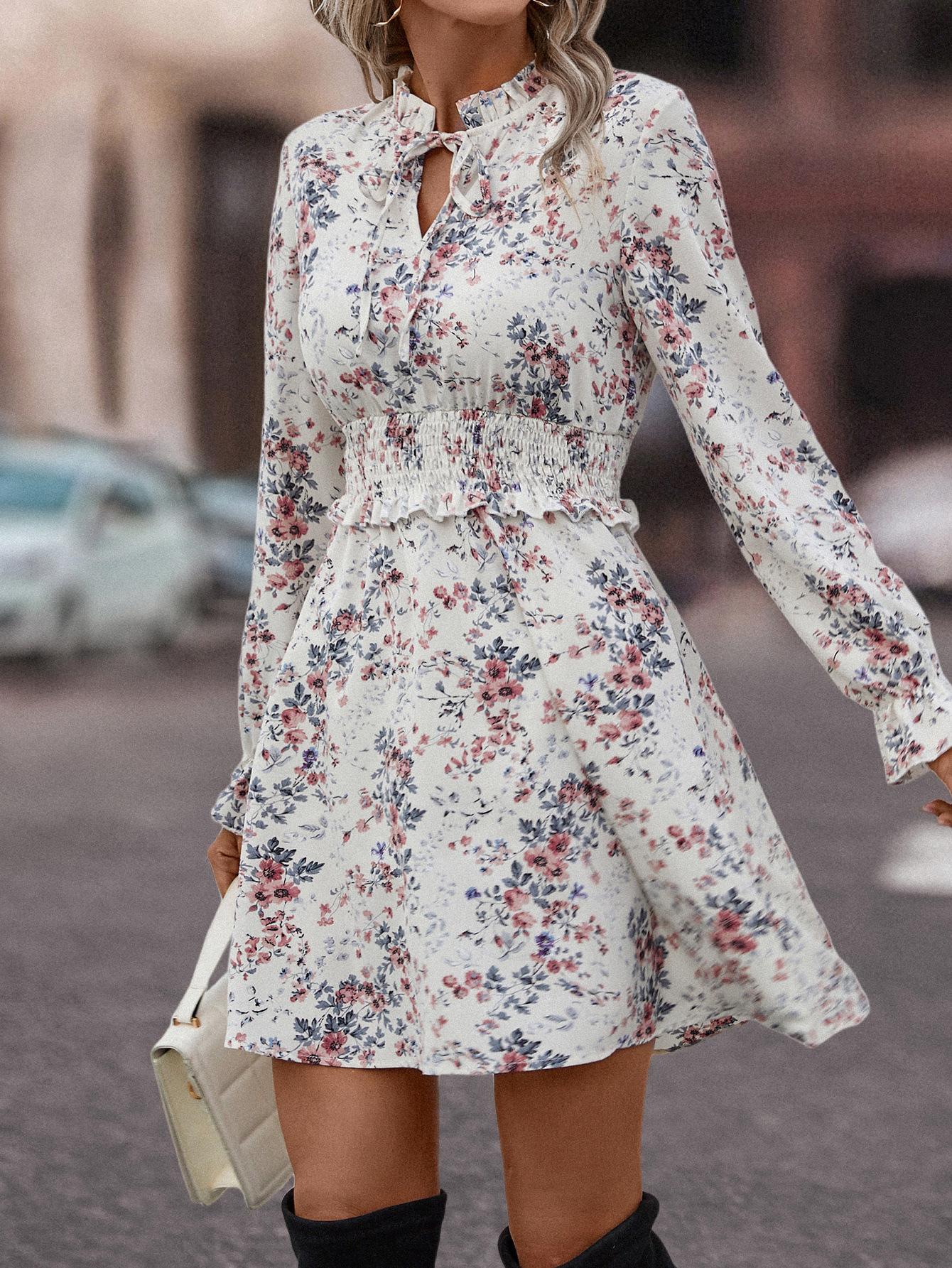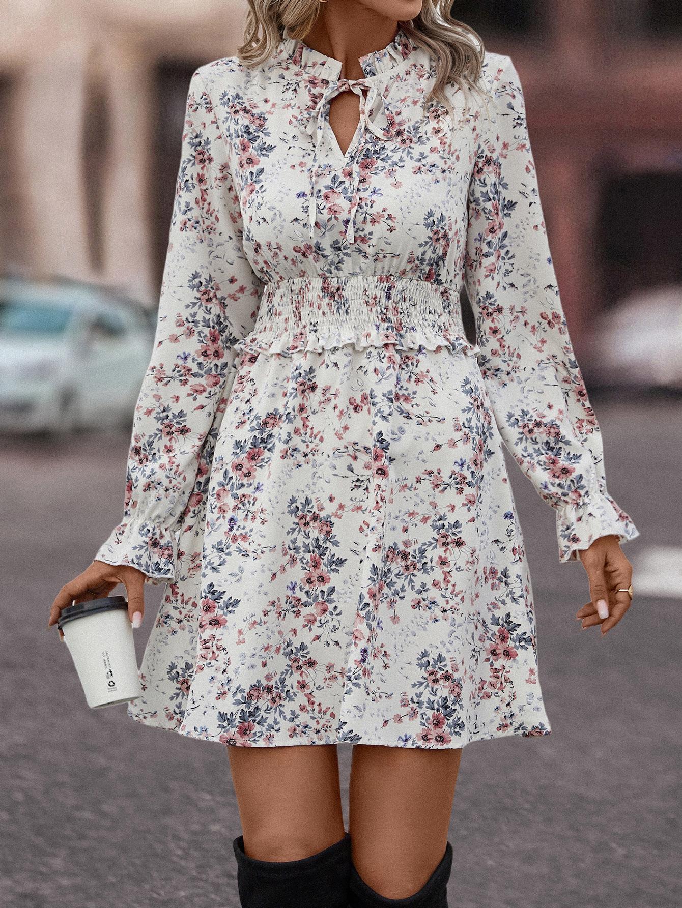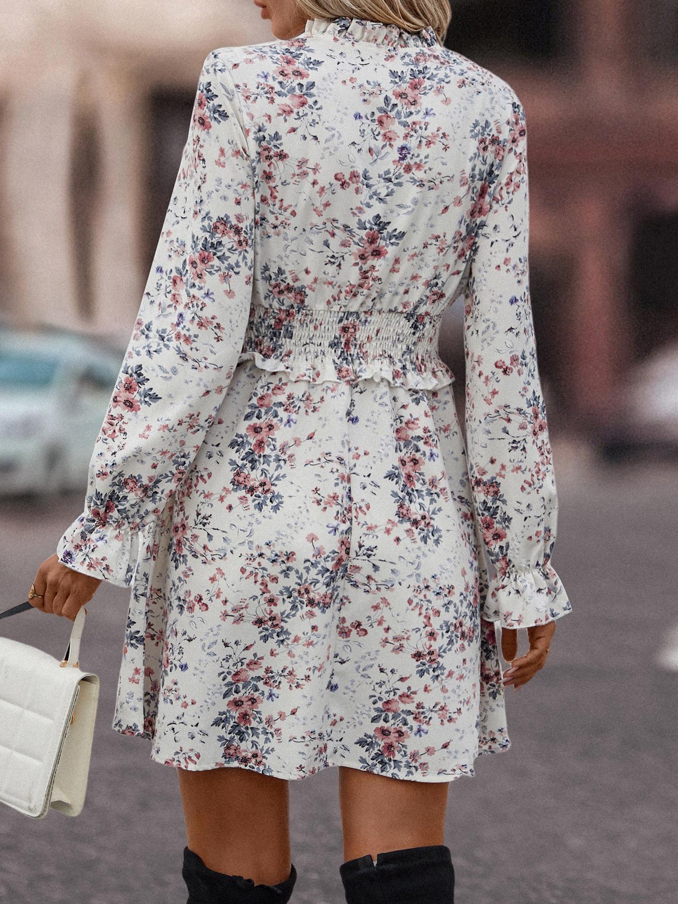 Mono informal con cuello en V y estampado de hojas de loto popular en eBay y Amazon, superventas en estaciones independientes, 2023
