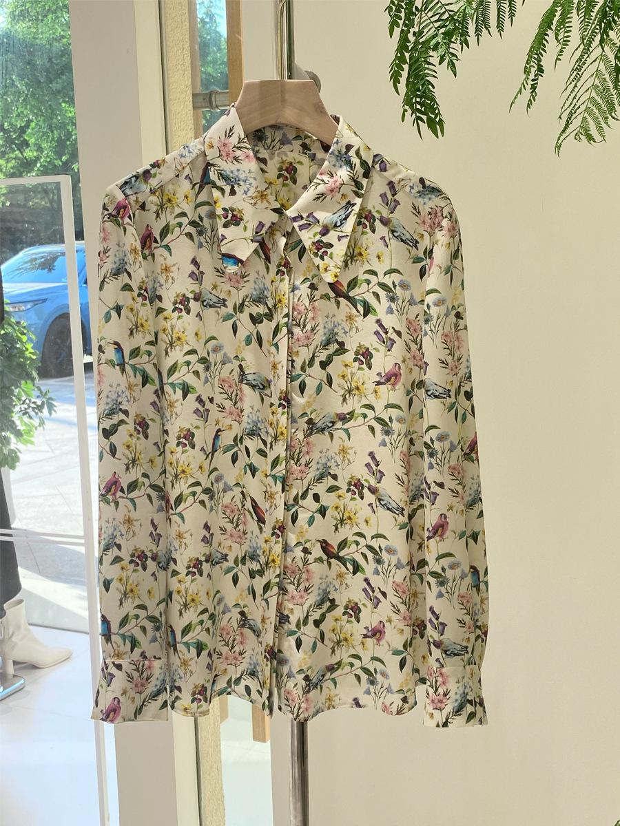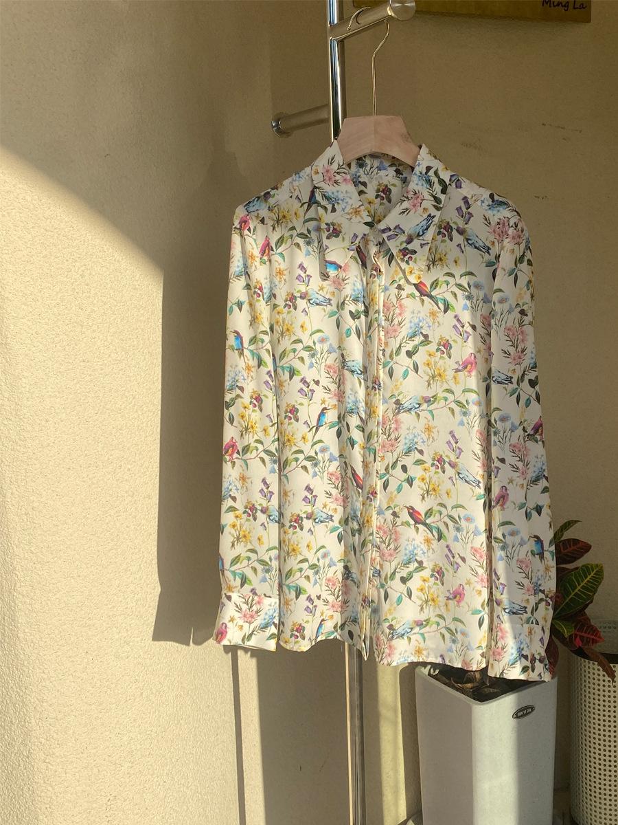 Camisa de Seda para Mujer Primavera y Verano 2024 Diseño de Seda de Morera Top Nicho Ropa Exterior Camisa de Moda Elegante
