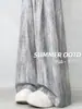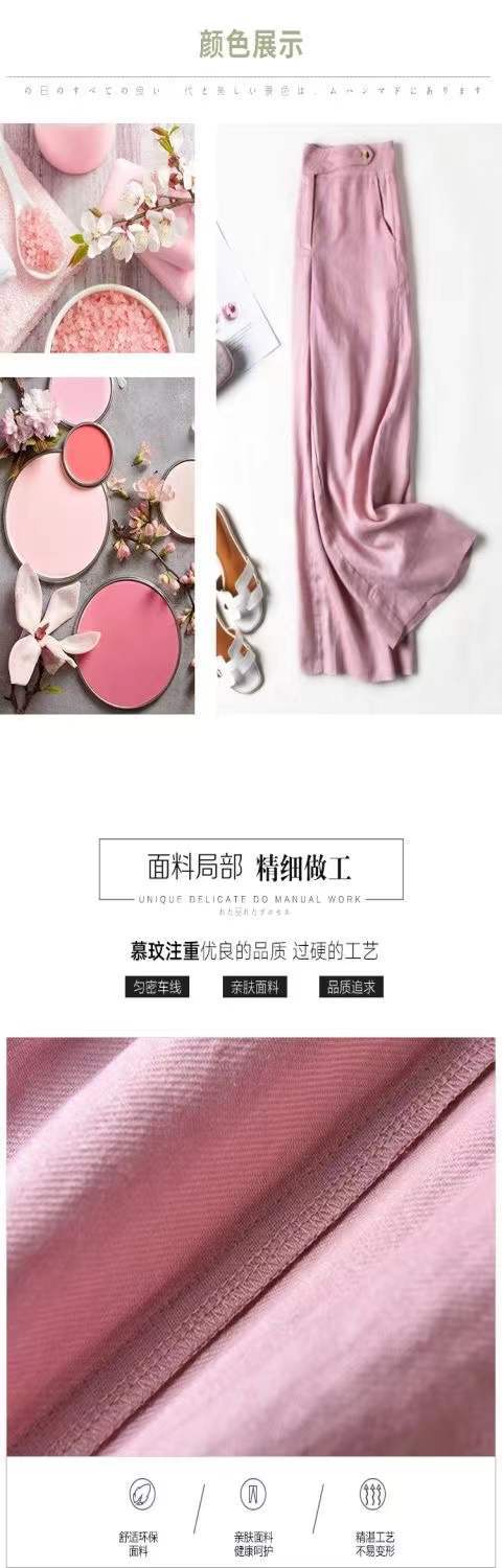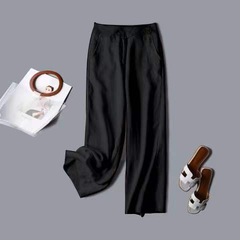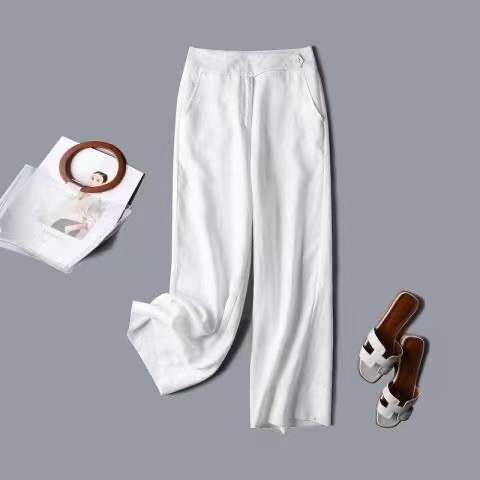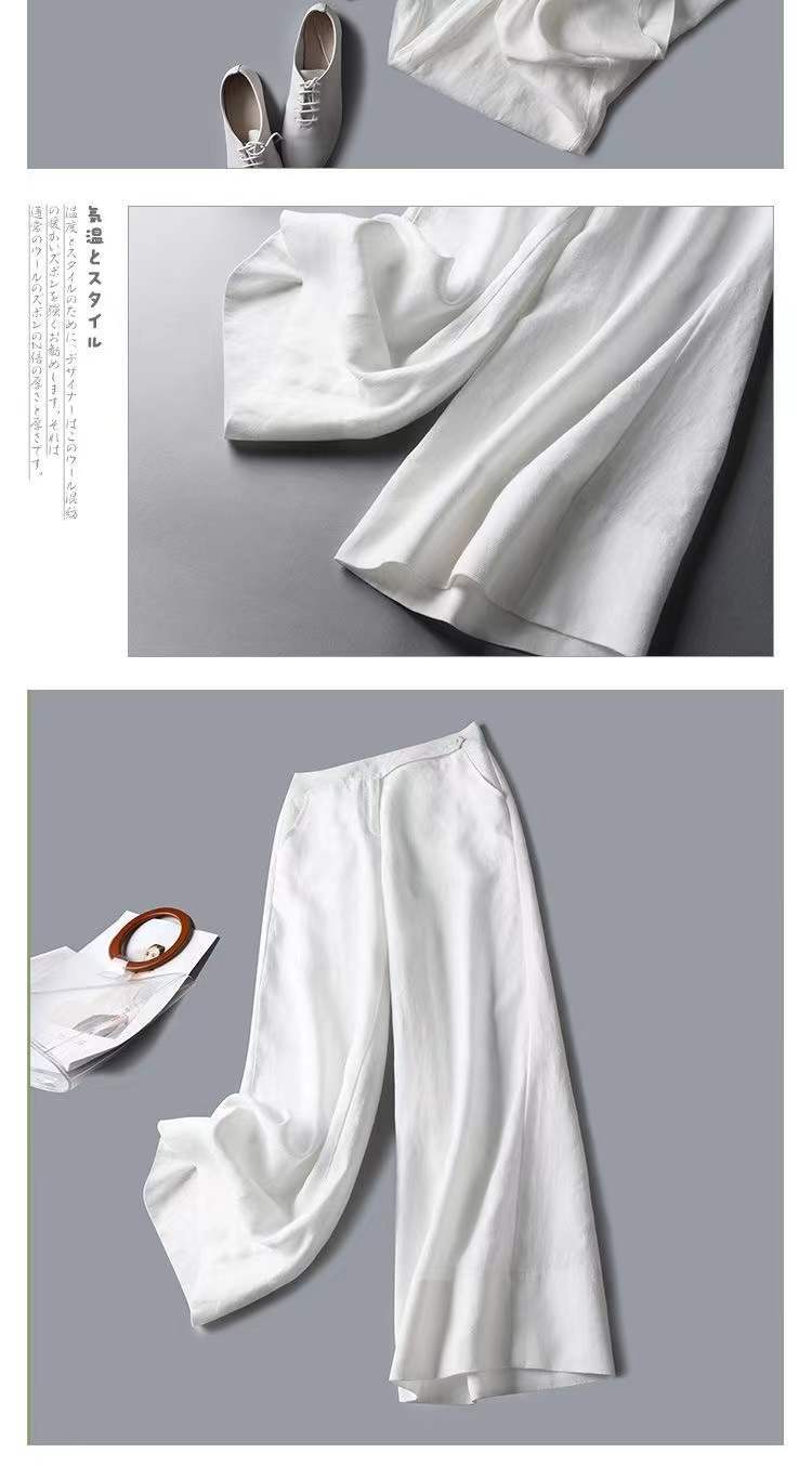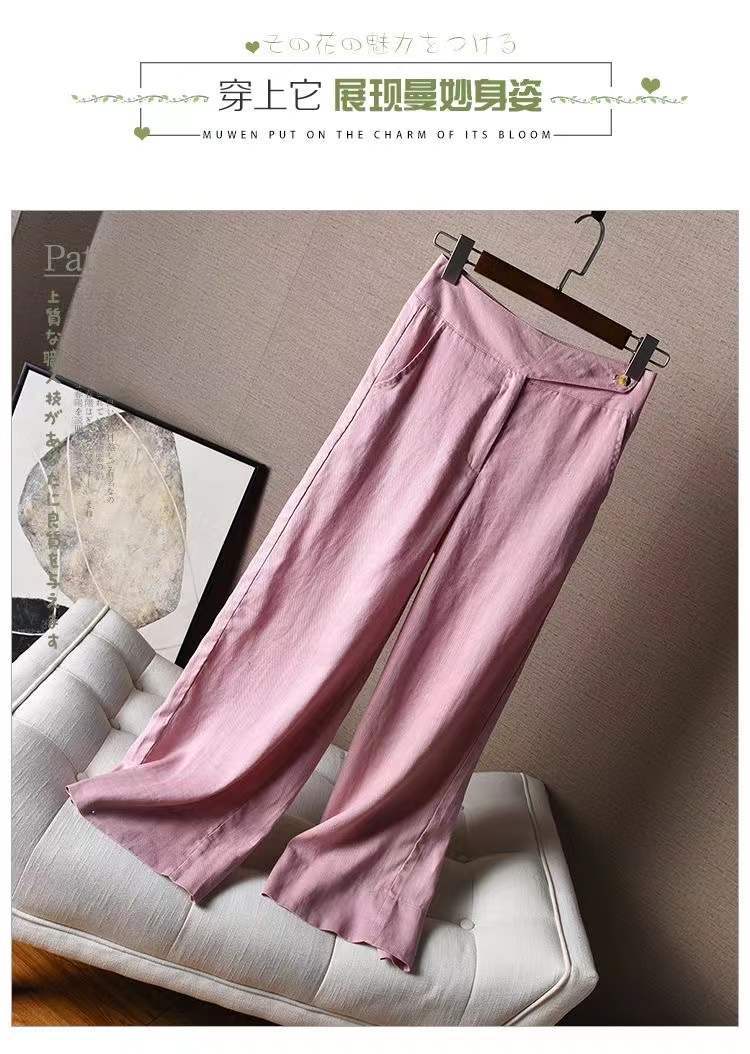 Pantalones de lino con cintura alta y pierna ancha drapeados para mujer, pantalones casuales con colgante, primavera y verano de 2023