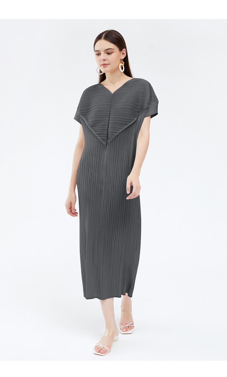 2025 Nuevo Verano para Mujer Falda de Nicho de Manga Corta Vestido Largo con Cuello en V de Corazón Ajustado Color Puro para Mujer Aspecto Adelgazante