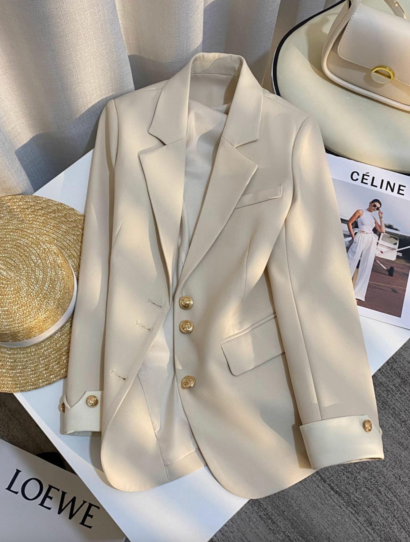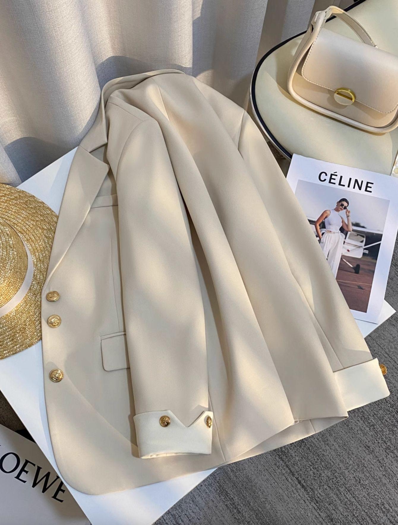 Blazer Beige de Diseño de Alta Gama Nuevo de Primavera 2025 para Mujer Estilo Coreano Marca Grande para Viajes Casual