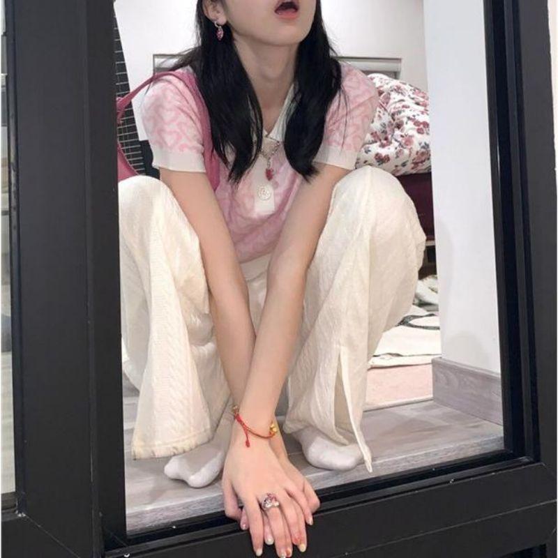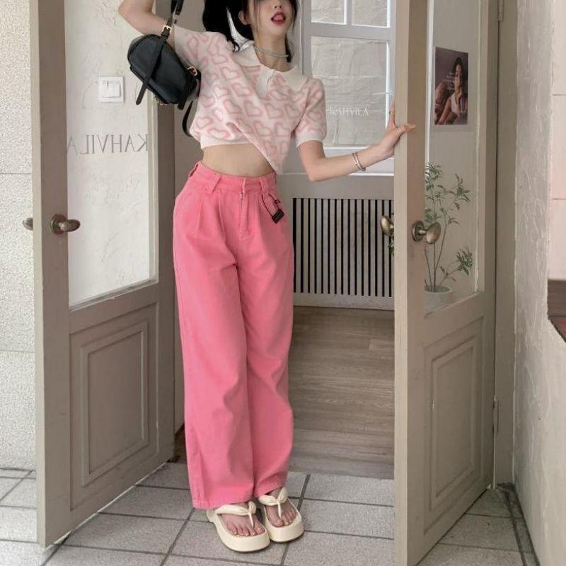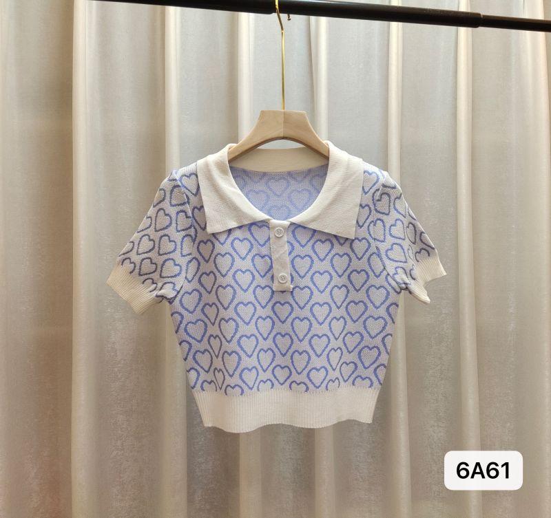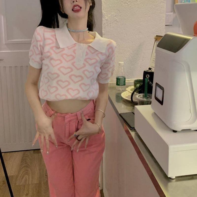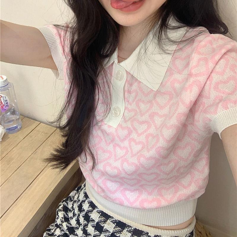 Nueva Camisa de Verano de Manga Corta para Mujer con Diseño de Corazón, Top de Punto, Top Corto Trendy con Cuello Polo