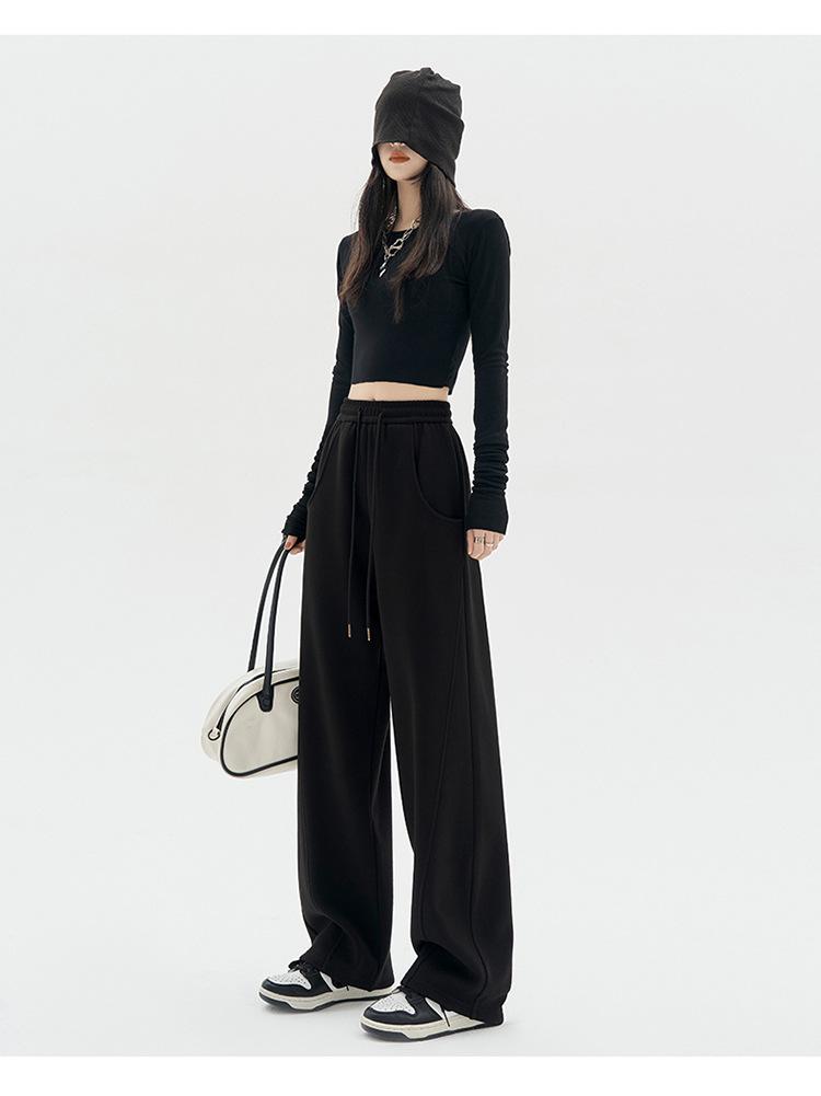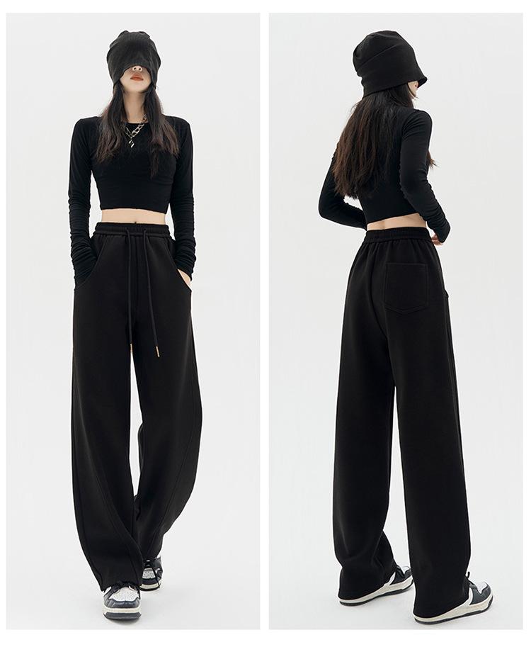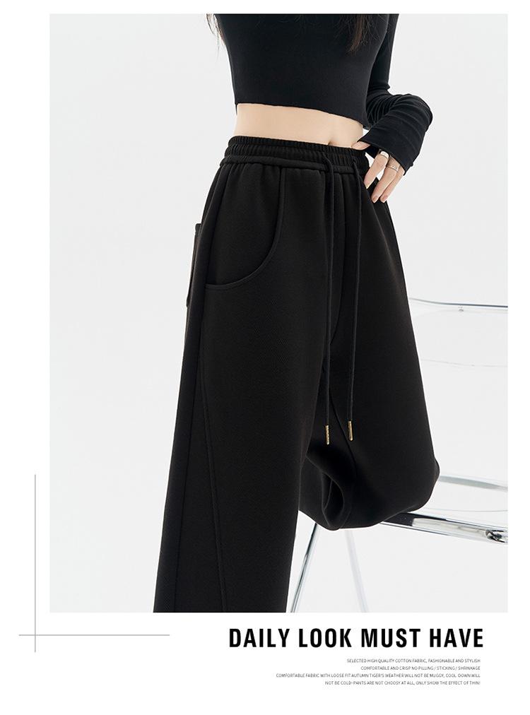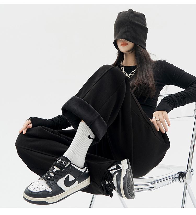 Pantalones Banana para Mujer Primavera y Otoño 2025 Nuevos Pantalones Deportivos Casuales de Gama Alta Rectos Negros Deportivos Estrechos de Pierna Ancha