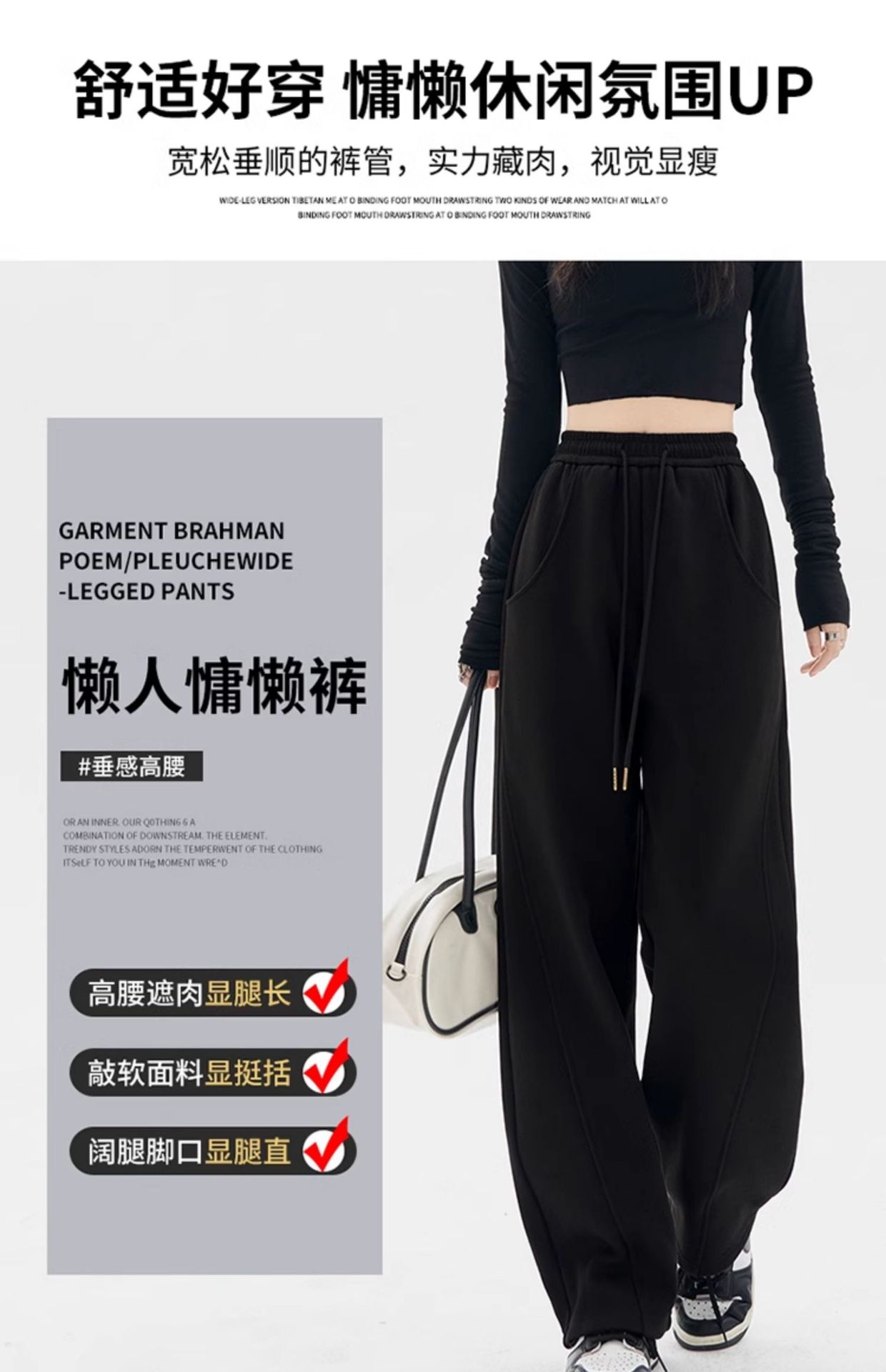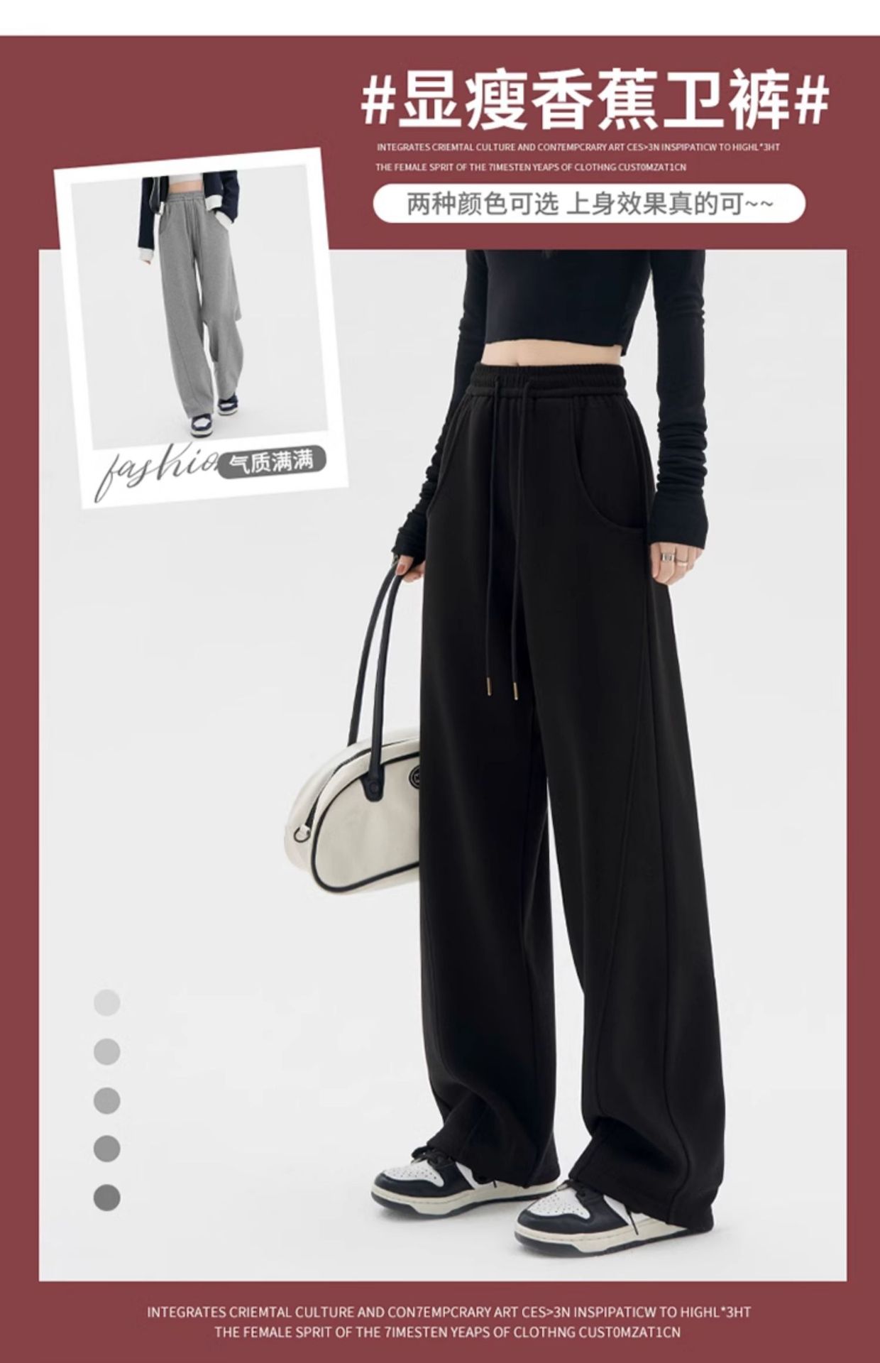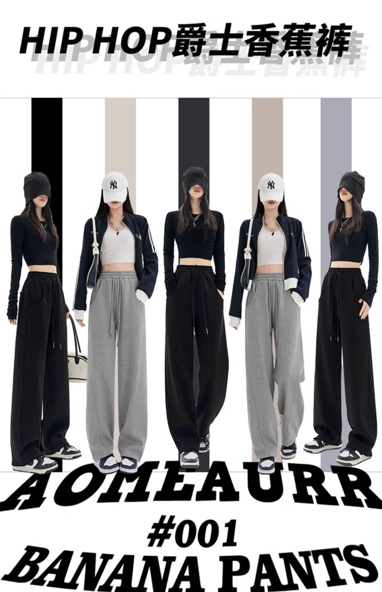 Pantalones Banana para Mujer Primavera y Otoño 2025 Nuevos Pantalones Deportivos Casuales de Gama Alta Rectos Negros Deportivos Estrechos de Pierna Ancha