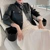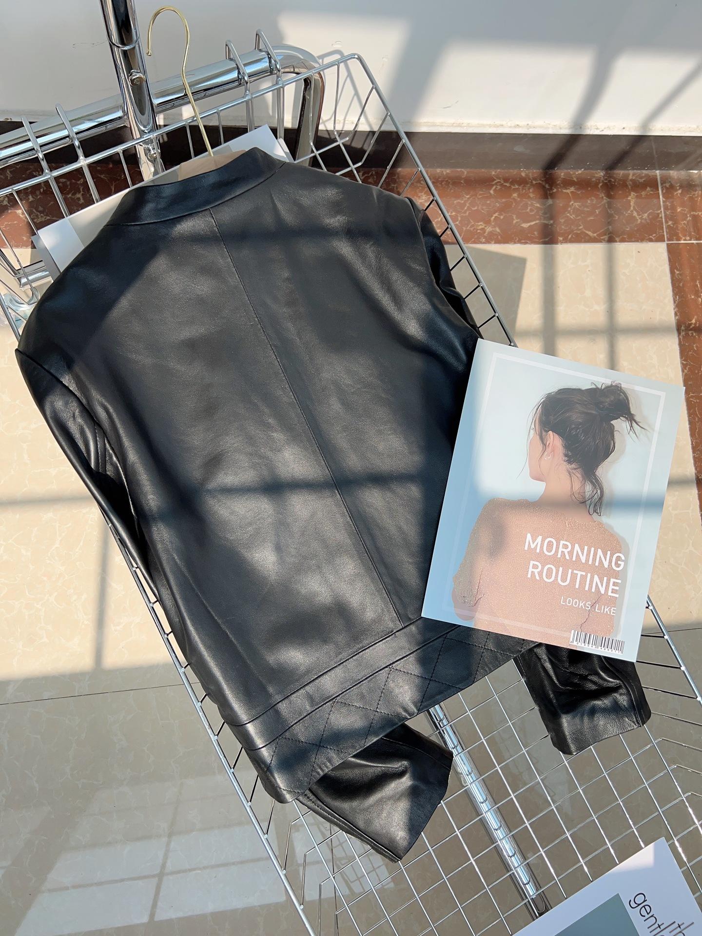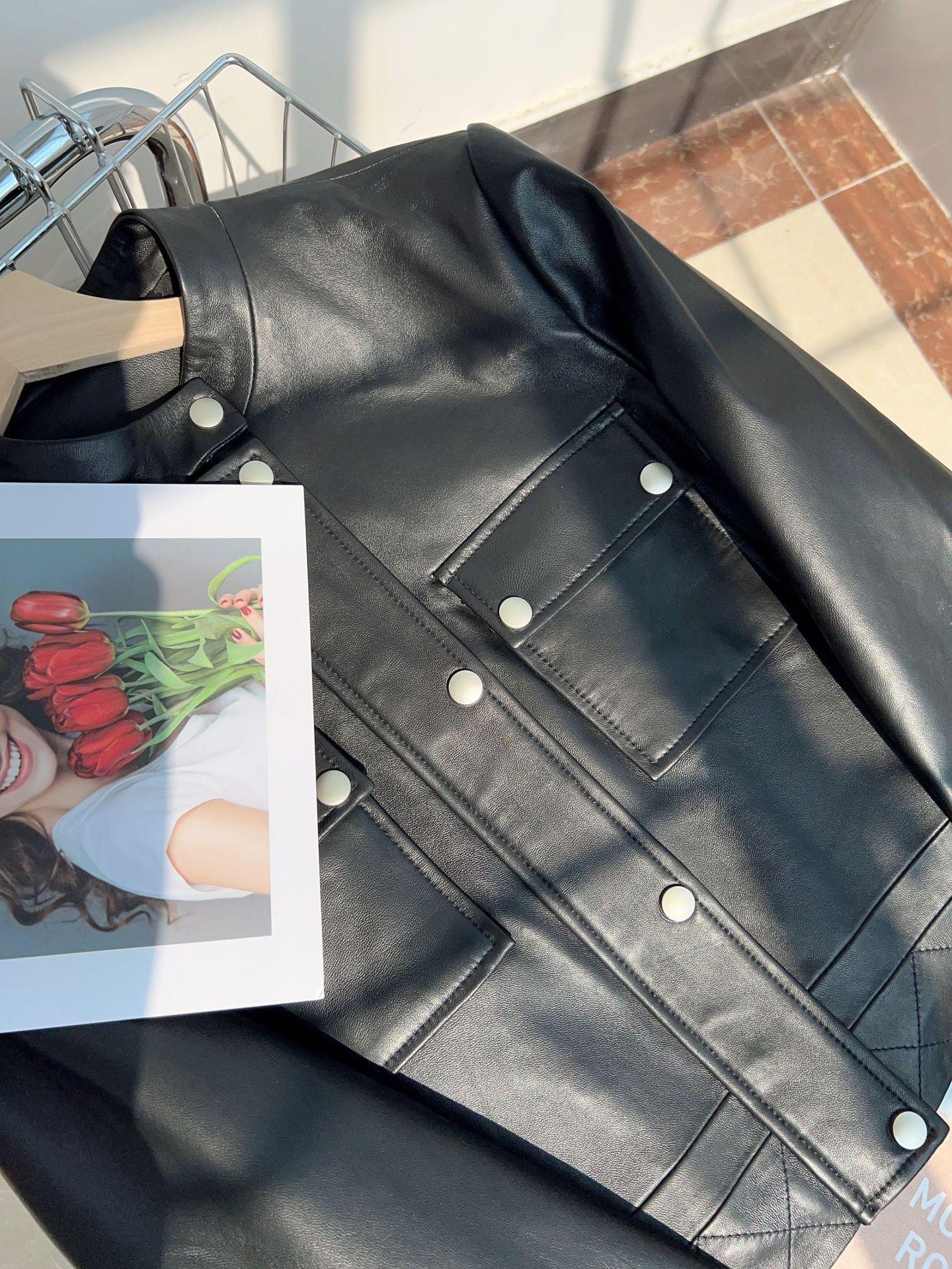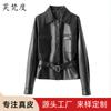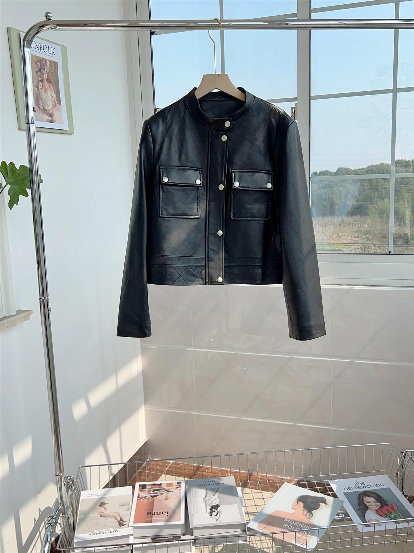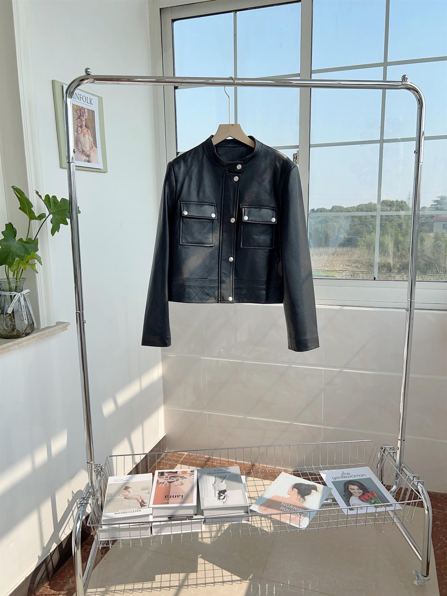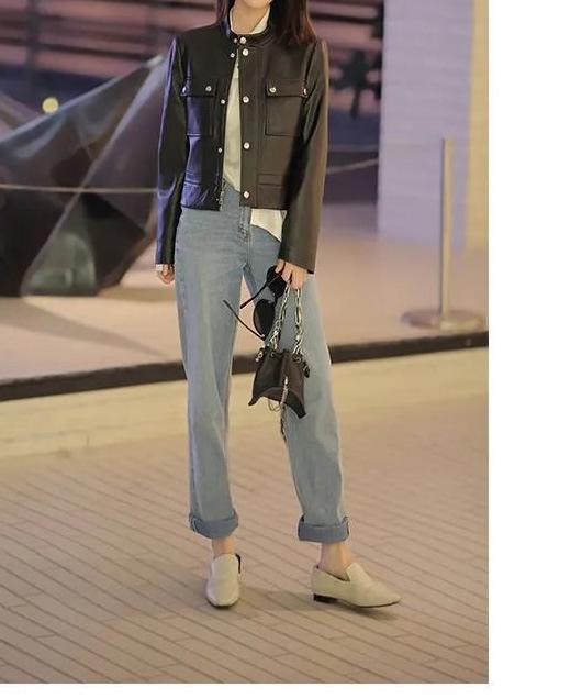 2025 Primavera Nuevo Pequeño Corto Cuello Mao Chaqueta de Cuero Genuino para Mujer Chaqueta de Piel de Oveja Otoño Guapo Chaqueta de Motociclista