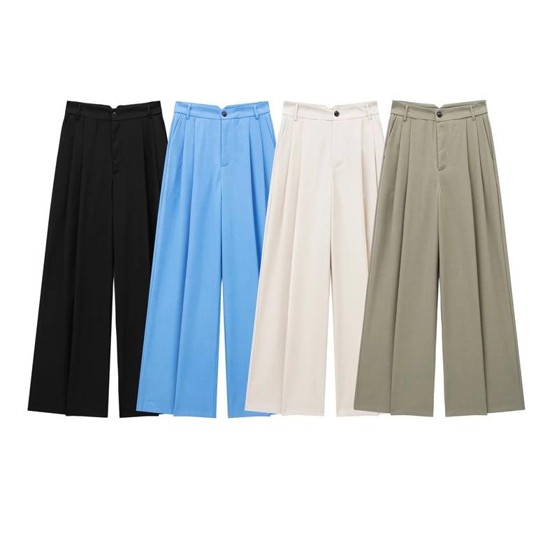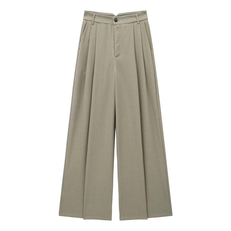 Pantalones de traje plisados con cintura alta y pierna ancha, novedad de verano 2024, pantalones casuales rectos de estilo urbano que combinan con todo, A67614