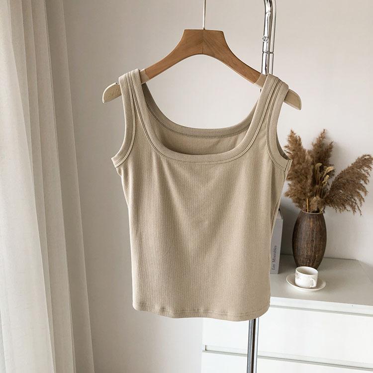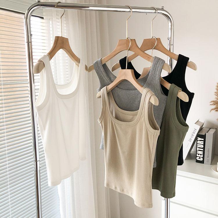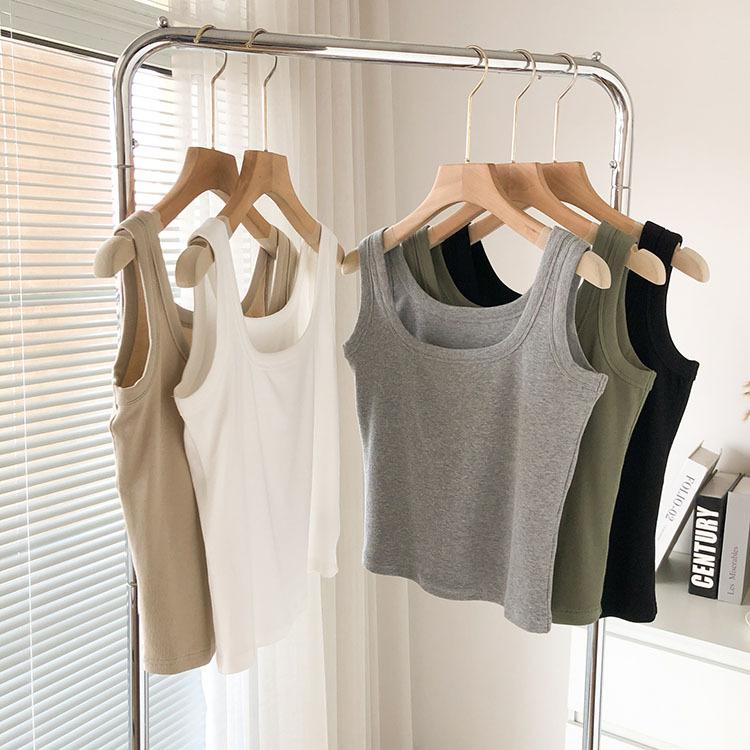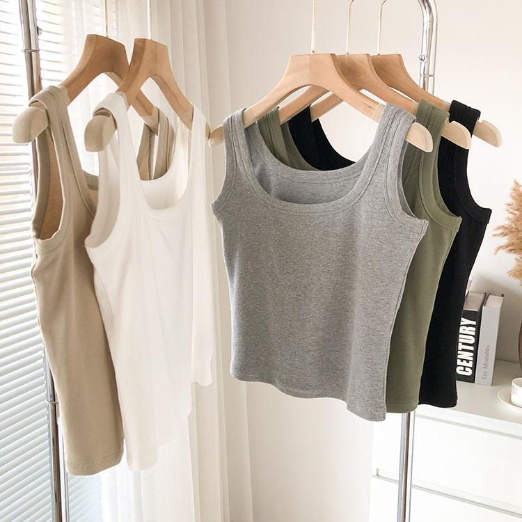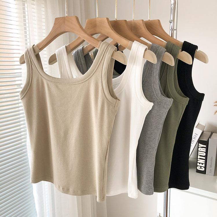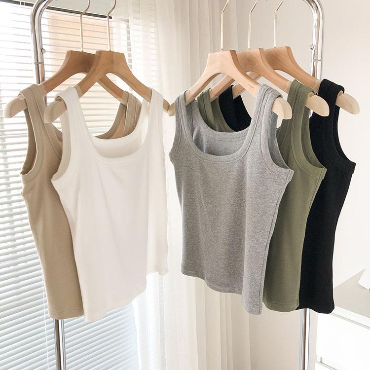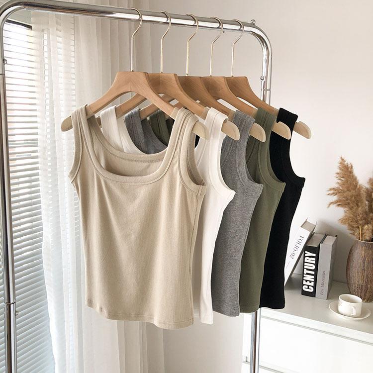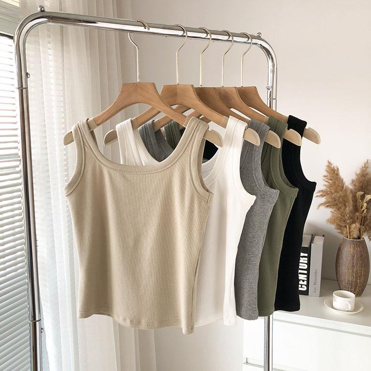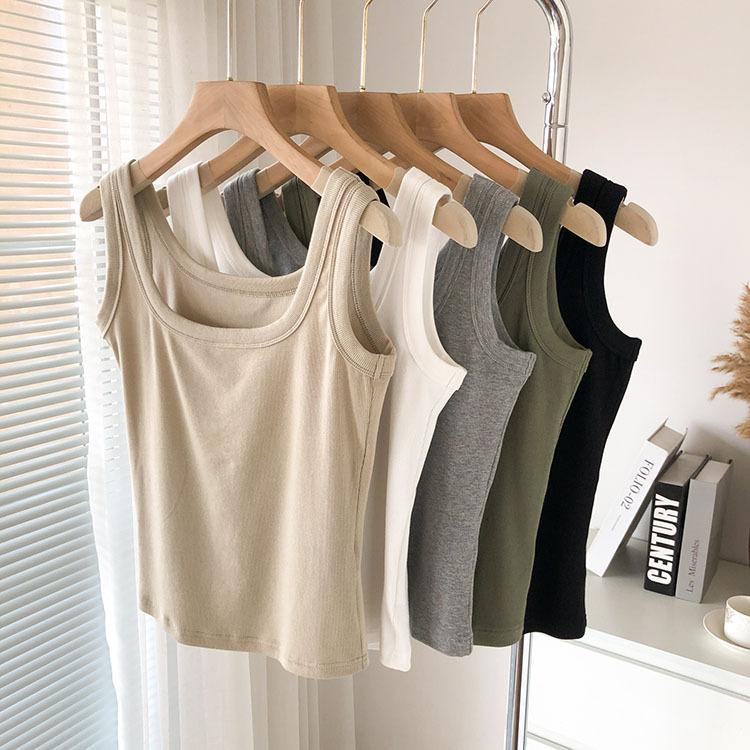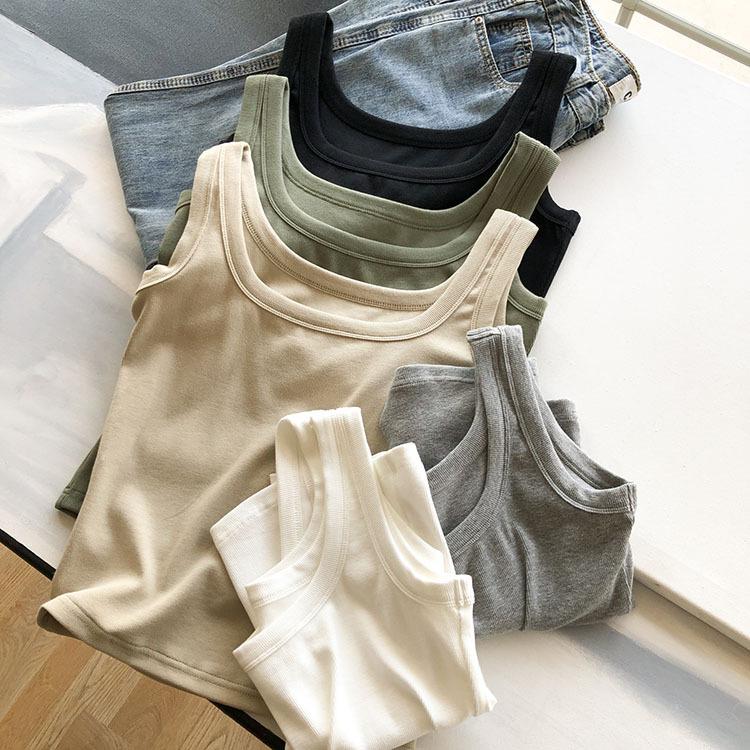 Compra Verano Anti-Exposición Sin Mangas Ropa Interior Elástica Acanalada Camiseta de Tirantes Algodón Base Corta Cuello Cuadrado Camisola Top para Mujer Venta al por Mayor al por mayor en Joom.pro