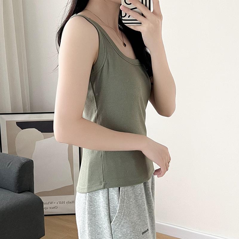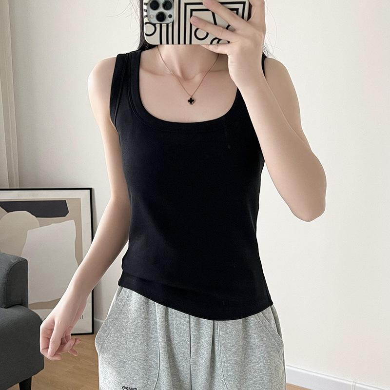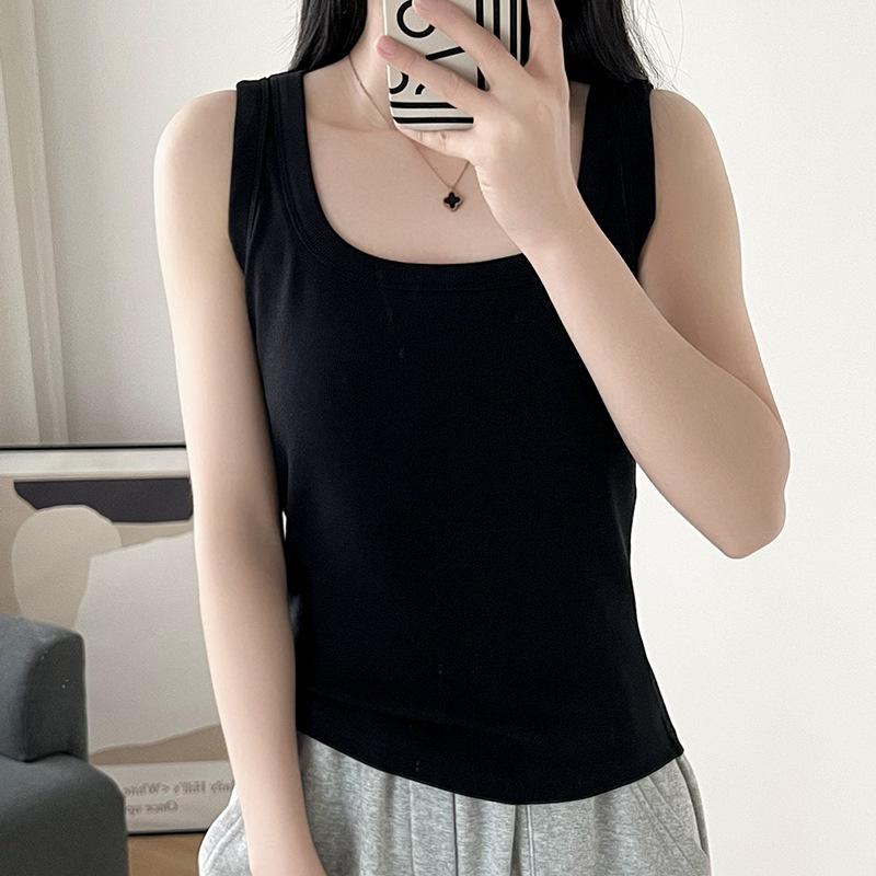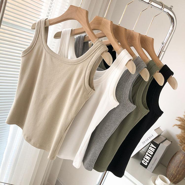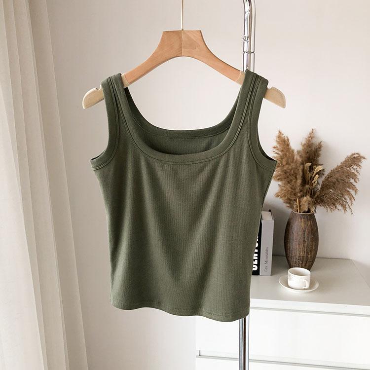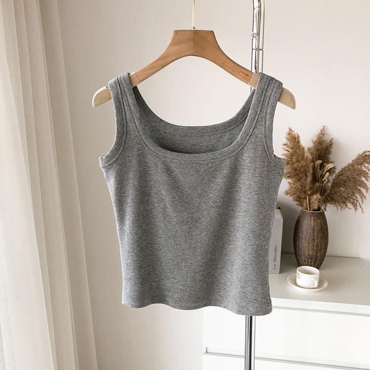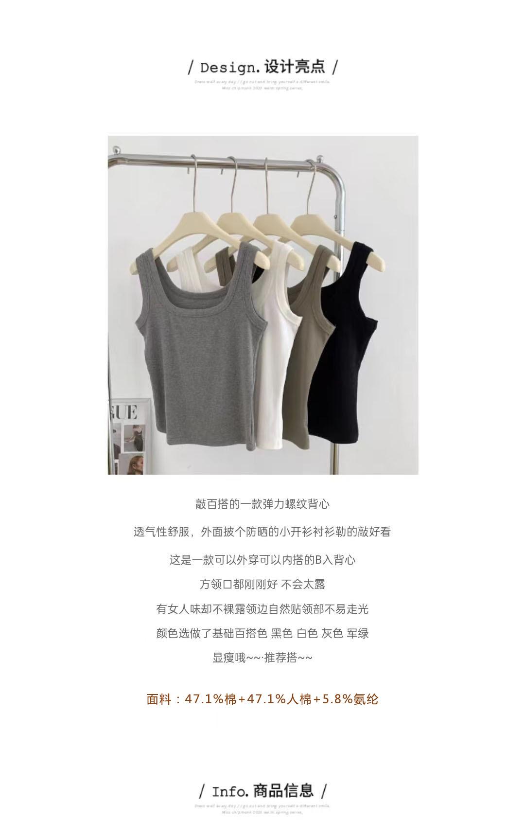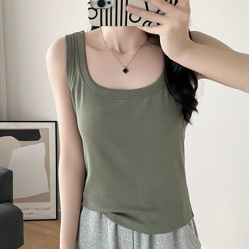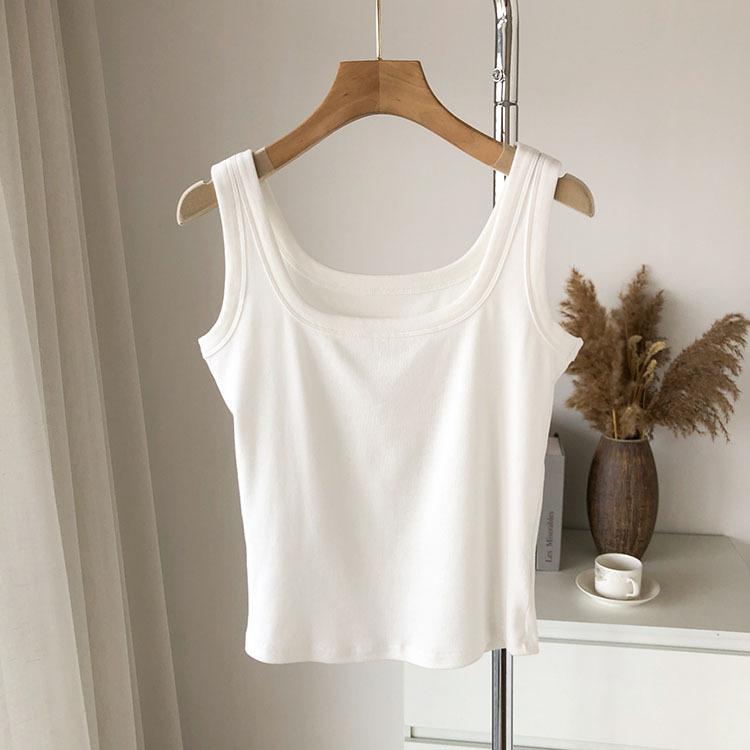 Compra Verano Anti-Exposición Sin Mangas Ropa Interior Elástica Acanalada Camiseta de Tirantes Algodón Base Corta Cuello Cuadrado Camisola Top para Mujer Venta al por Mayor al por mayor en Joom.pro