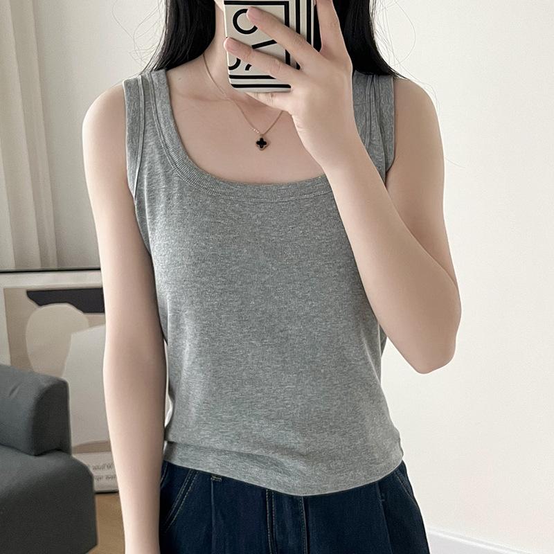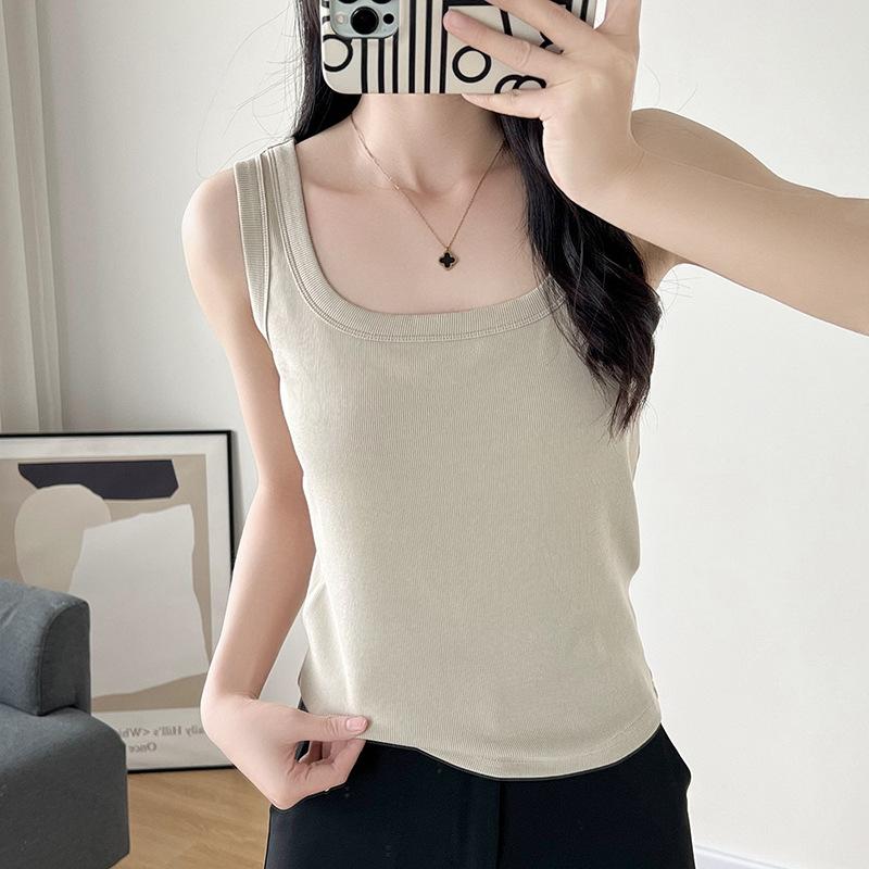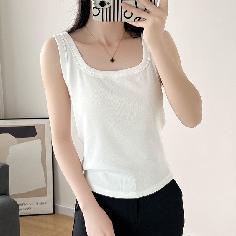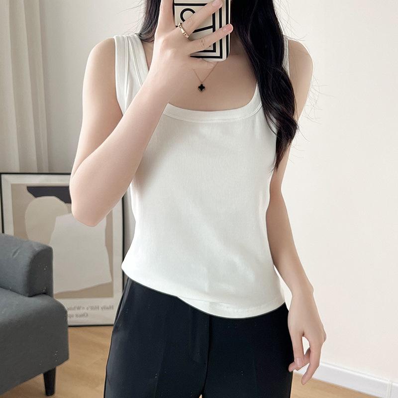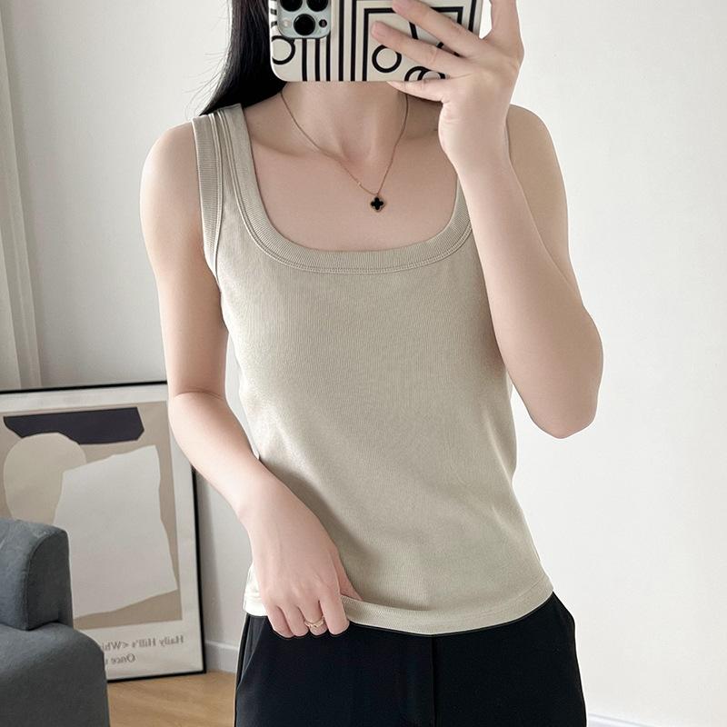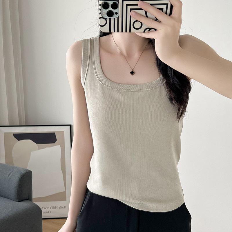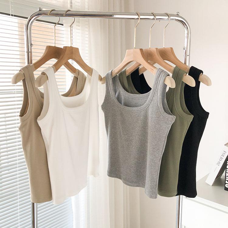 Verano Anti-Exposición Sin Mangas Ropa Interior Elástica Acanalada Camiseta de Tirantes Algodón Base Corta Cuello Cuadrado Camisola Top para Mujer Venta al por Mayor