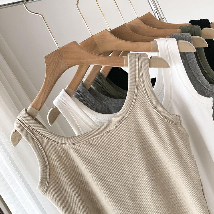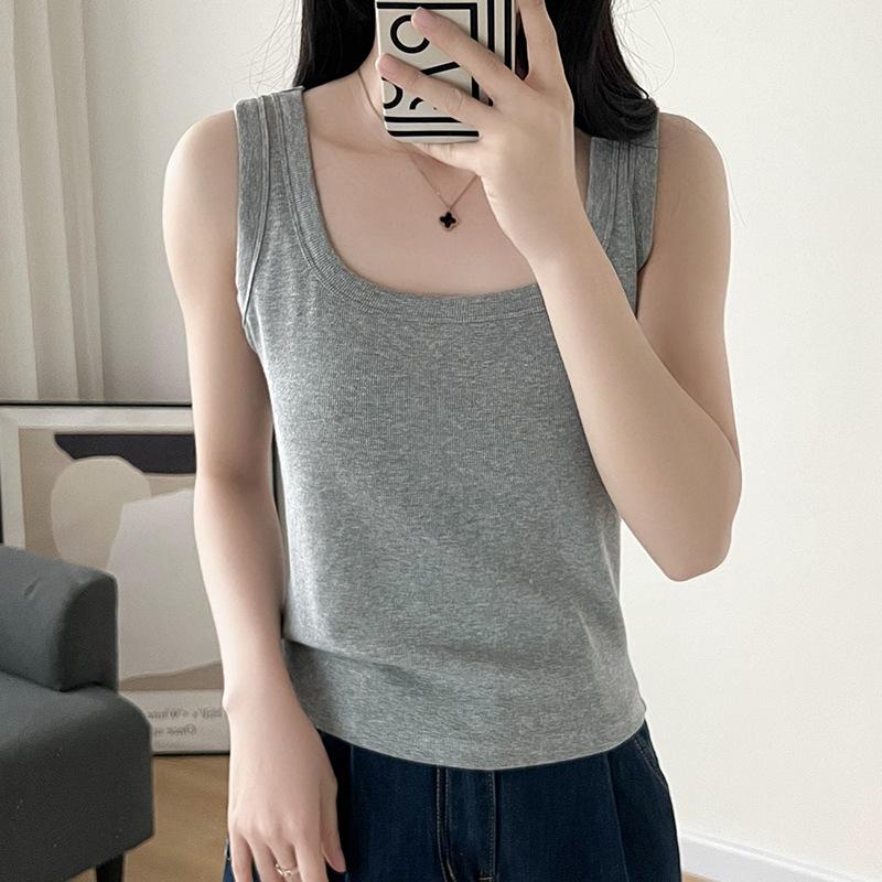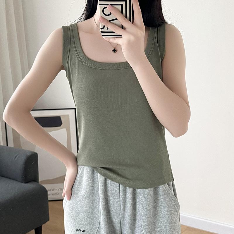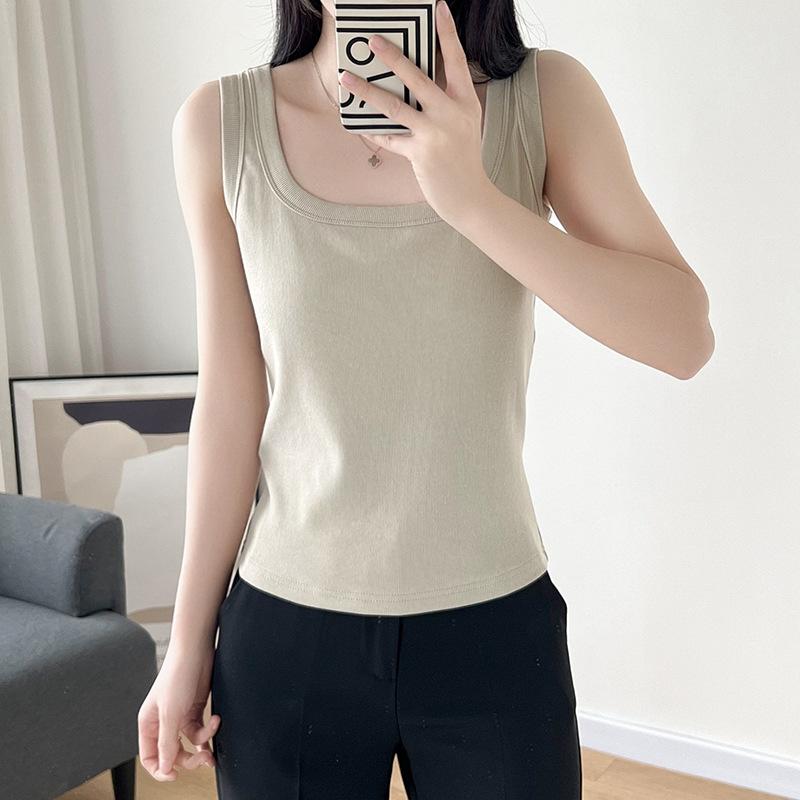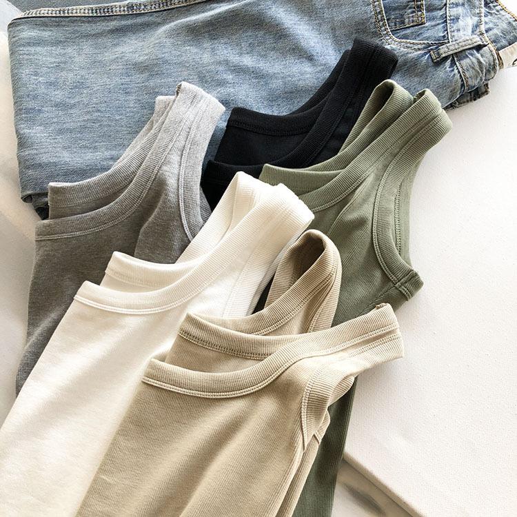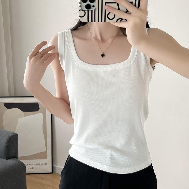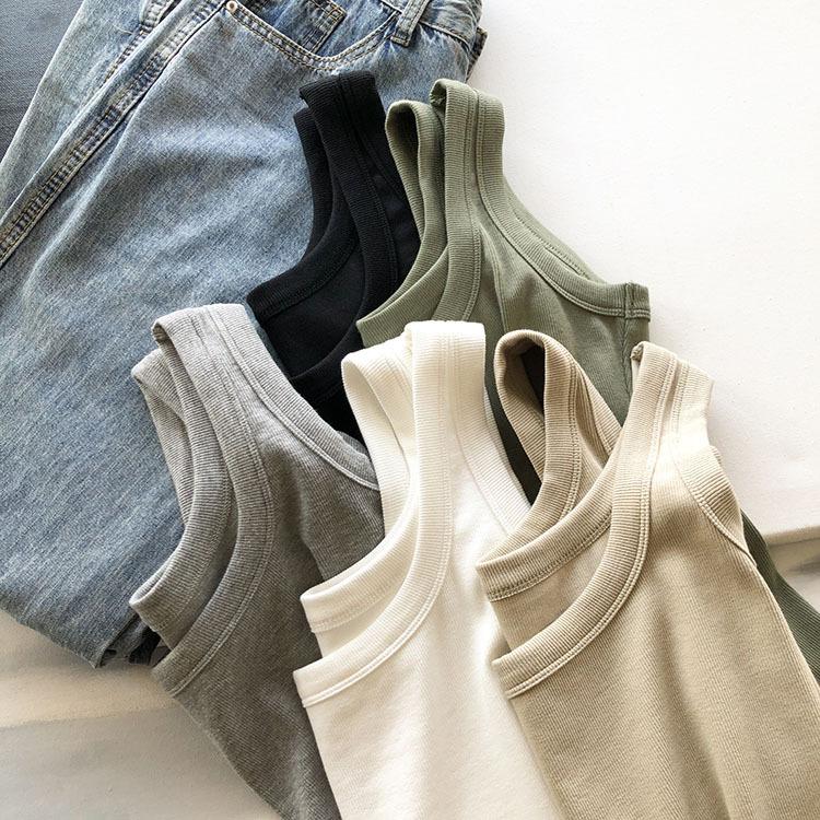 Verano Anti-Exposición Sin Mangas Ropa Interior Elástica Acanalada Camiseta de Tirantes Algodón Base Corta Cuello Cuadrado Camisola Top para Mujer Venta al por Mayor