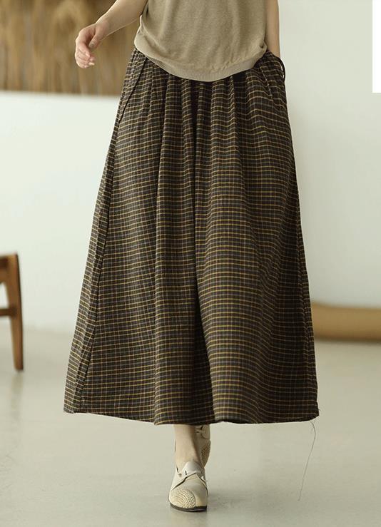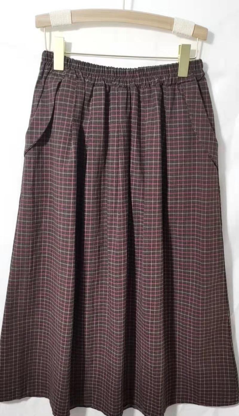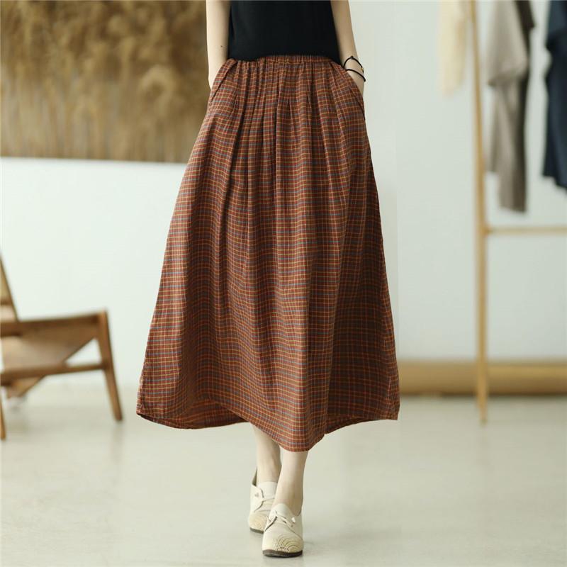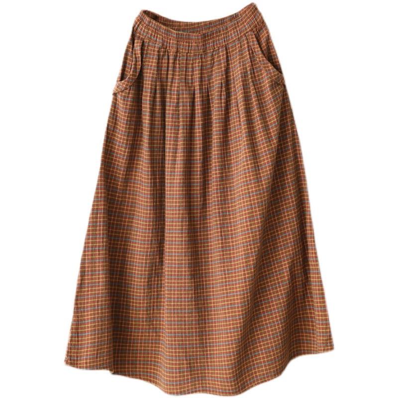 Falda Escocesa Retro para Mujer 2024 Nueva de Principios de Primavera Elástica Cintura Alta Algodón y Lino Falda Línea A