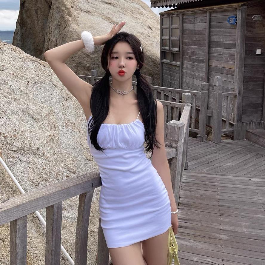 Buenos días Fanfan Falda blanca sin espalda para mujer Vestido sexy de Spice Girl Falda ajustada a la cadera