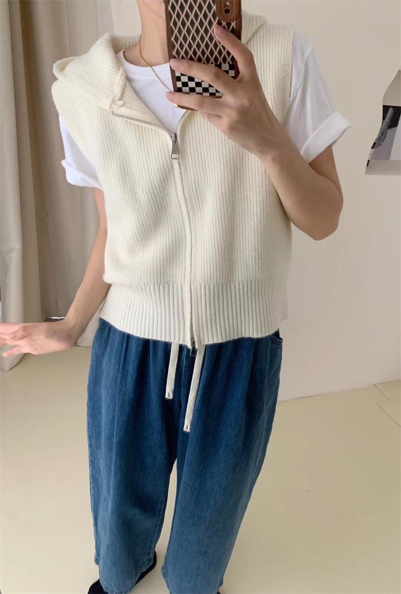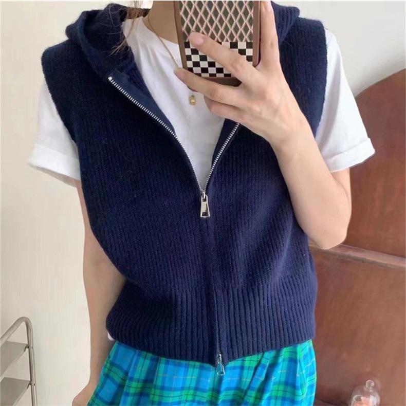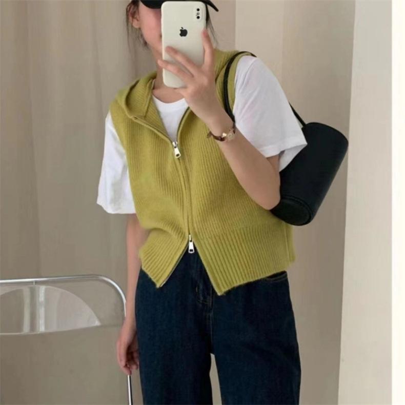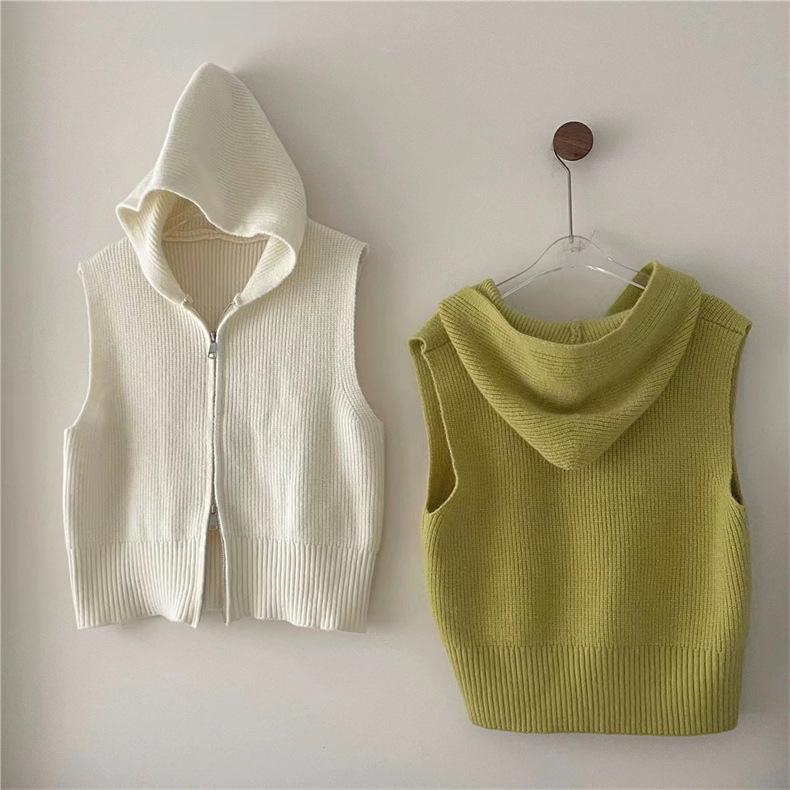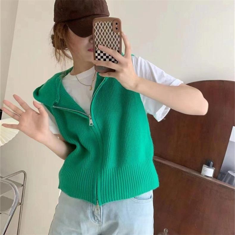 Chaleco de punto con capucha, nuevo cárdigan con cremallera, prenda exterior corta para mujer, chaleco holgado, suéter sin mangas, abrigo, top para mujer