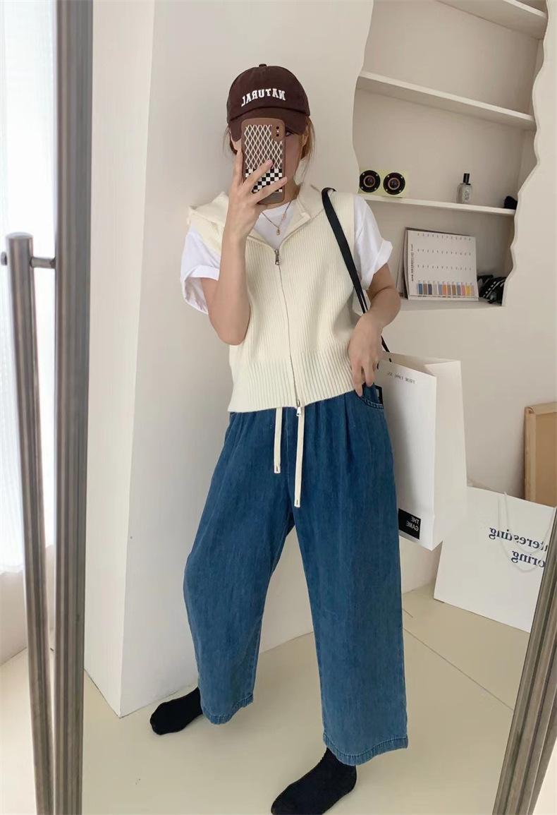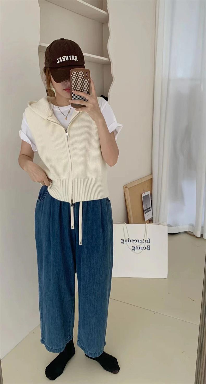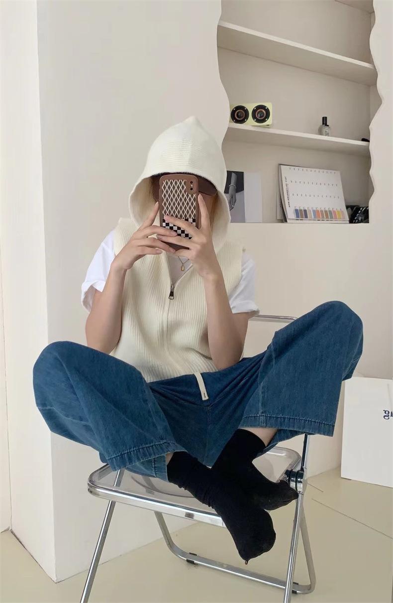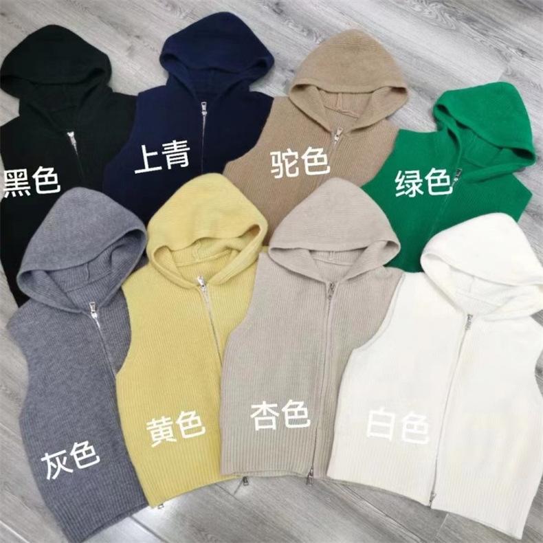 Chaleco de punto con capucha, nuevo cárdigan con cremallera, prenda exterior corta para mujer, chaleco holgado, suéter sin mangas, abrigo, top para mujer