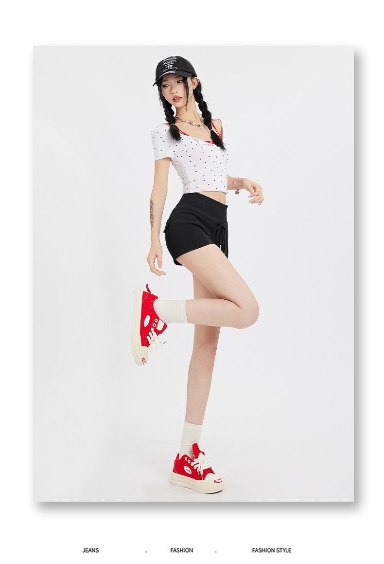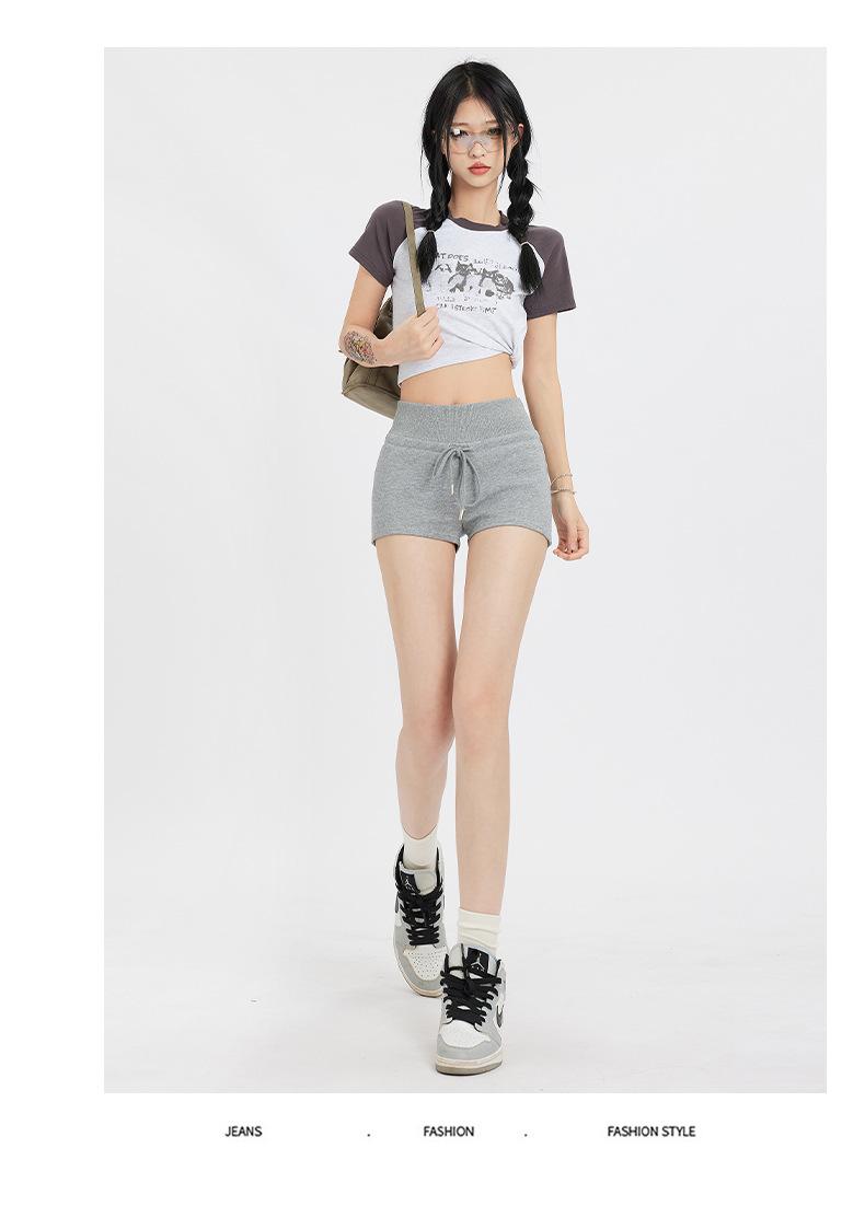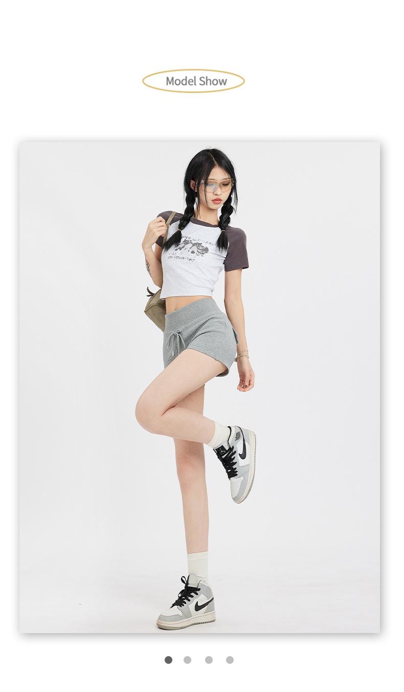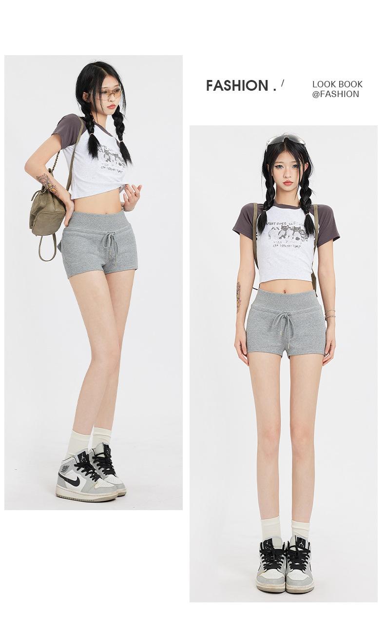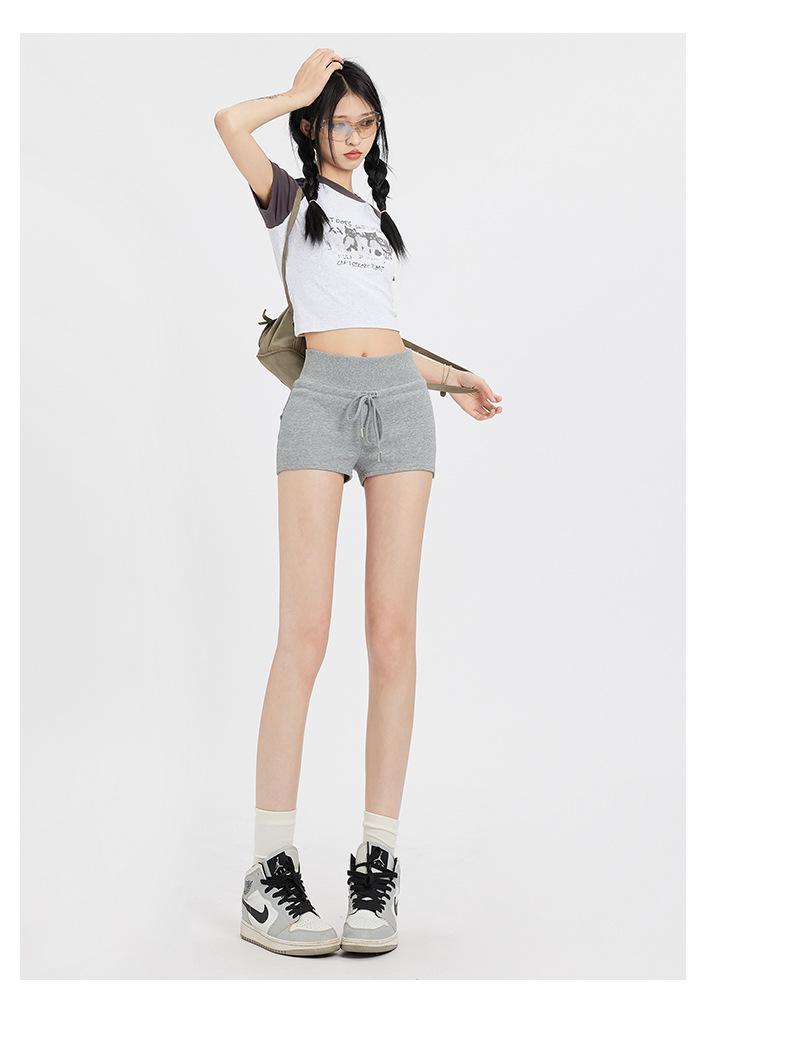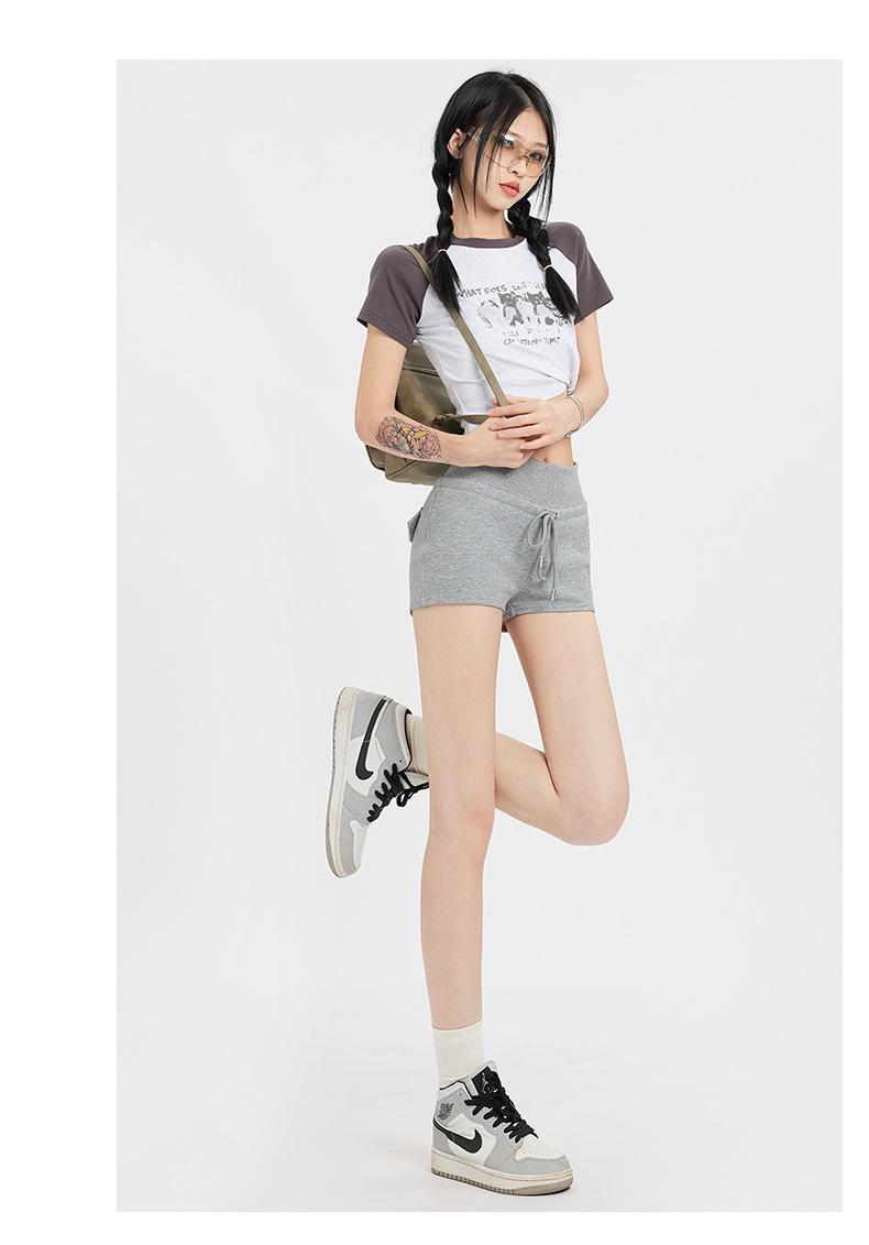 Naranja Joven# Americana Calle Principal Chica Caliente Shorts Deportivos para Mujer Cintura Alta Adelgazantes Diseño Simple Combinan con Todo Casual Pantalones Cortos Calientes Trendy
