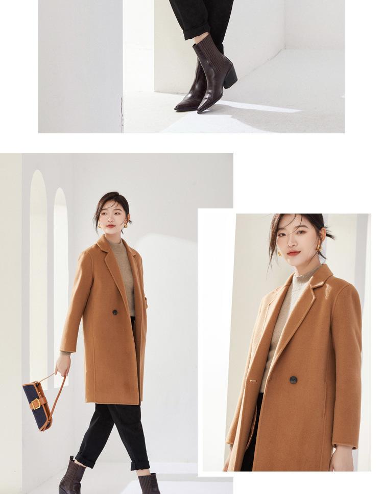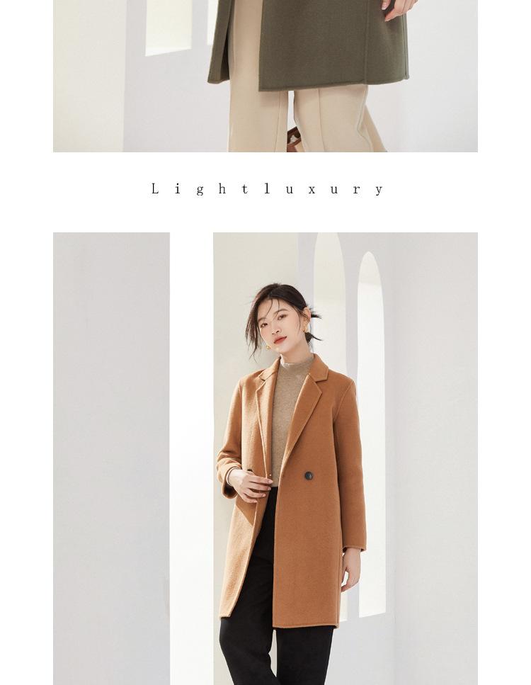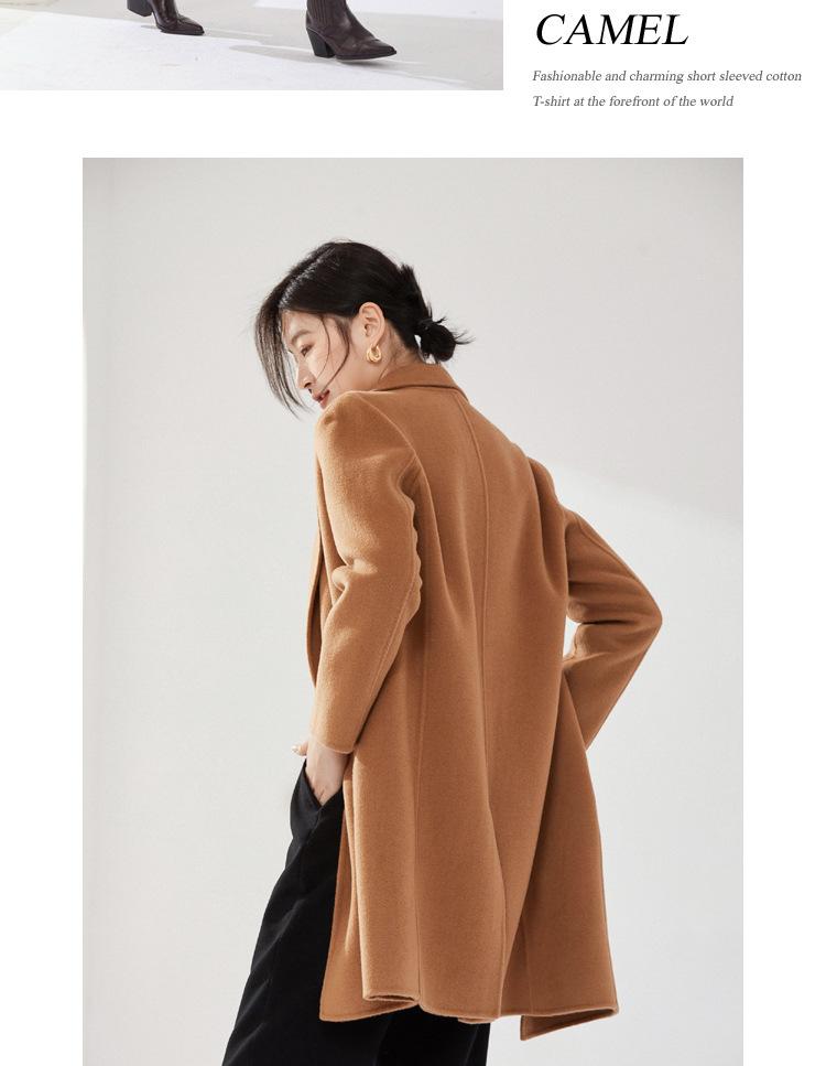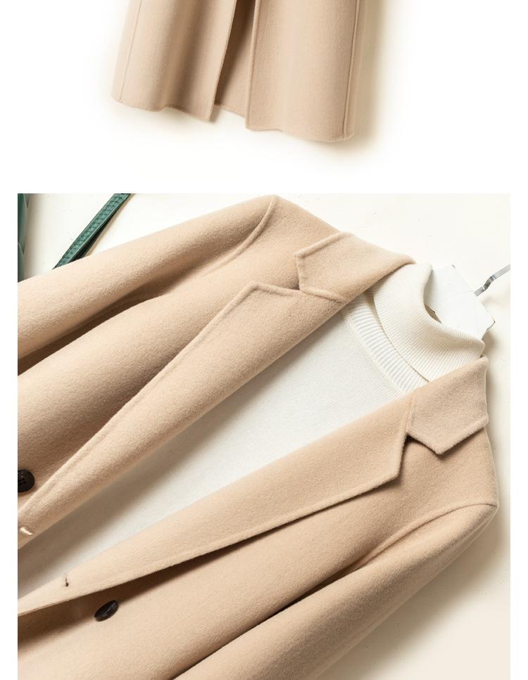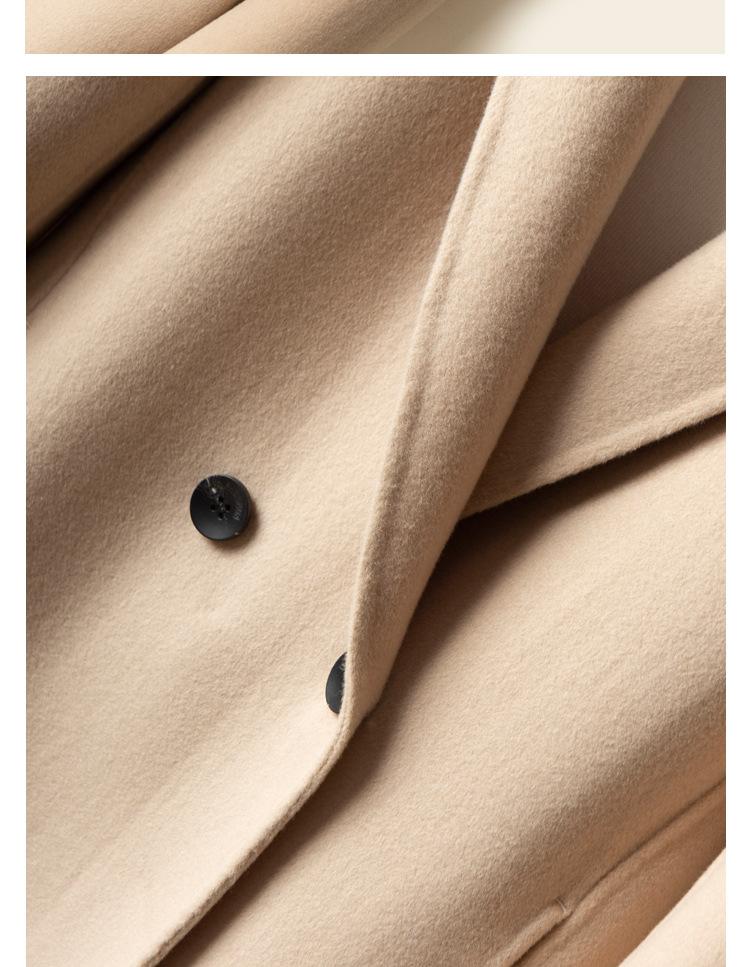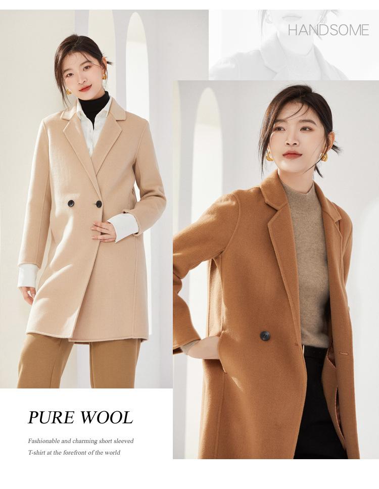 Nuevo Abrigo de Cachemira de Doble Cara de Largo Medio y Corte Slim para Mujer, Color Camello, con Cuello Tipo Traje de Doble Botonadura, Abrigo de Lana