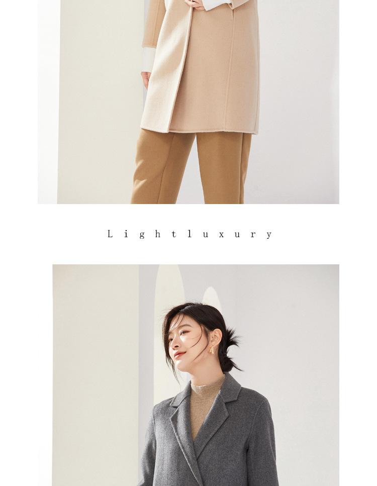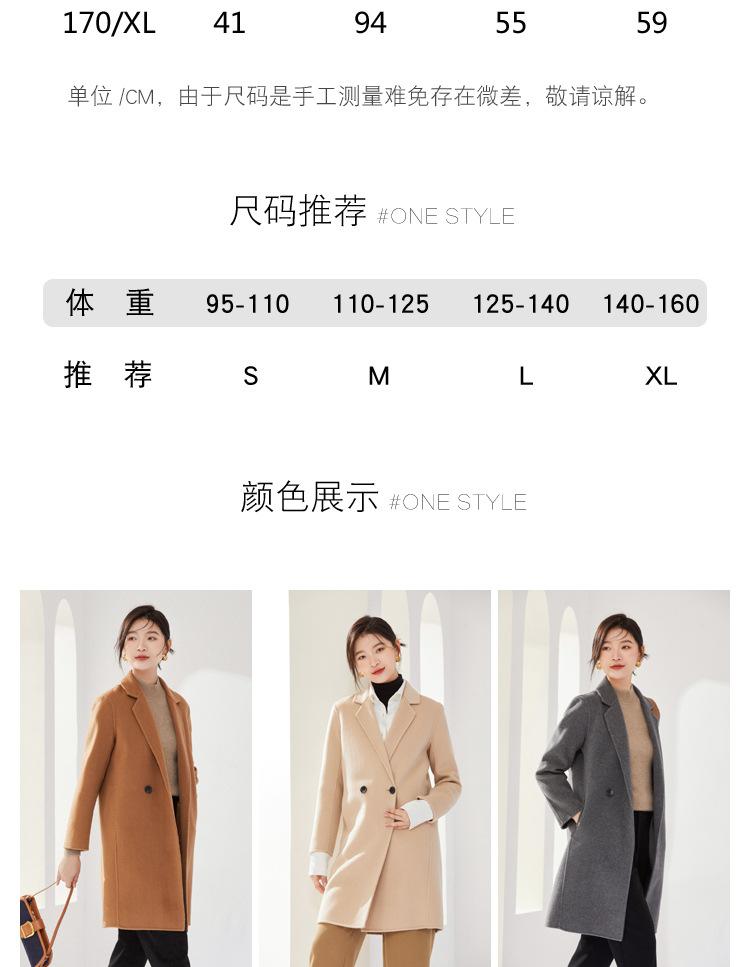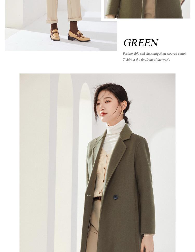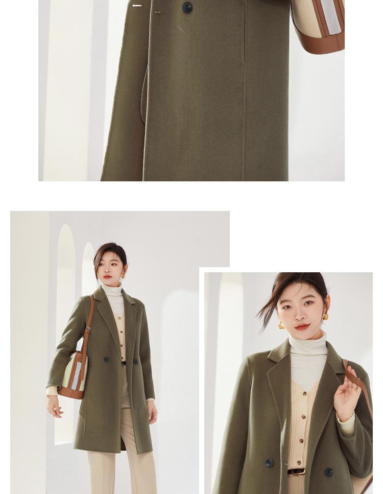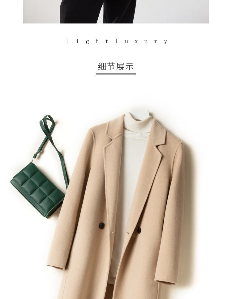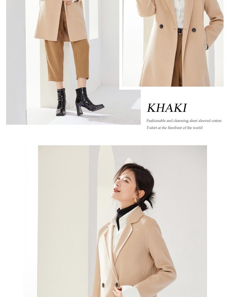 Nuevo Abrigo de Cachemira de Doble Cara de Largo Medio y Corte Slim para Mujer, Color Camello, con Cuello Tipo Traje de Doble Botonadura, Abrigo de Lana