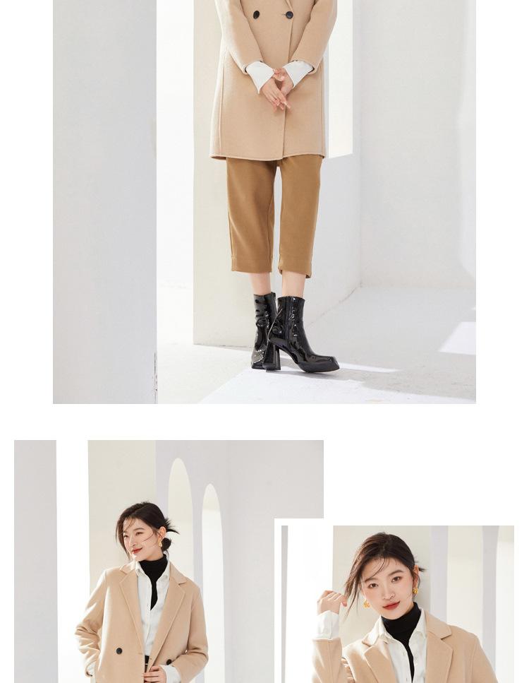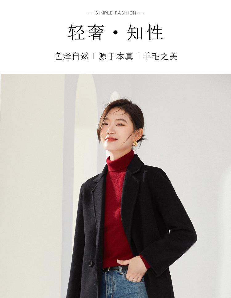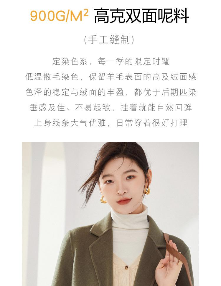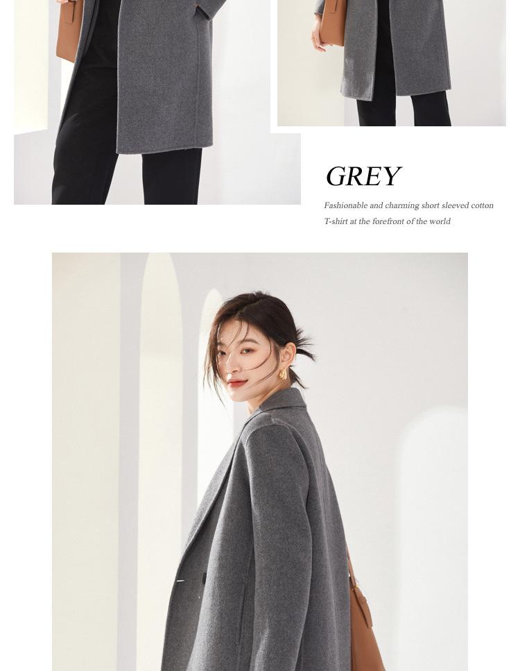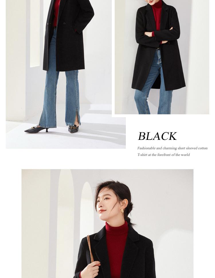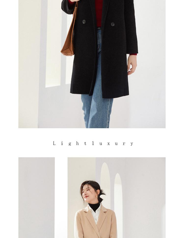 Nuevo Abrigo de Cachemira de Doble Cara de Largo Medio y Corte Slim para Mujer, Color Camello, con Cuello Tipo Traje de Doble Botonadura, Abrigo de Lana