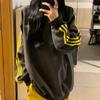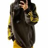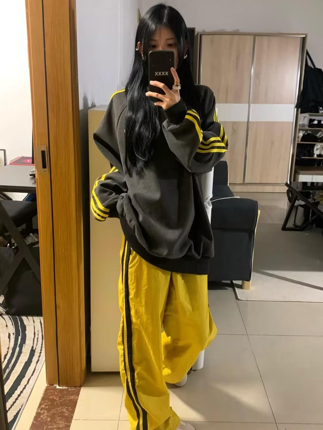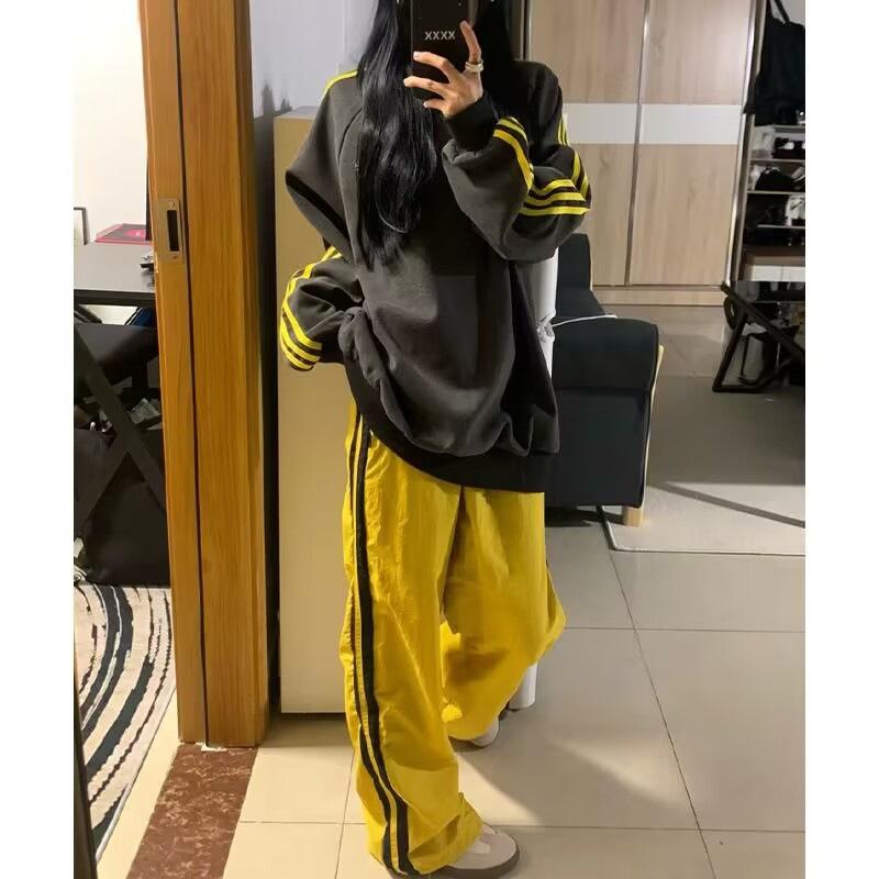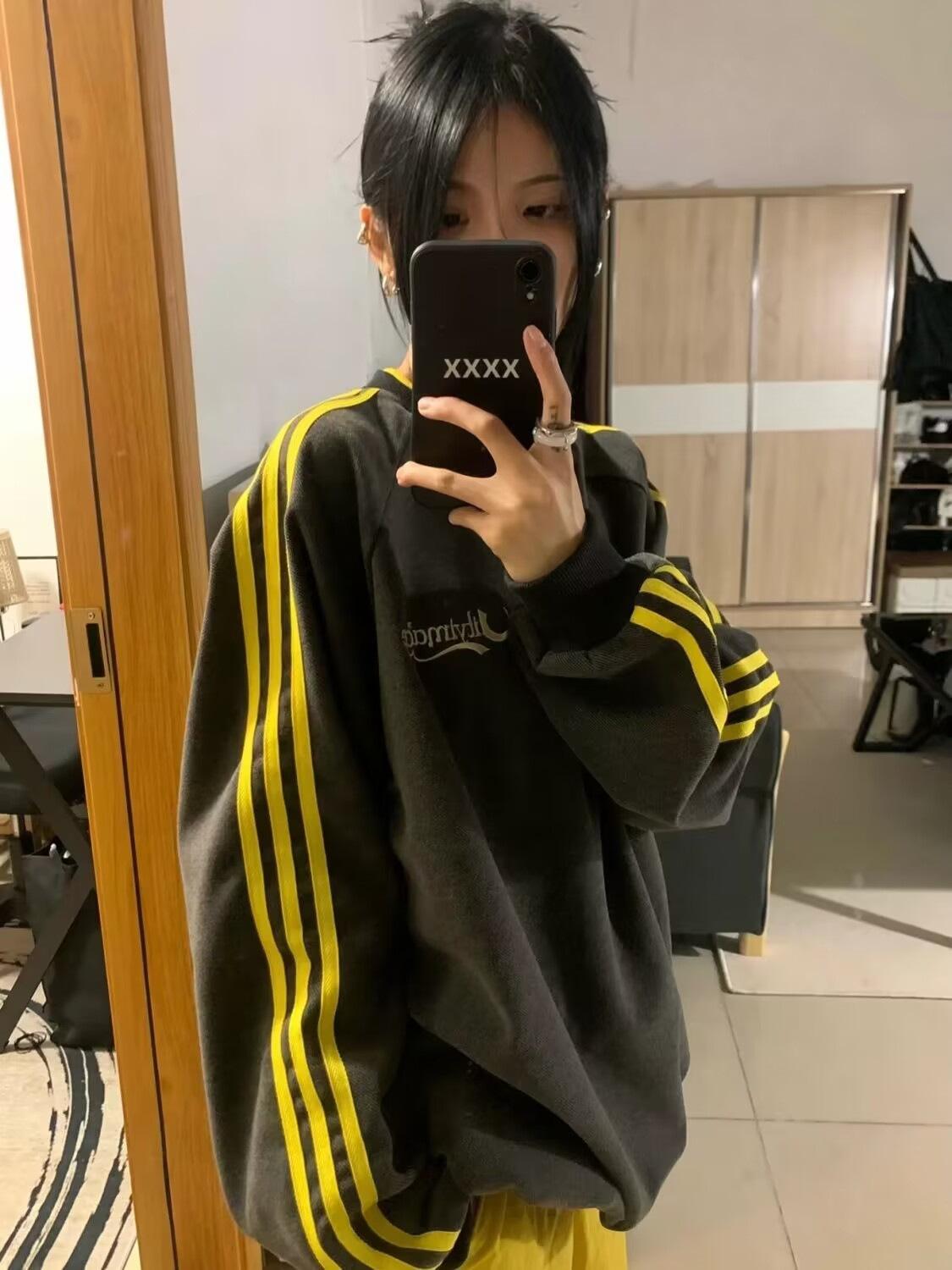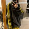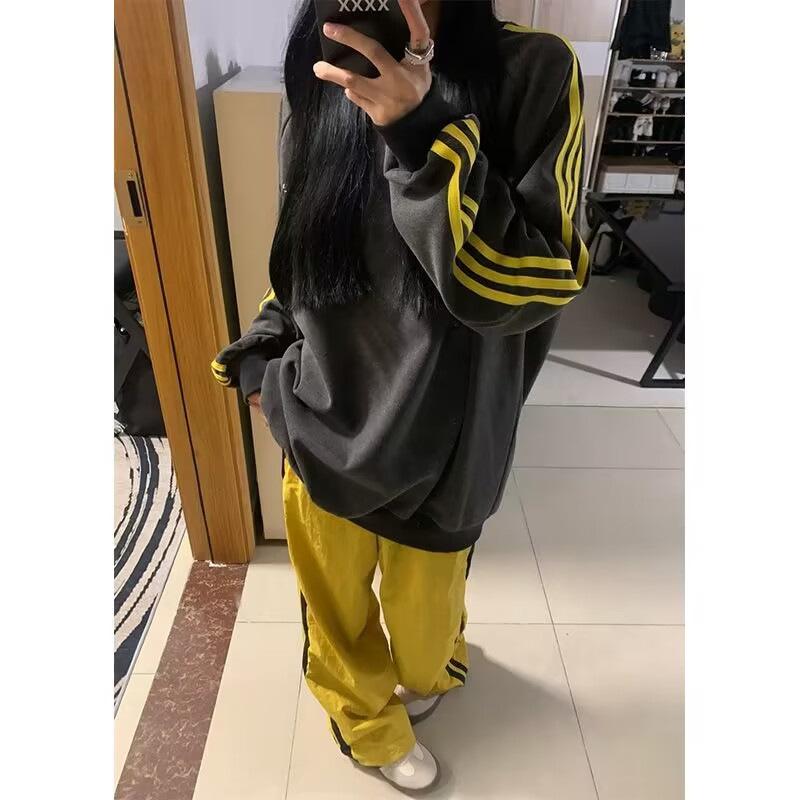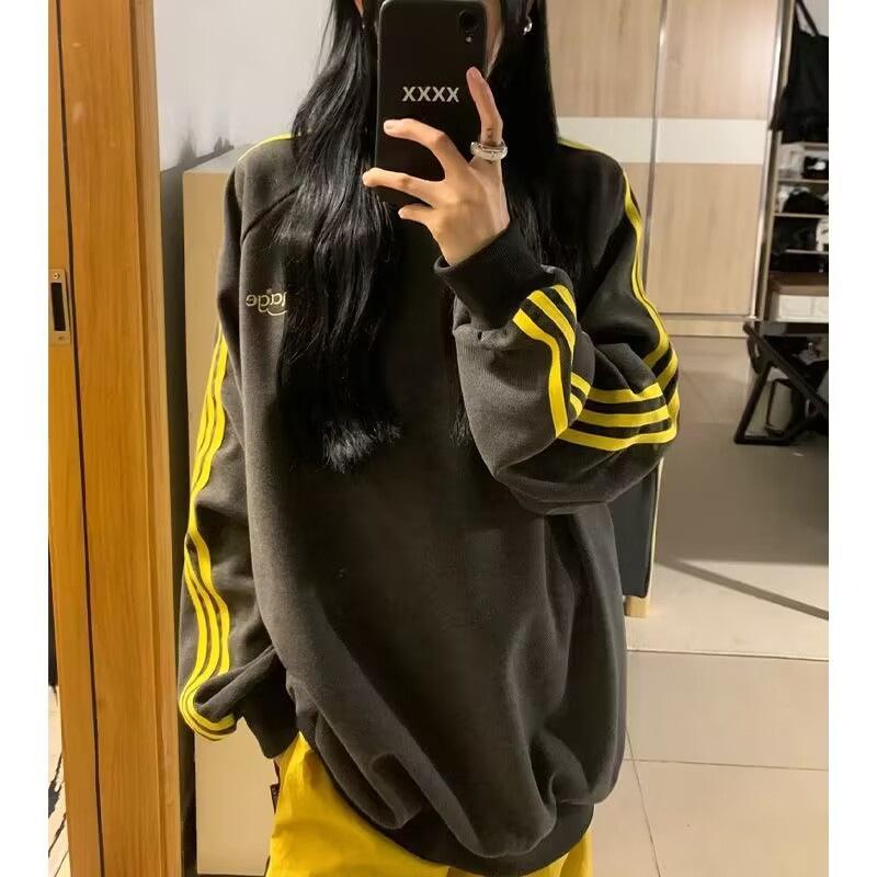 Nueva Sudadera de Tres Rayas de Otoño e Invierno para Mujer Estilo Europeo y Americano Urbano Cuello Redondo Moda Versátil Moda Top Holgado de Manga Larga