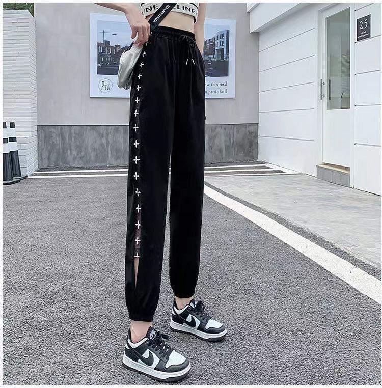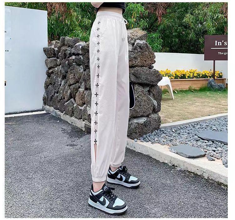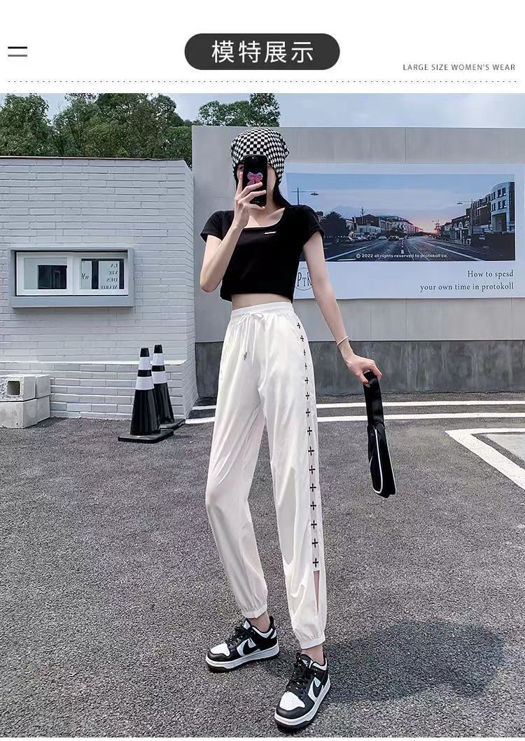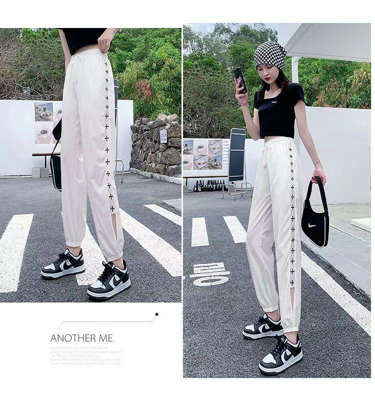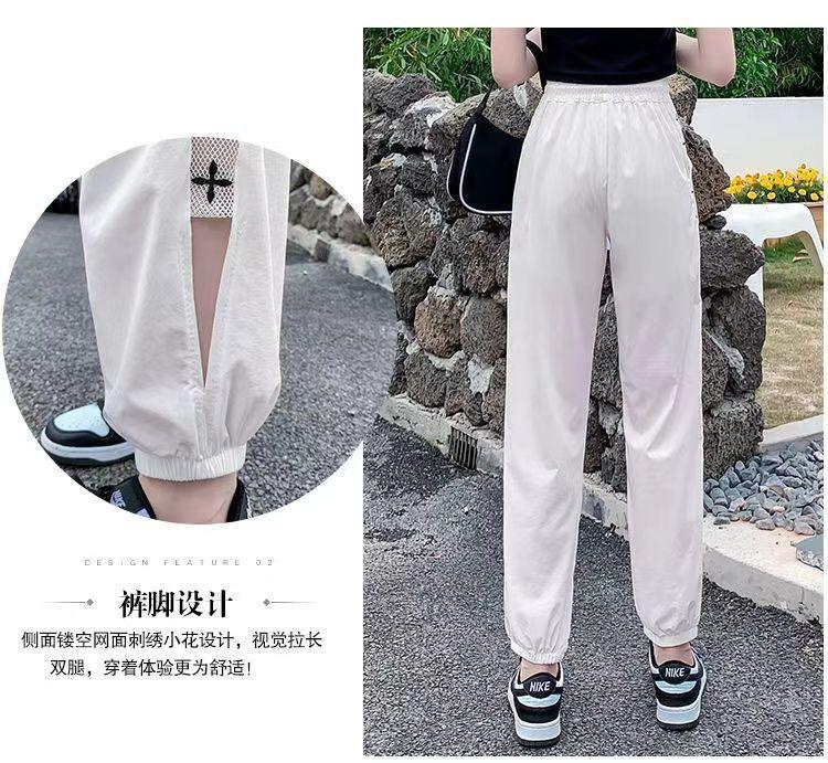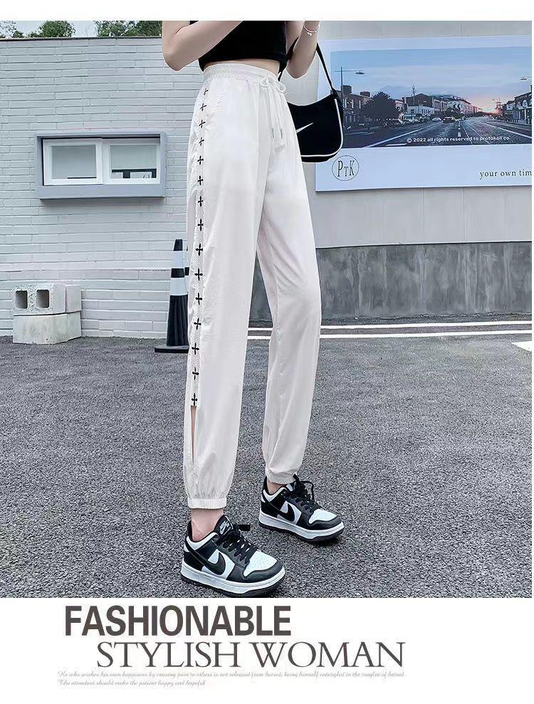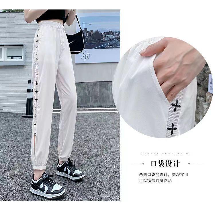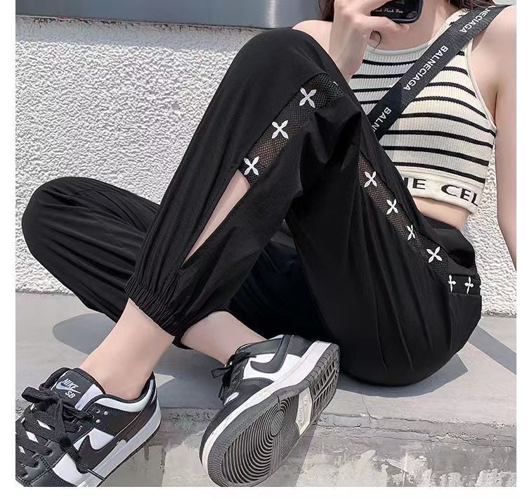 Pantalones Harem de Seda de Hielo Secado Rápido Estilo Americano Ropa de Mujer Europeos de Pie Fino Pantalones Deportivos Sueltos Huecos hasta el Tobillo