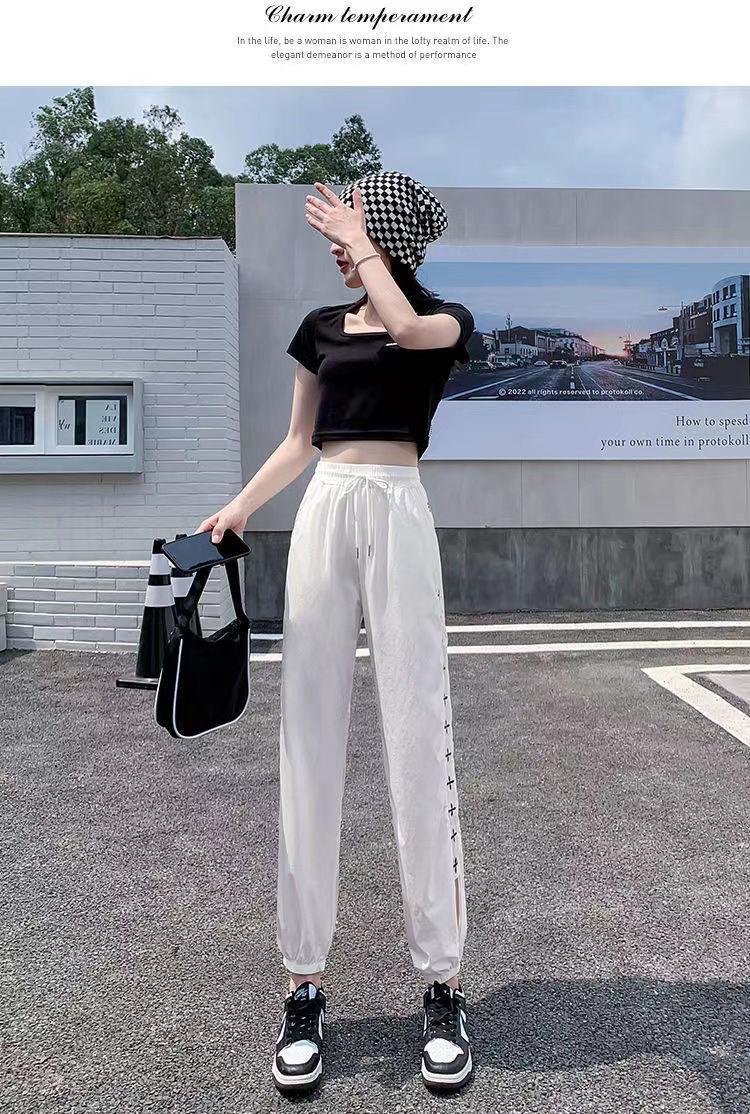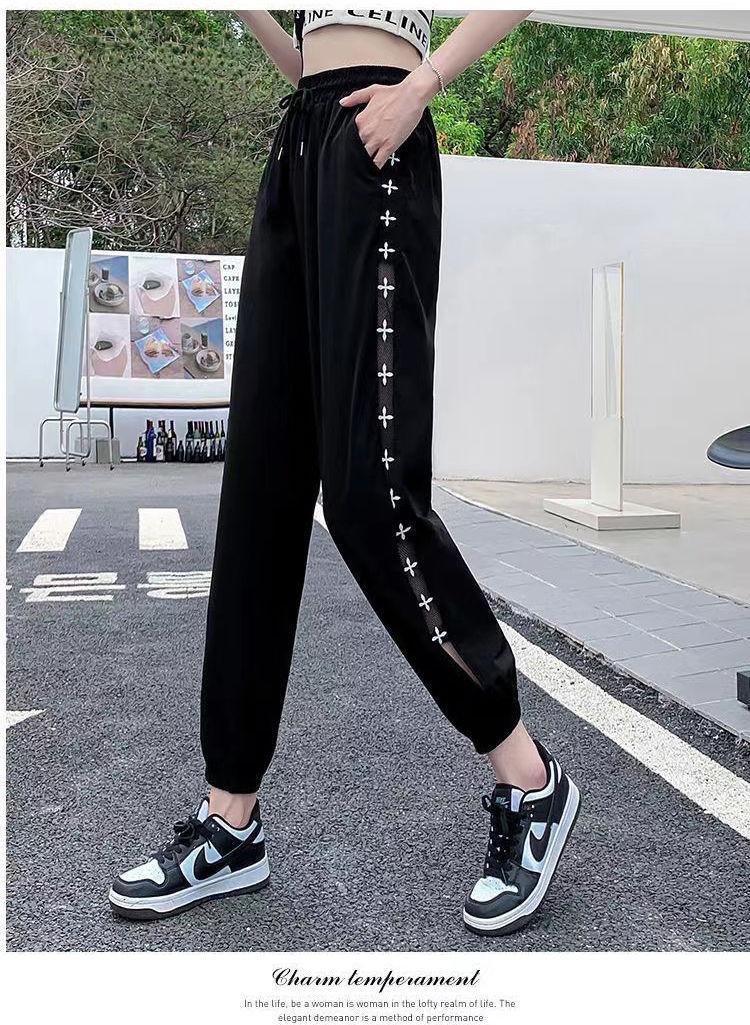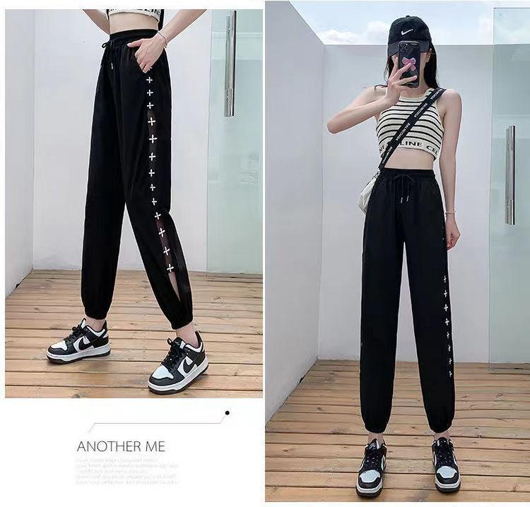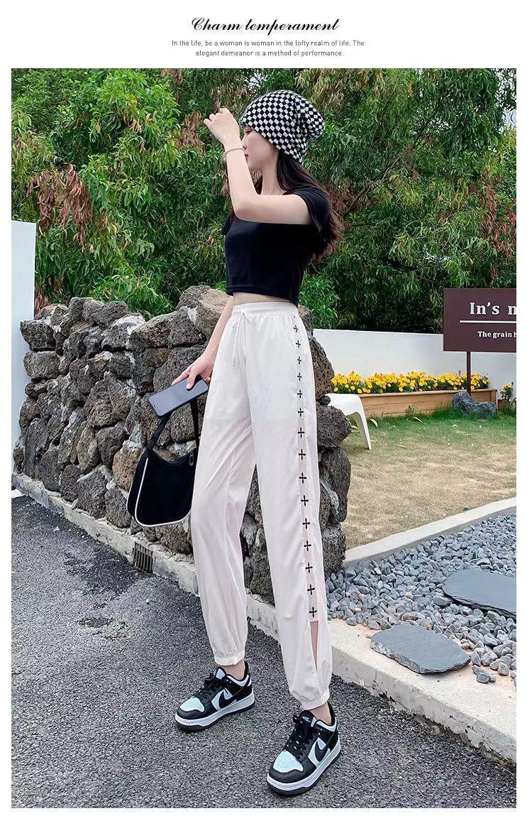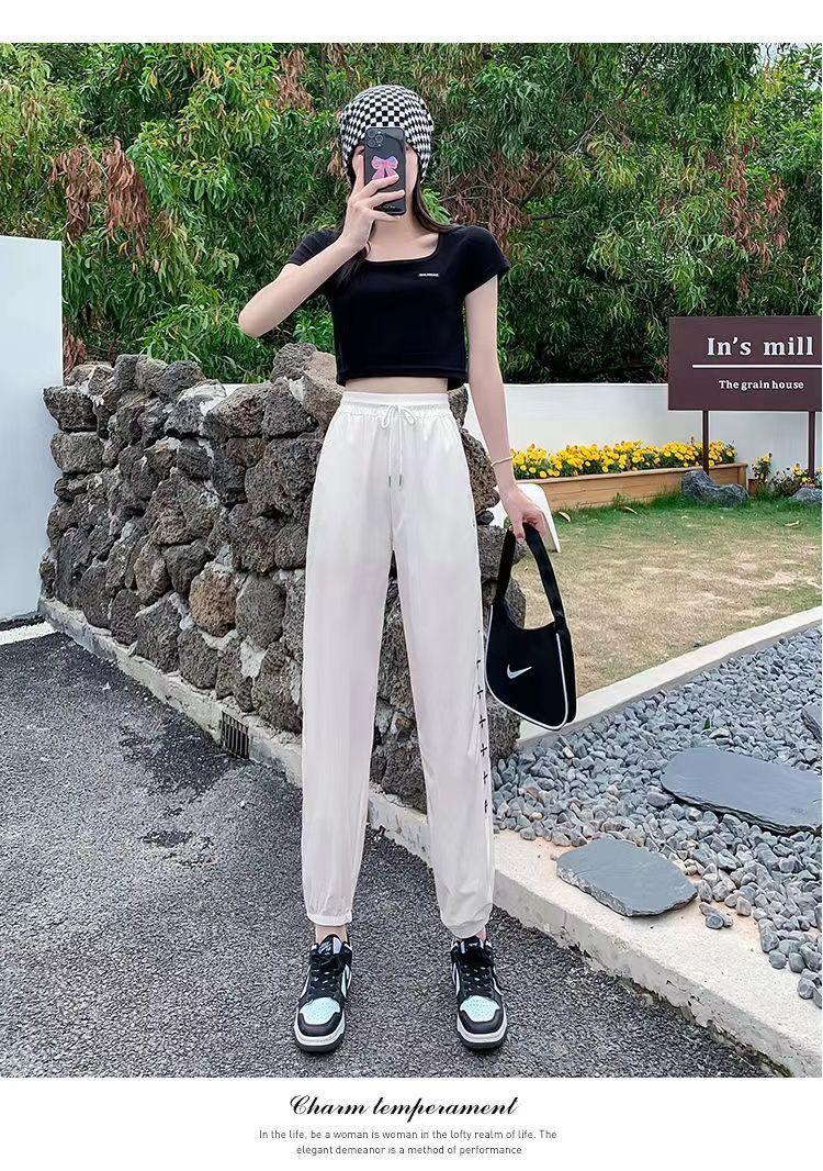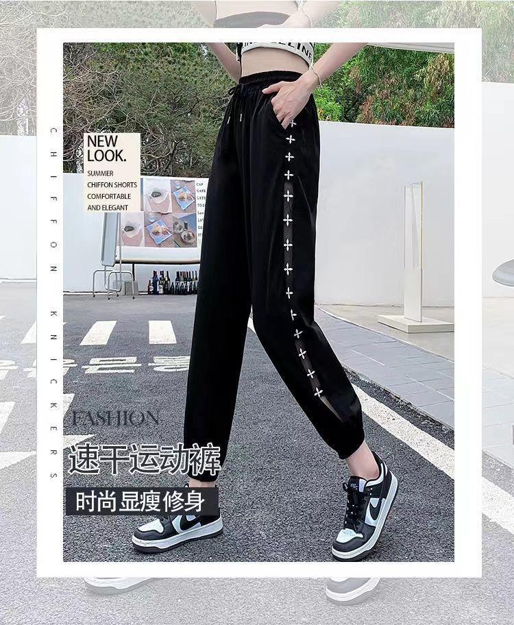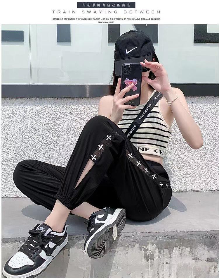 Pantalones Harem de Seda de Hielo Secado Rápido Estilo Americano Ropa de Mujer Europeos de Pie Fino Pantalones Deportivos Sueltos Huecos hasta el Tobillo