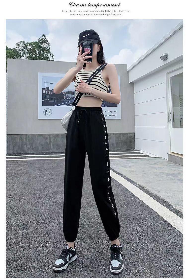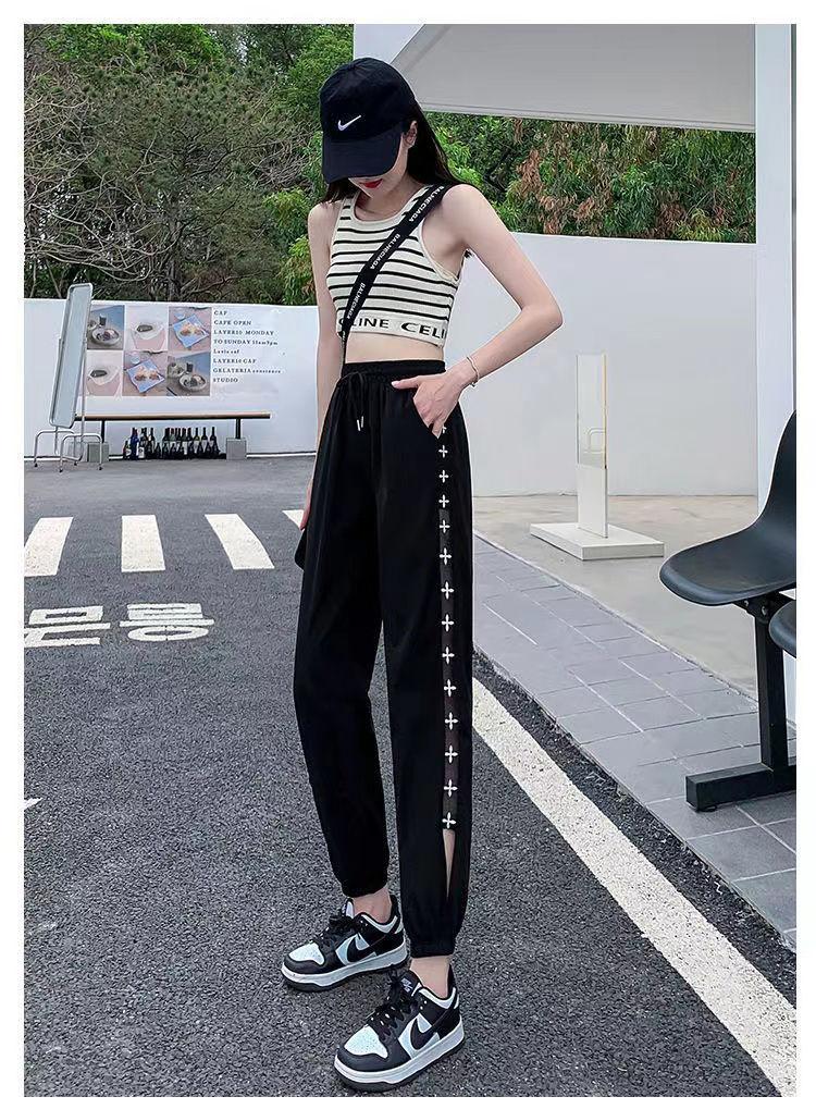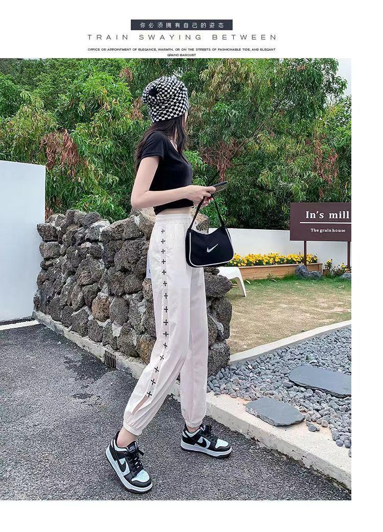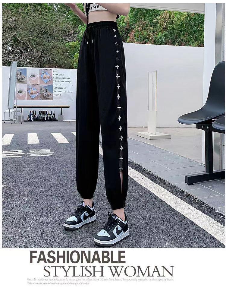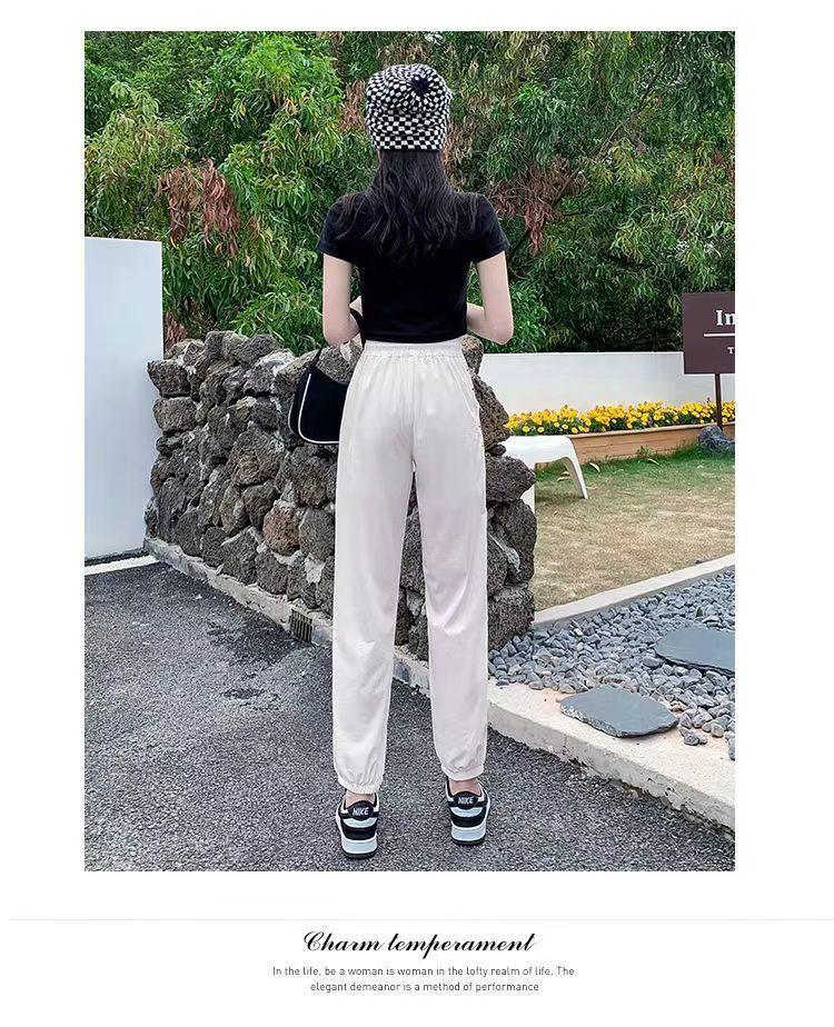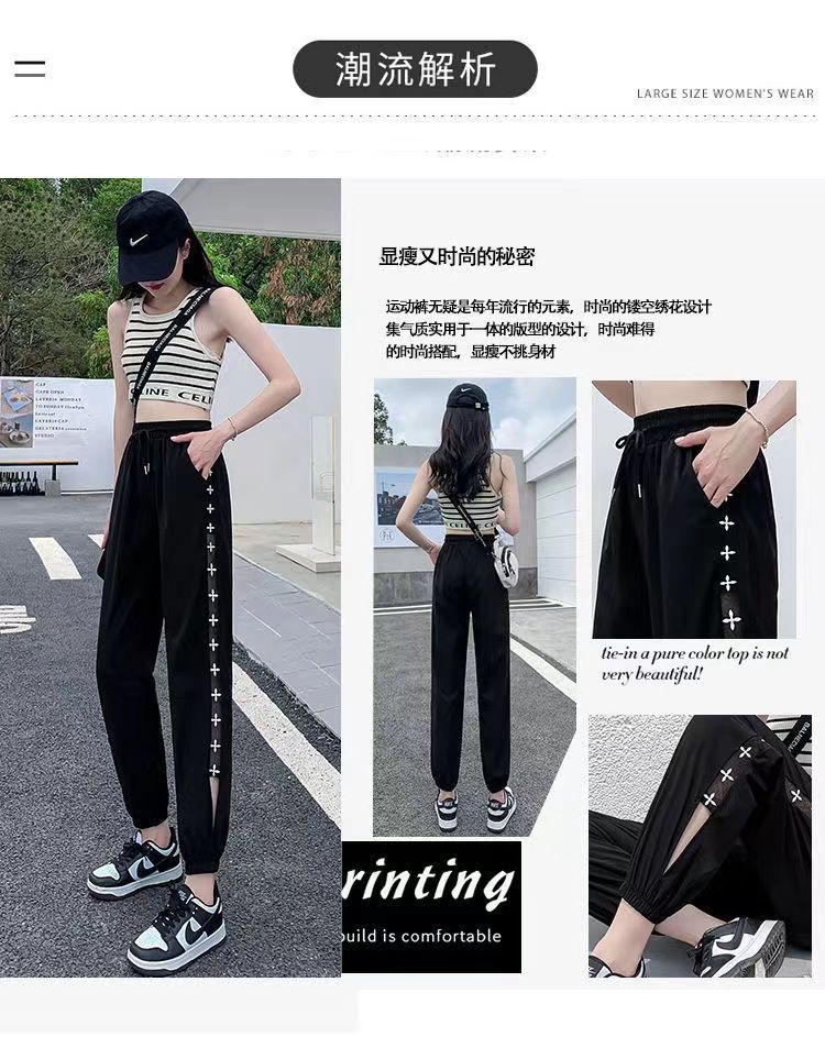 Pantalones Harem de Seda de Hielo Secado Rápido Estilo Americano Ropa de Mujer Europeos de Pie Fino Pantalones Deportivos Sueltos Huecos hasta el Tobillo
