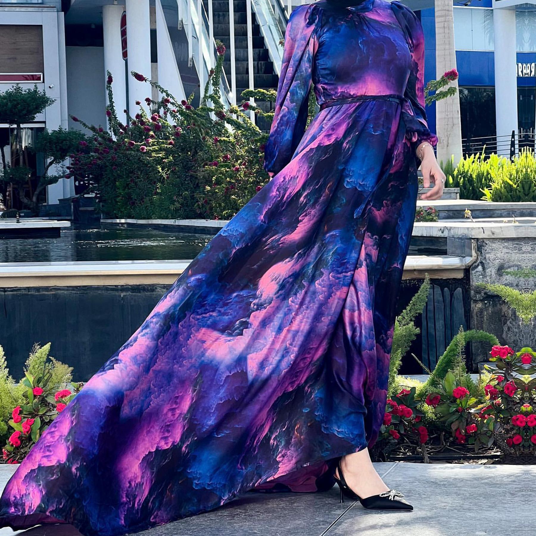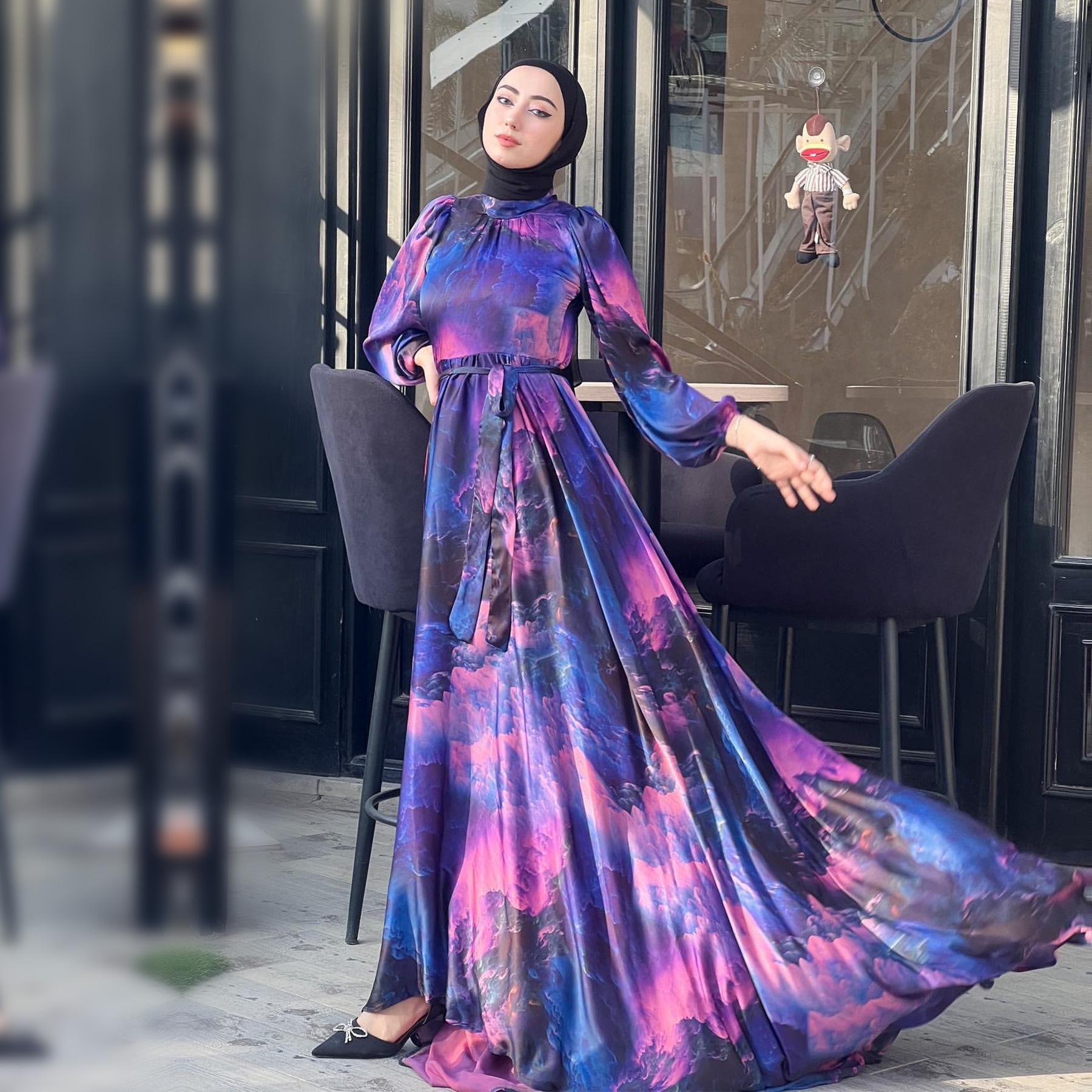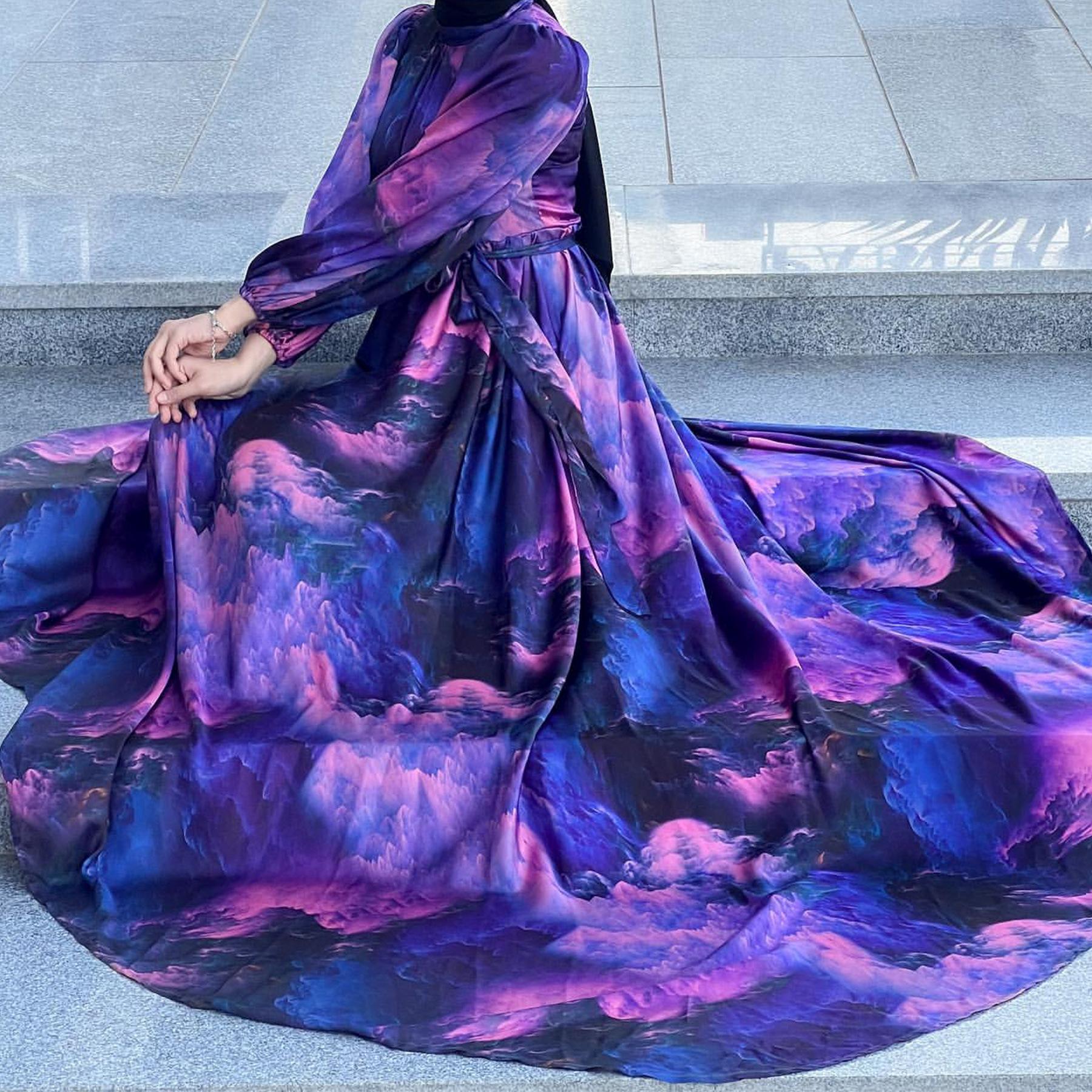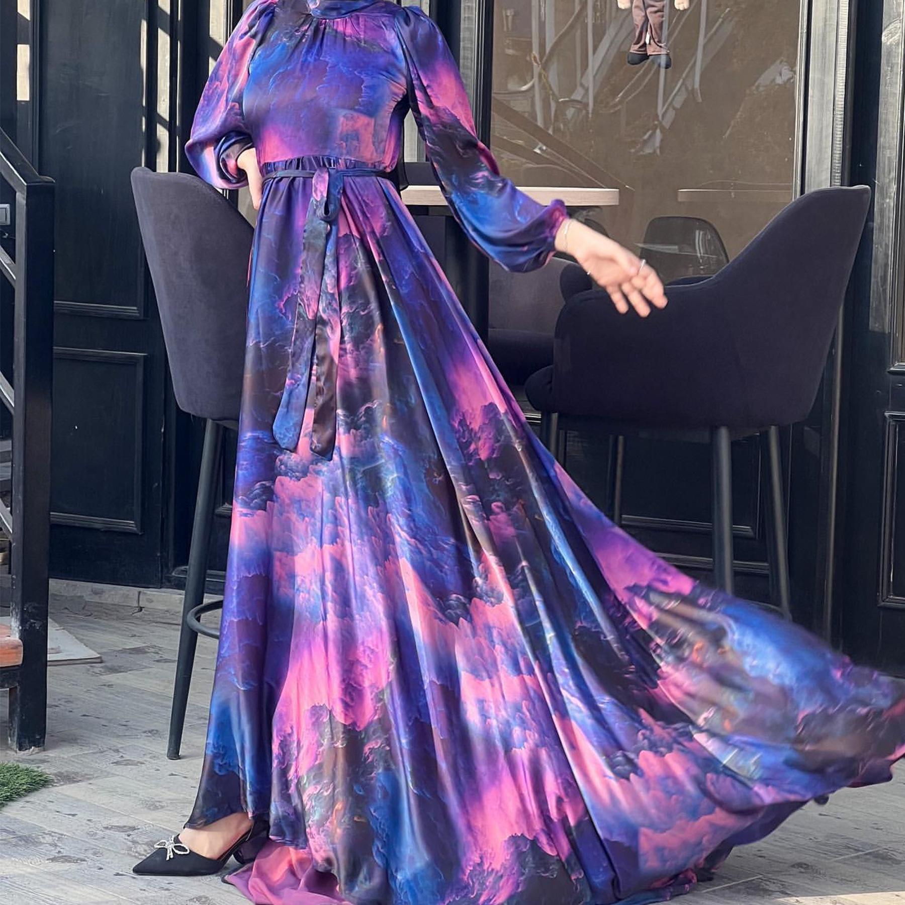 2024Loriya AliExpress Europa, América y Oriente Medio Vestido con estampado americano puro, falda larga estampada hasta los tobillos LR721