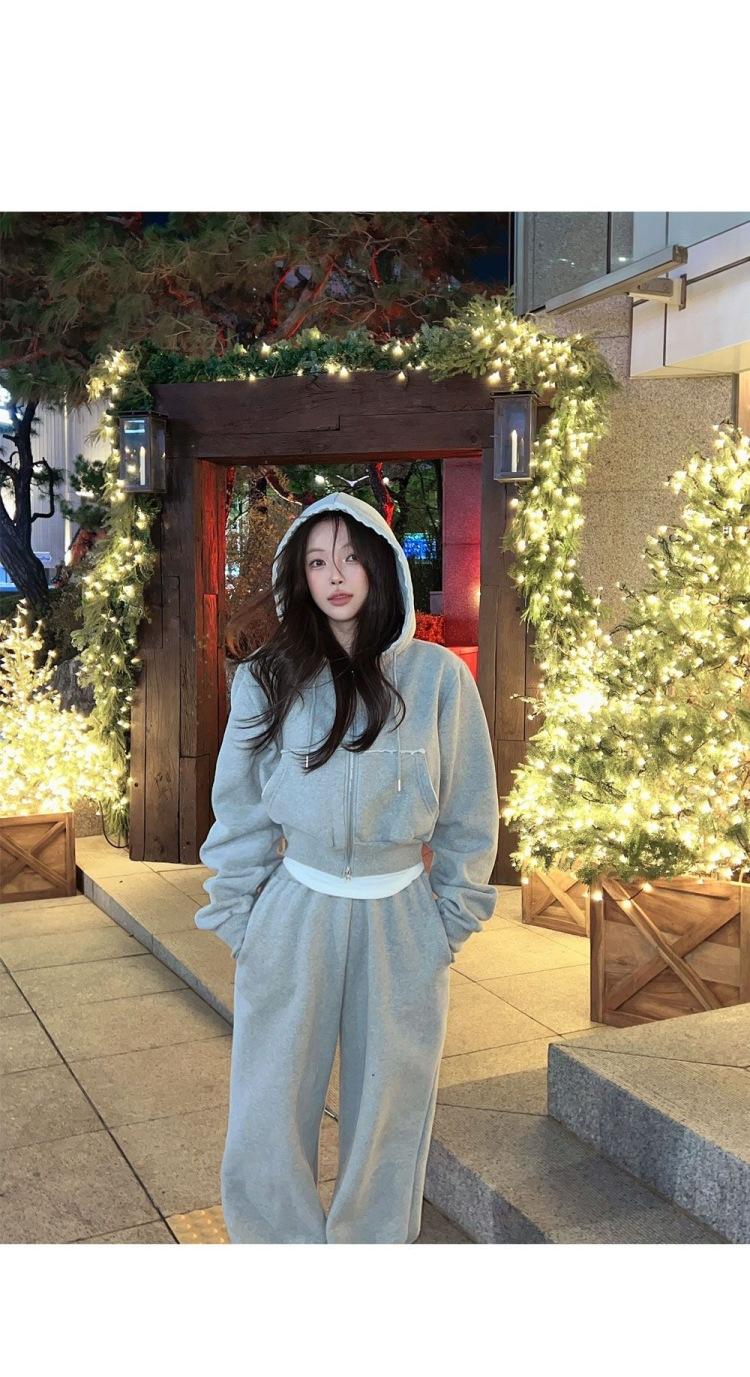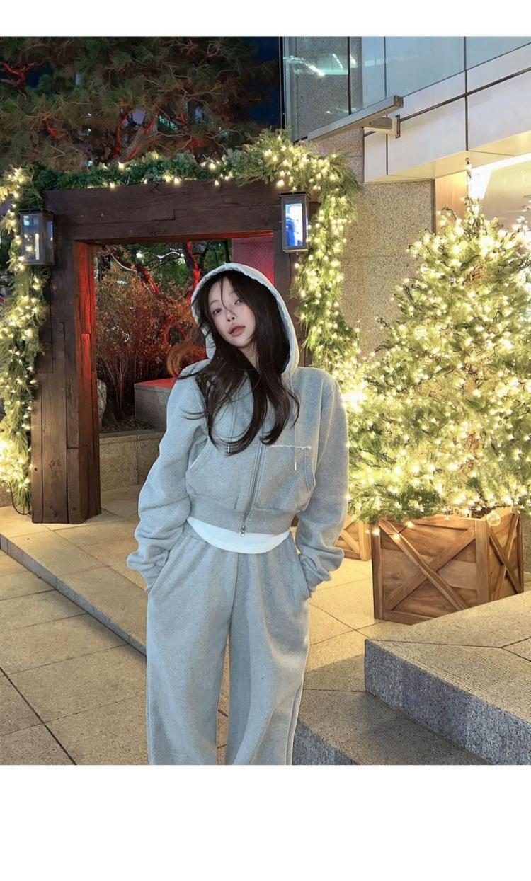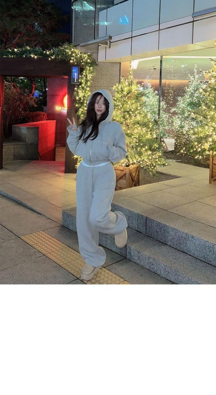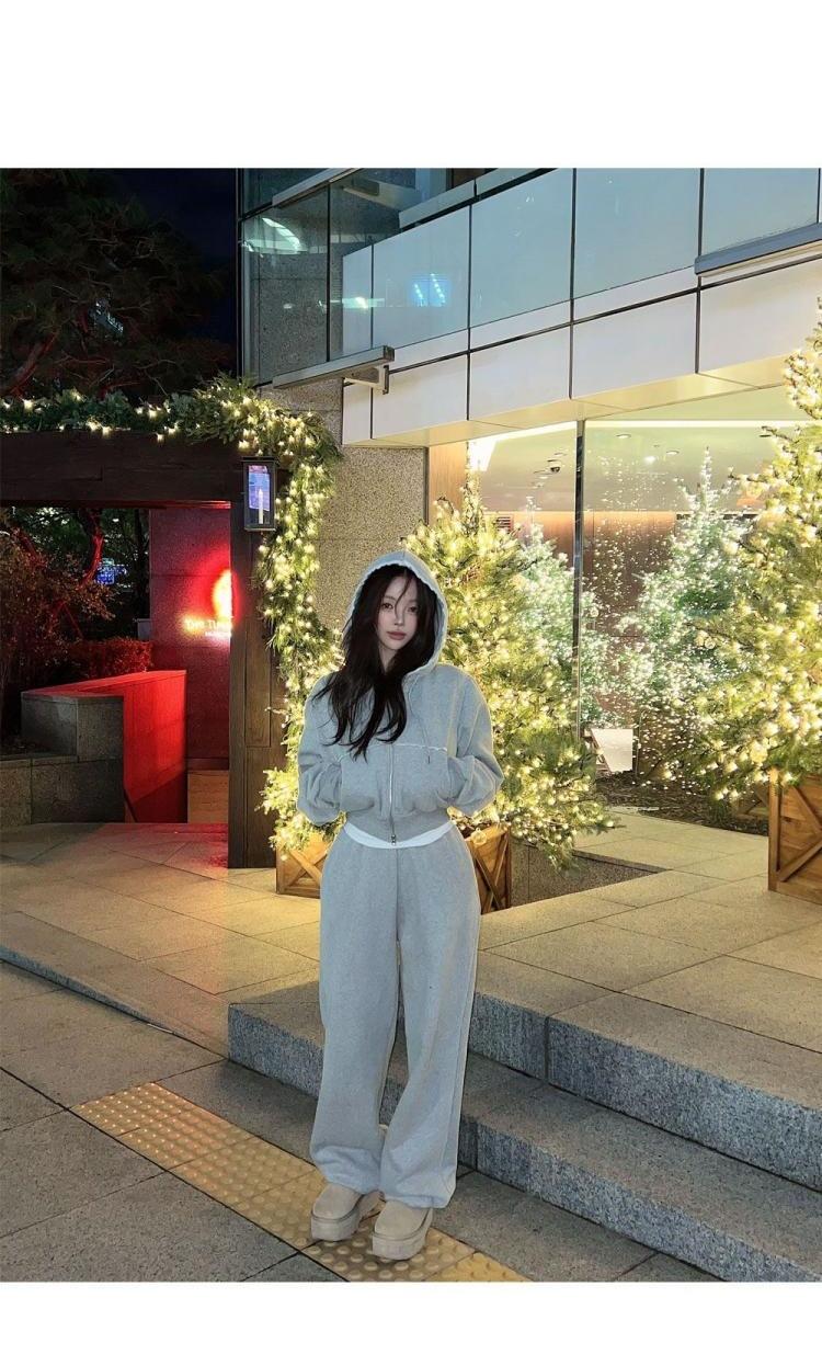 2025 Estilo Coreano Nueva Llegada Suéter Holgado Casual Para Todo Combinable con Capucha Moda Traje Deportivo Casual de Dos Piezas para Mujer