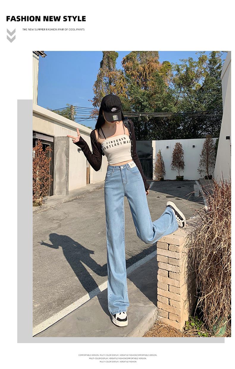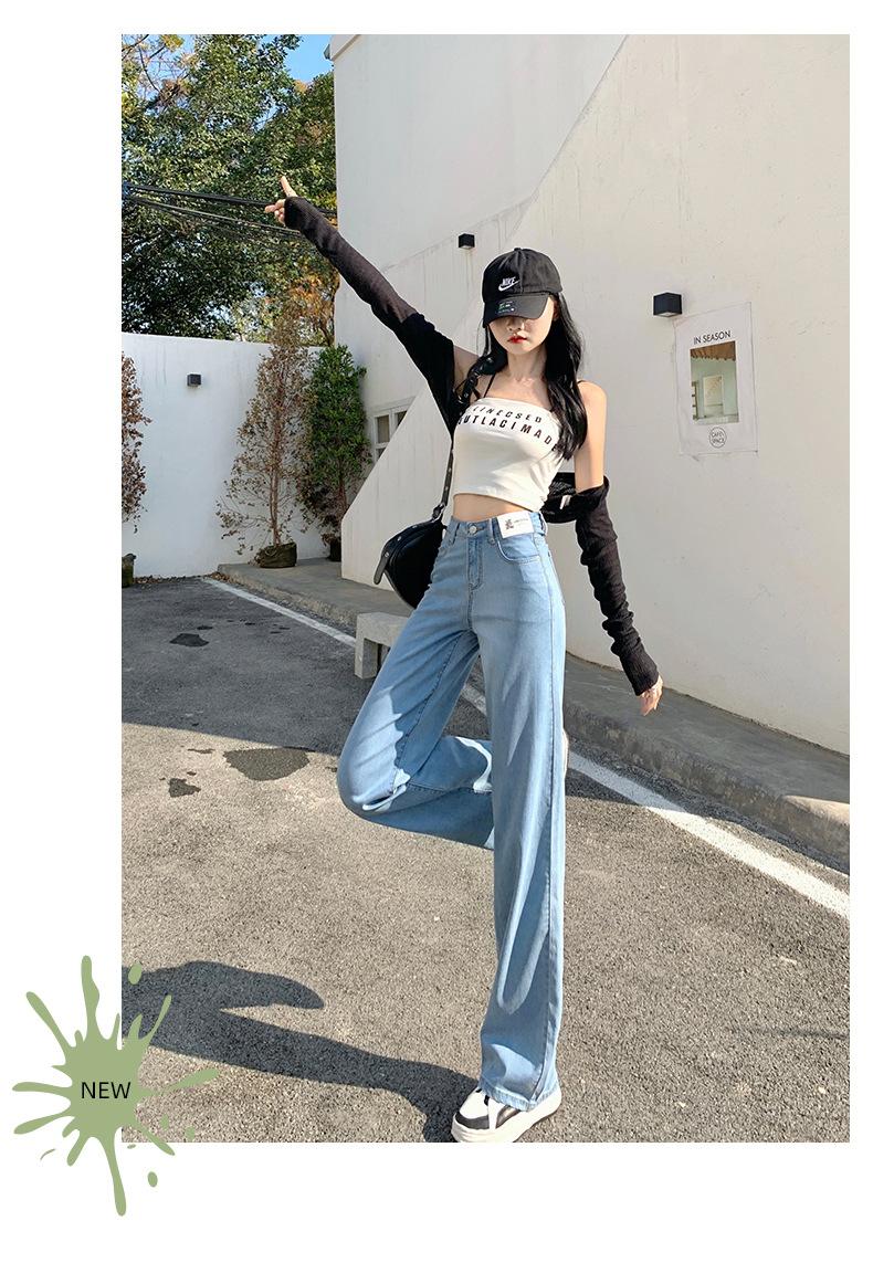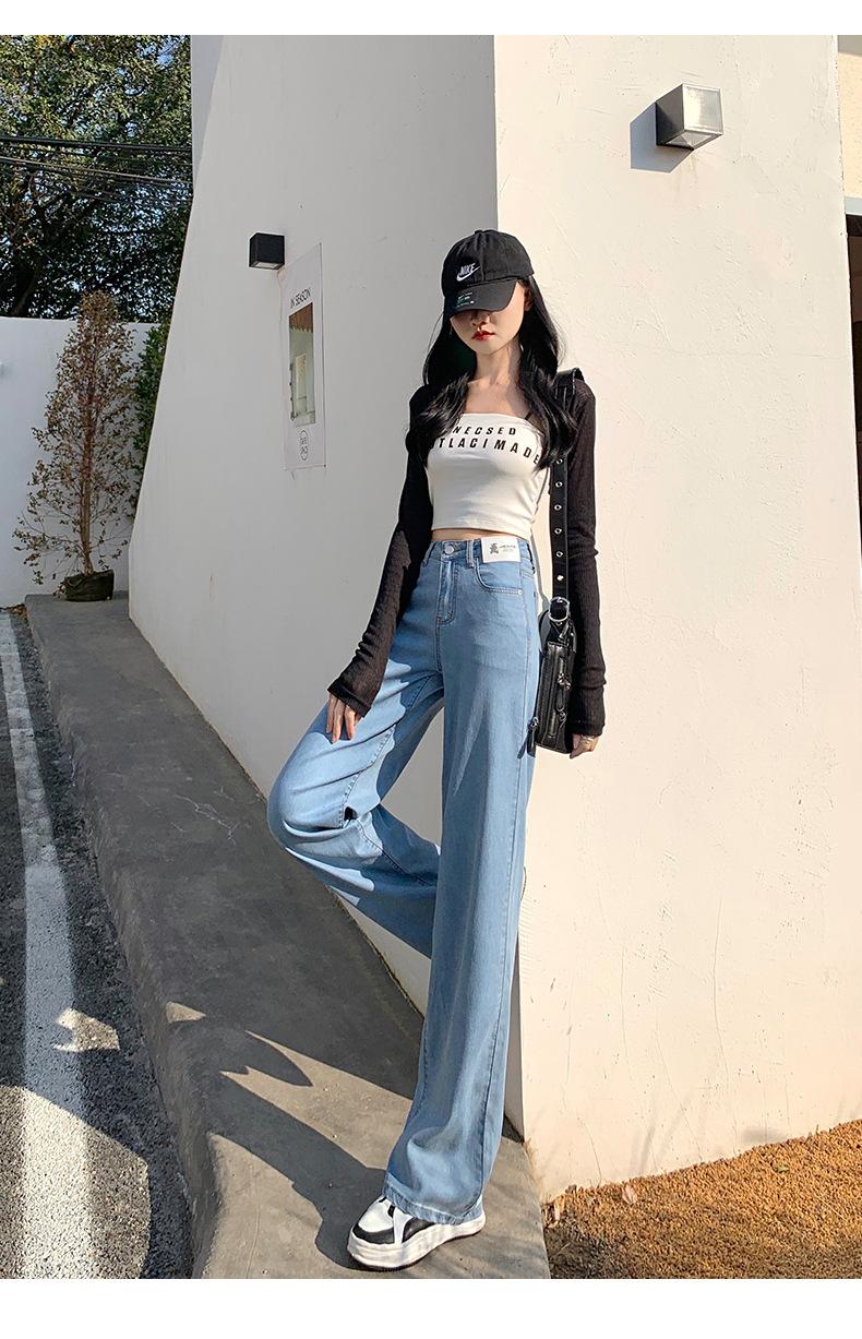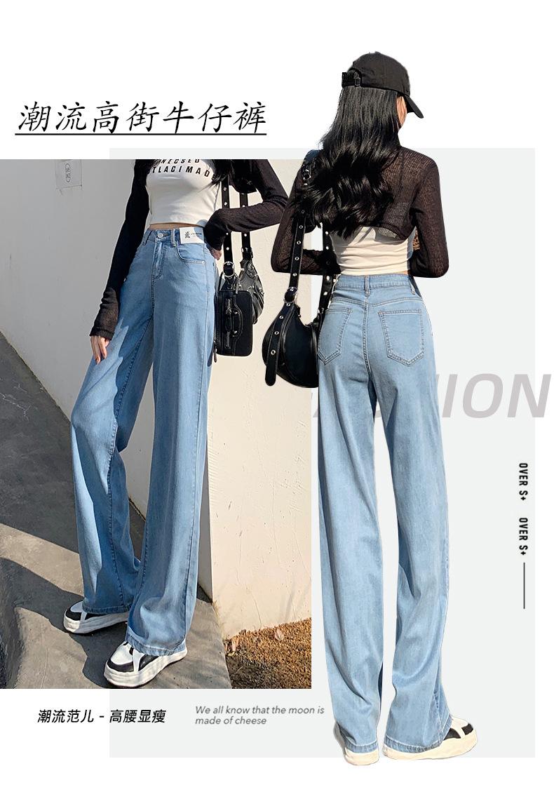 Pantalones vaqueros Tencel para mujer, de verano, finos, adelgazantes, rectos, de cintura alta, de seda helada, con pernera ancha para niños, 2023