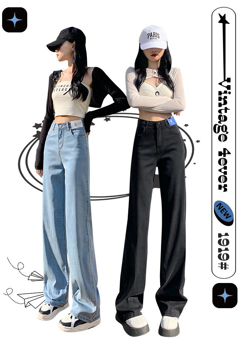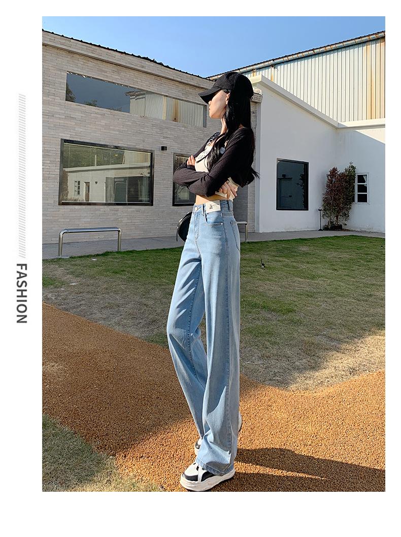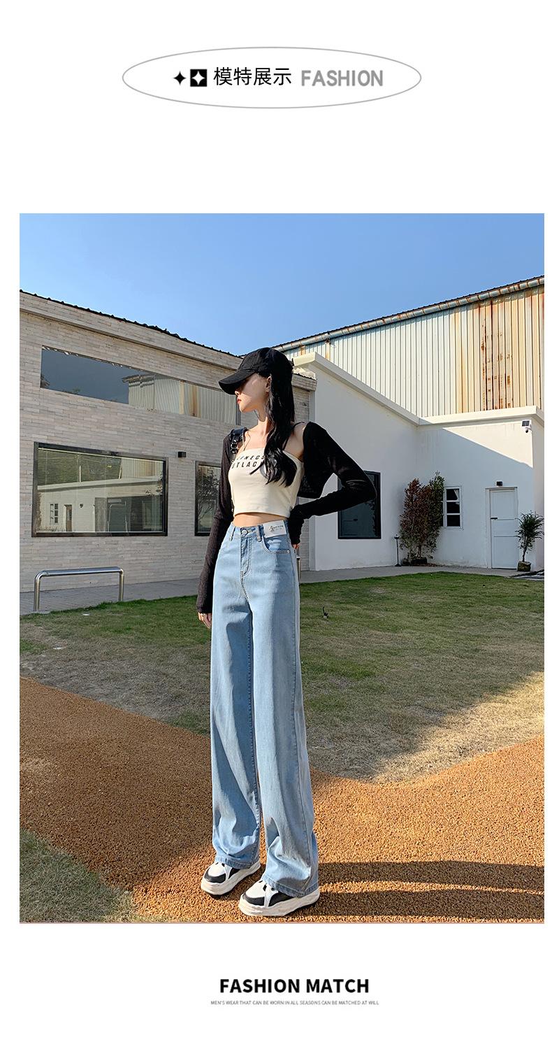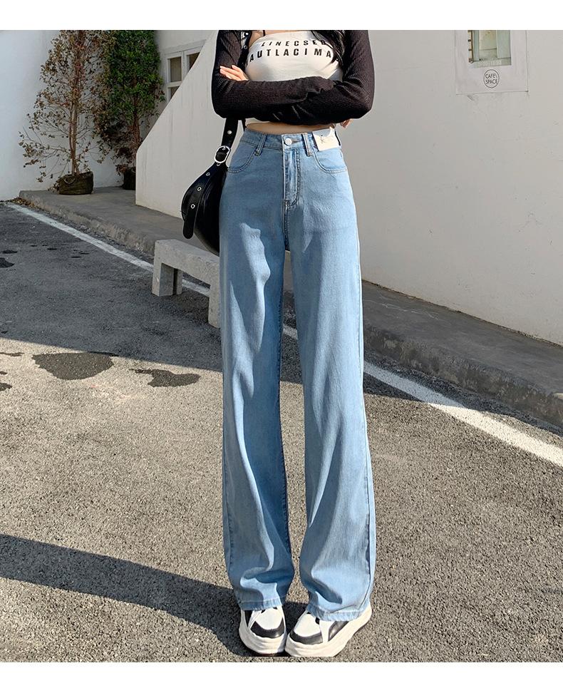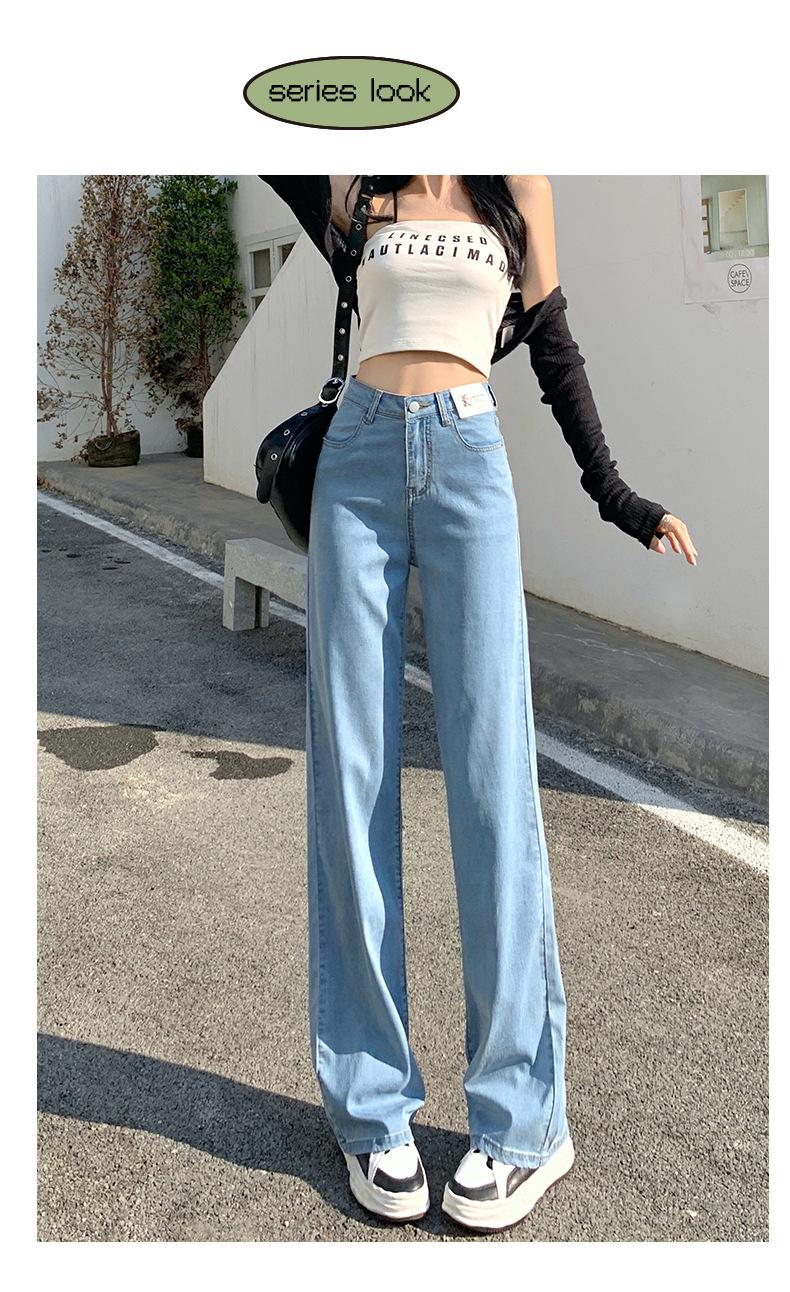 Pantalones vaqueros Tencel para mujer, de verano, finos, adelgazantes, rectos, de cintura alta, de seda helada, con pernera ancha para niños, 2023