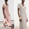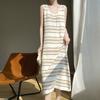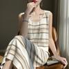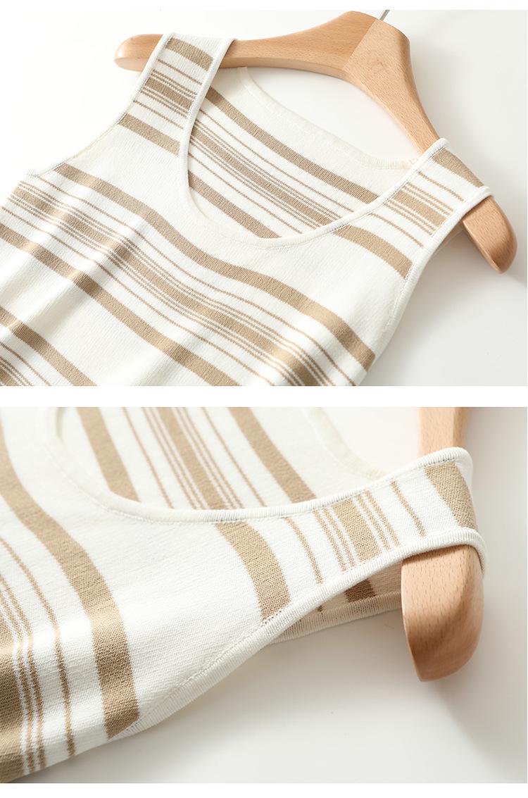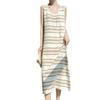 Vestido tipo chaleco de punto para mujer, informal, holgado, con cuello en U, rayas horizontales, sin mangas, de seda de hielo y cuentas curvas, para primavera y verano