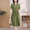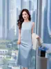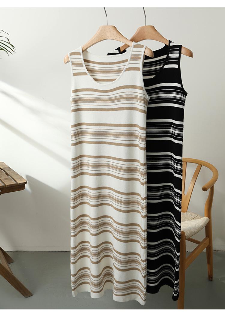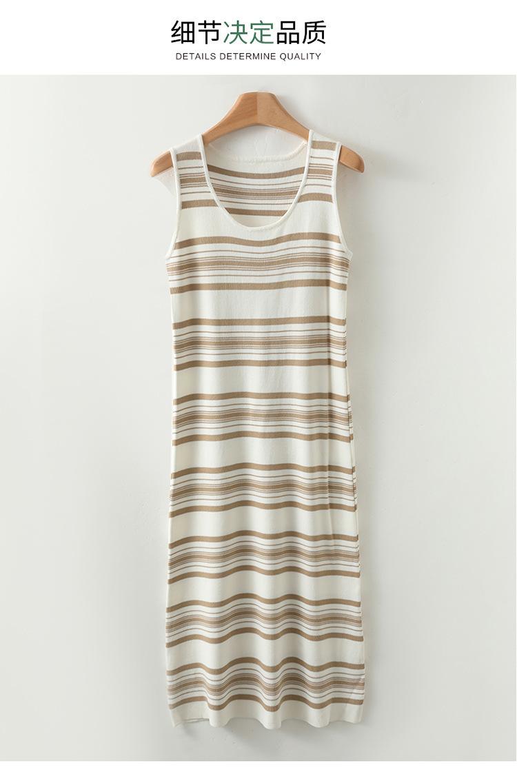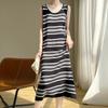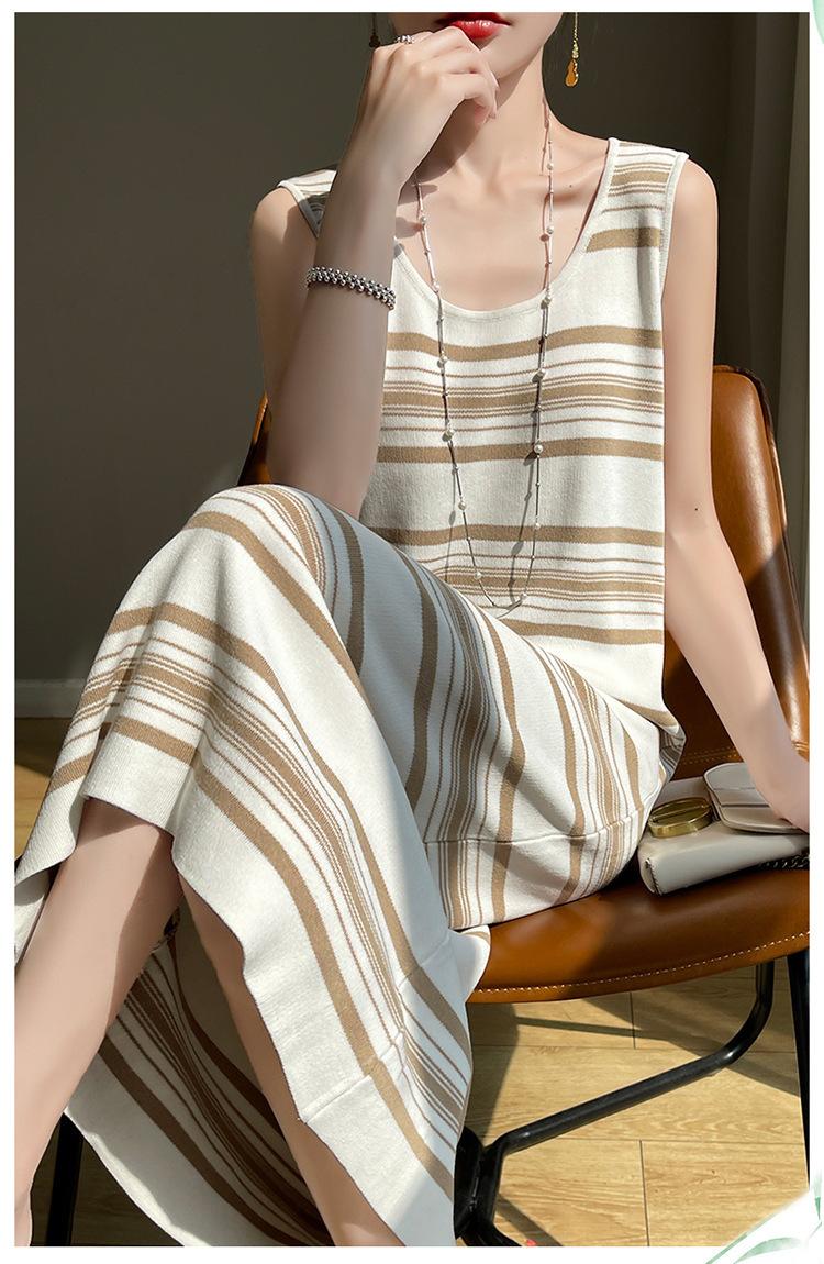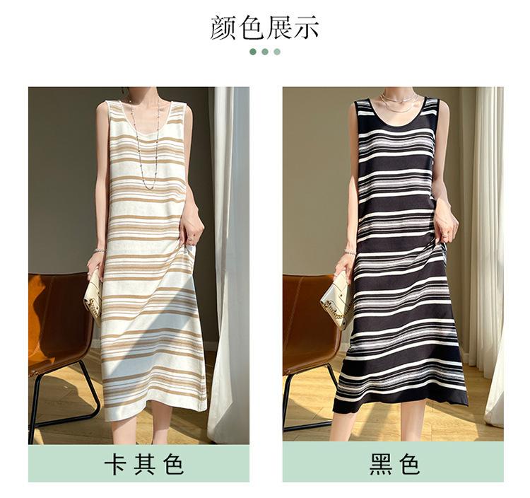 Vestido de verano nuevo de punto de seda helada a rayas con cuello en U, vestido sin mangas hasta la rodilla para mujer, vestido informal de estilo holgado Vedel
